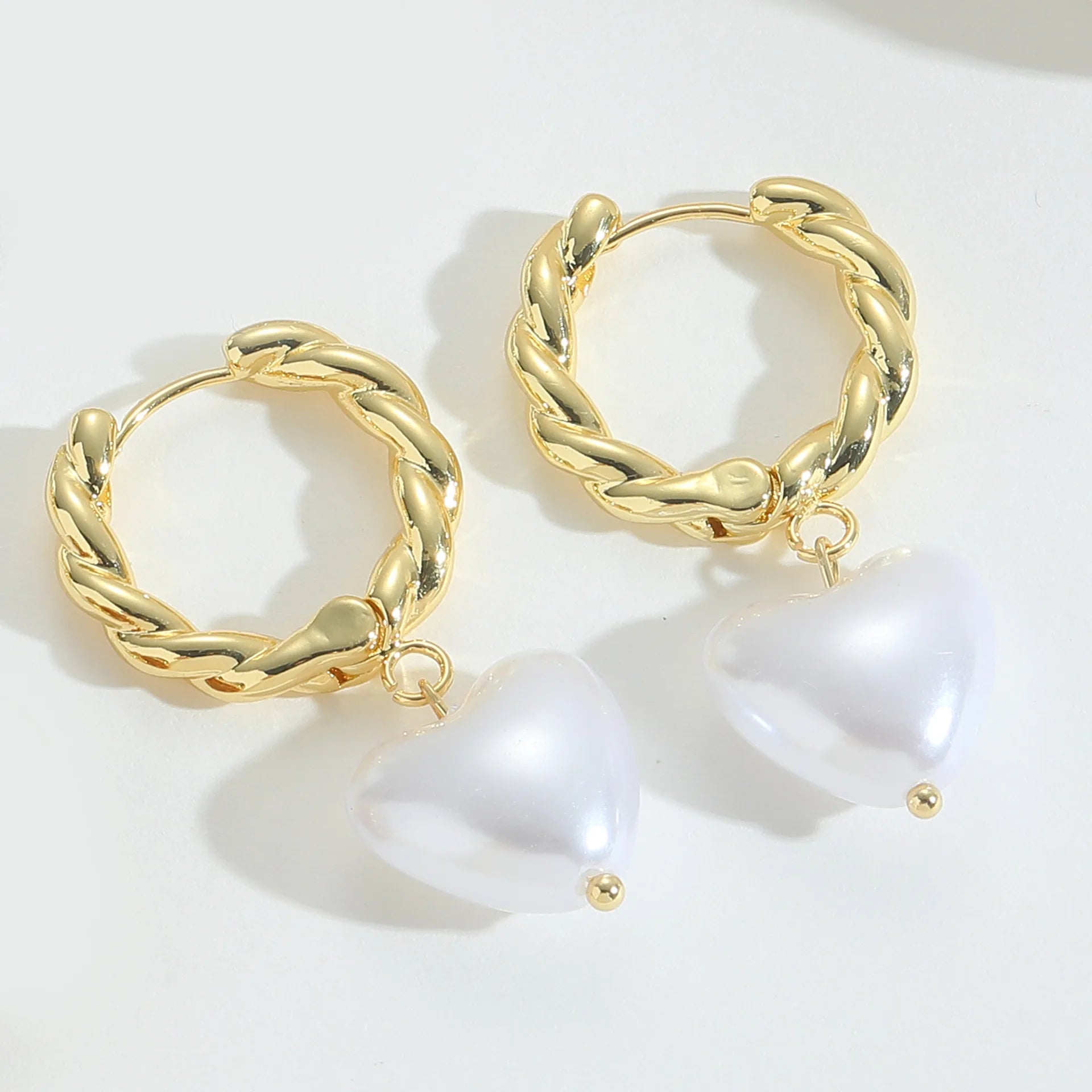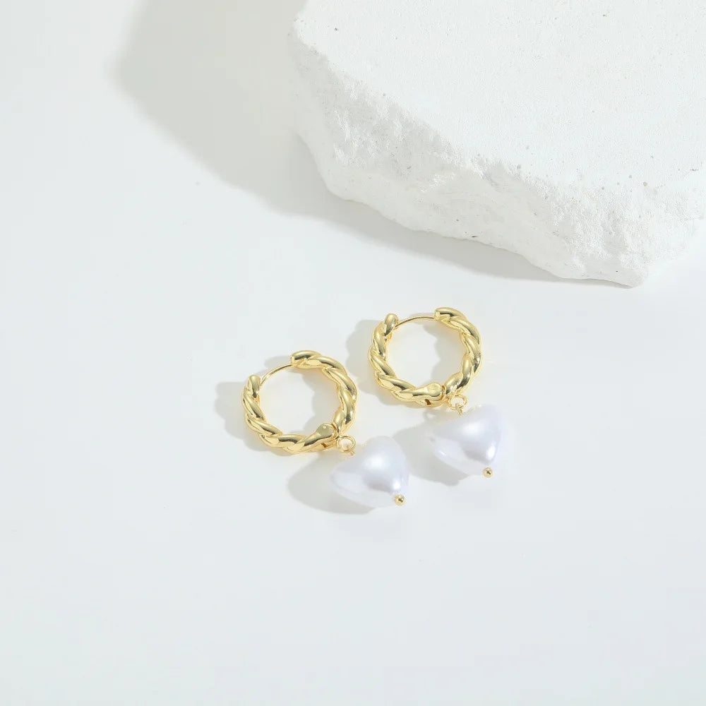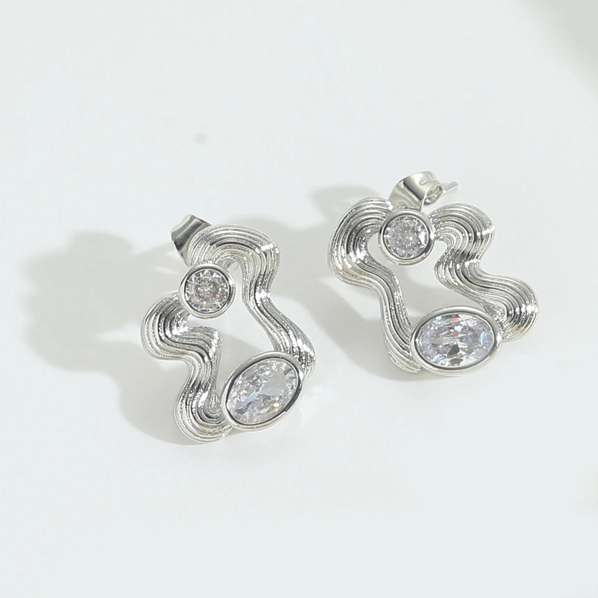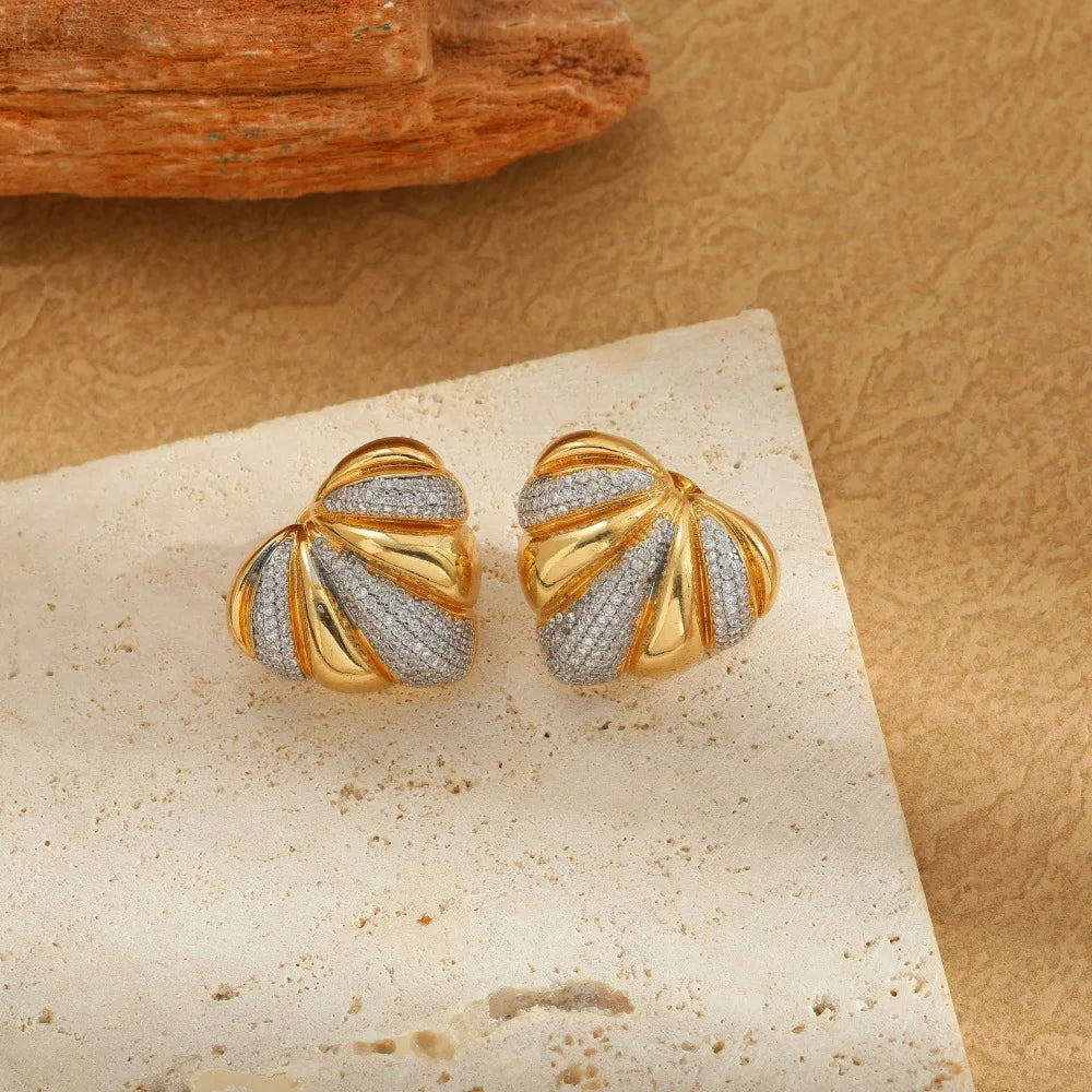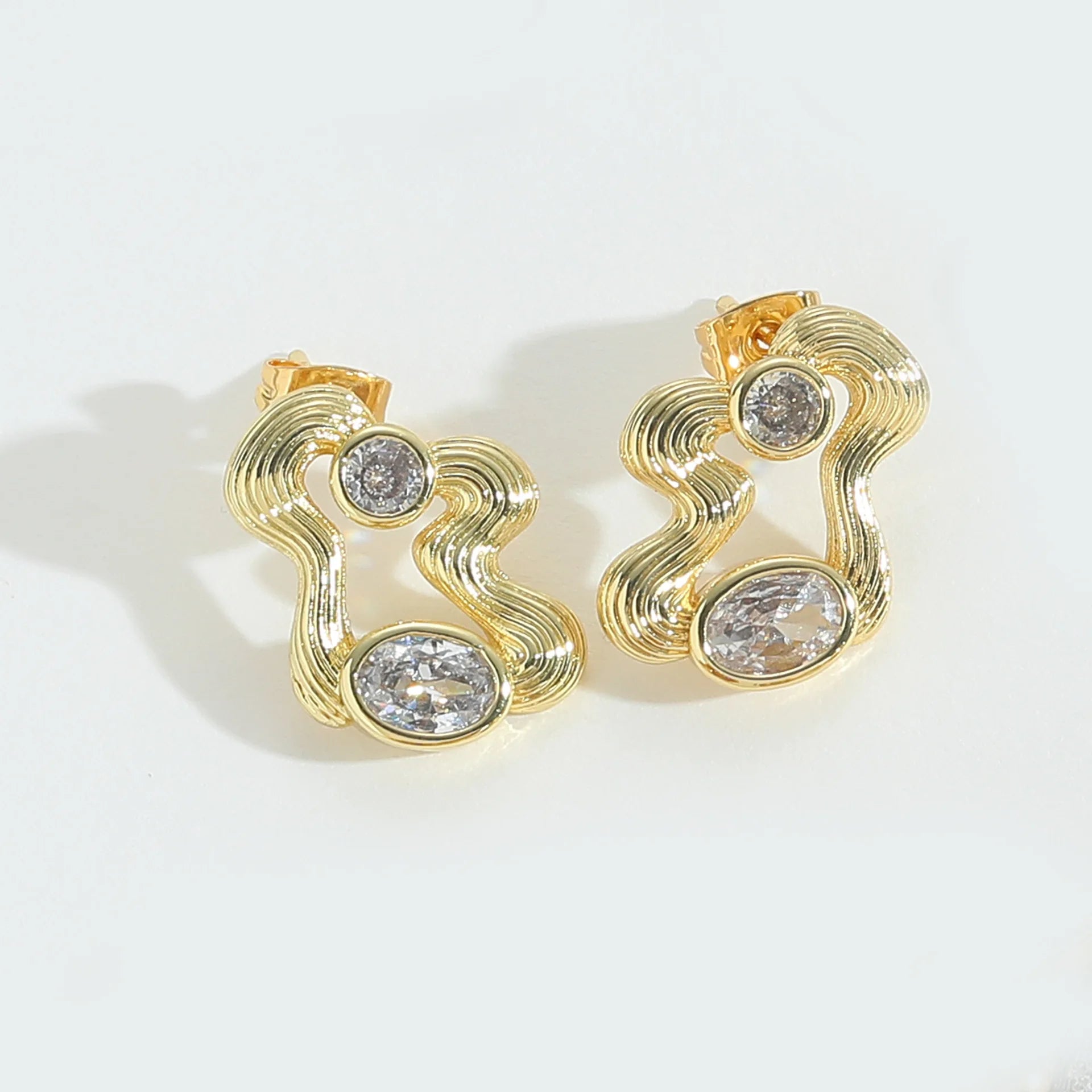 Elegant Copper 14K Gold Plated Wavy Twisted Huggie Hoop Earrings With Cubic Zirconia for Women and Girls