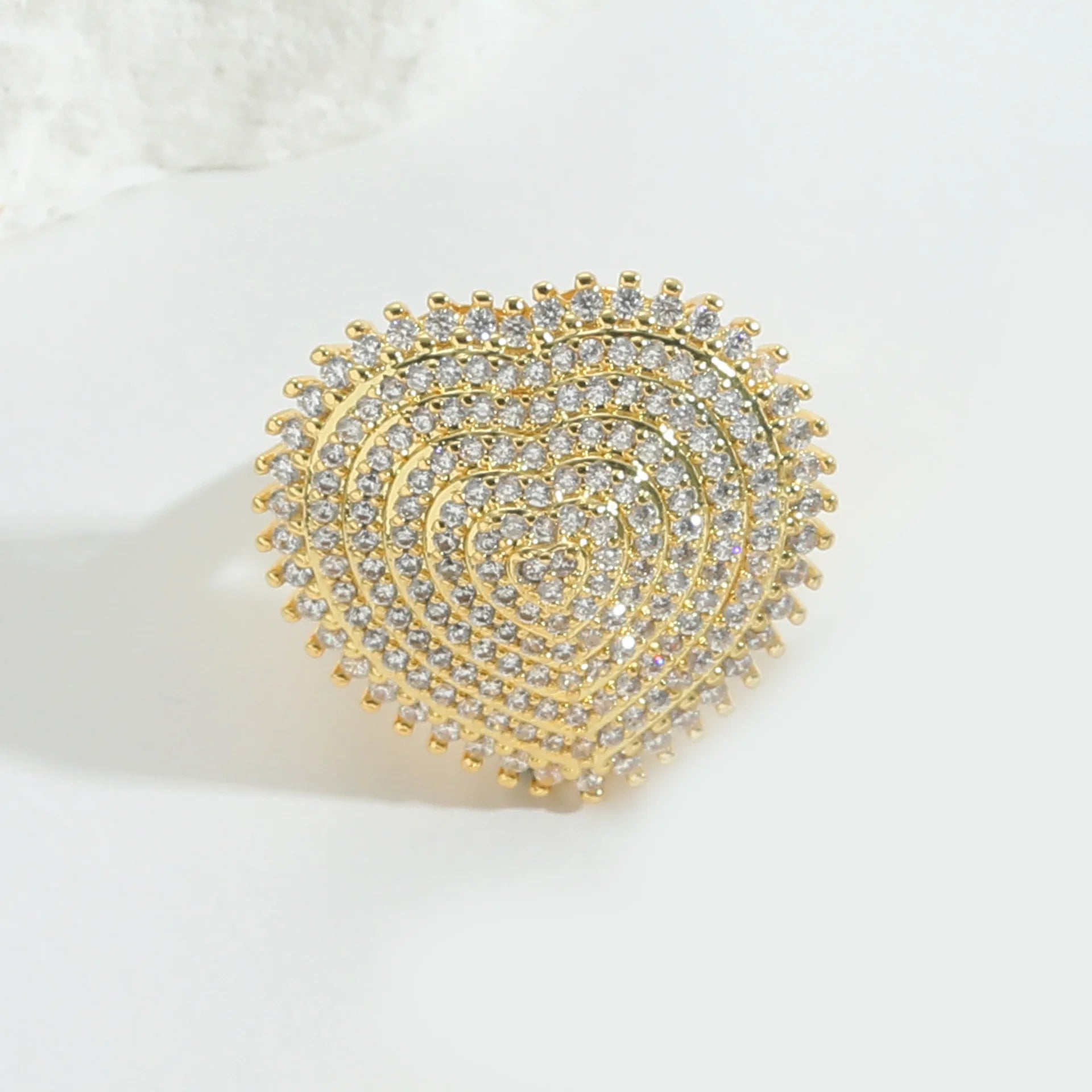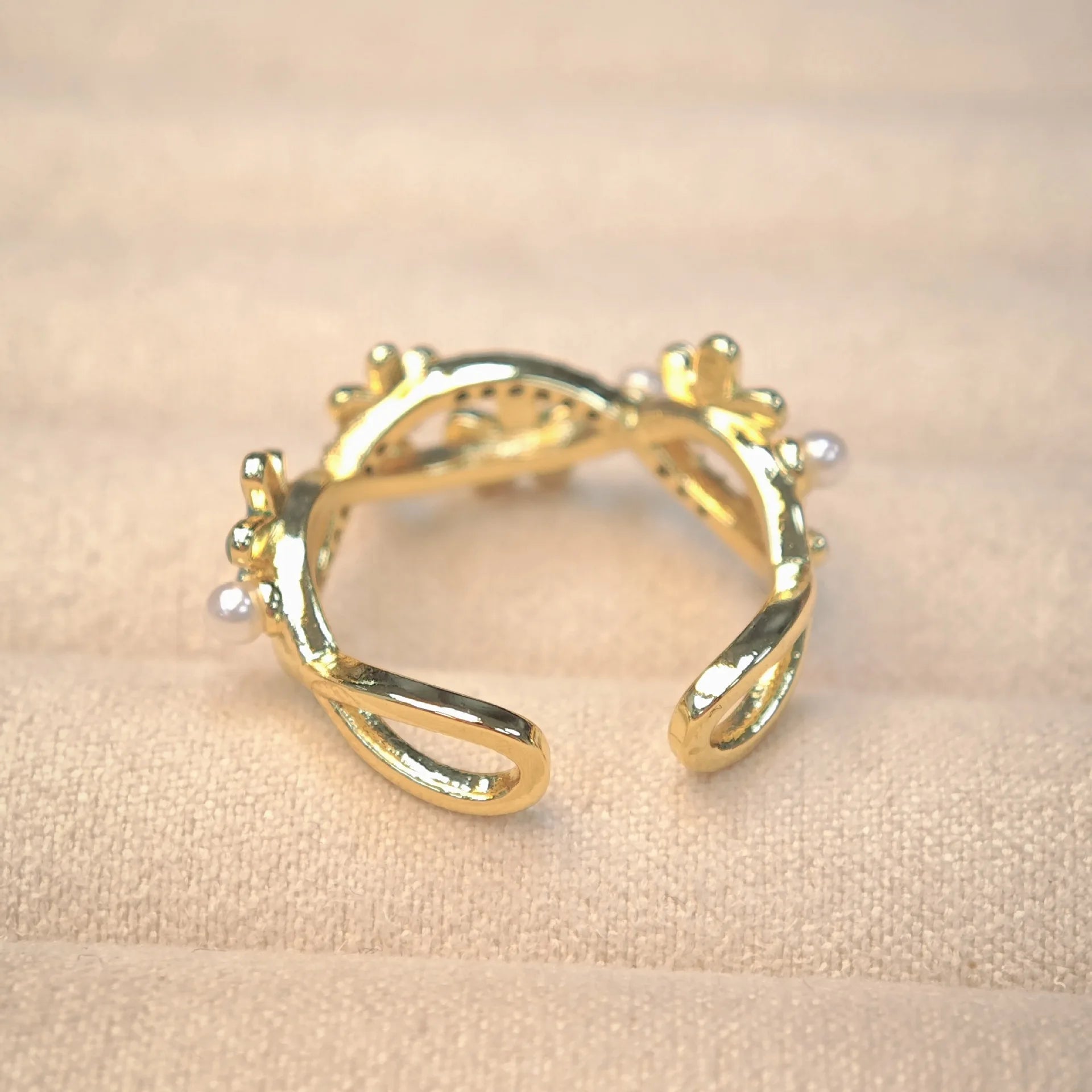 Luxury 18k Gold Plated Adjustable Ring Pearls & Zircon Shell Flower Rings Jewelry Gift for Her