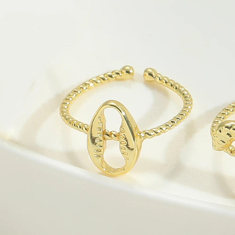 Wholesale 26 Initial Letters Ring Adjustable 18K Gold Zirconia A-Z Alphabet Ring Jewelry Gift for Women