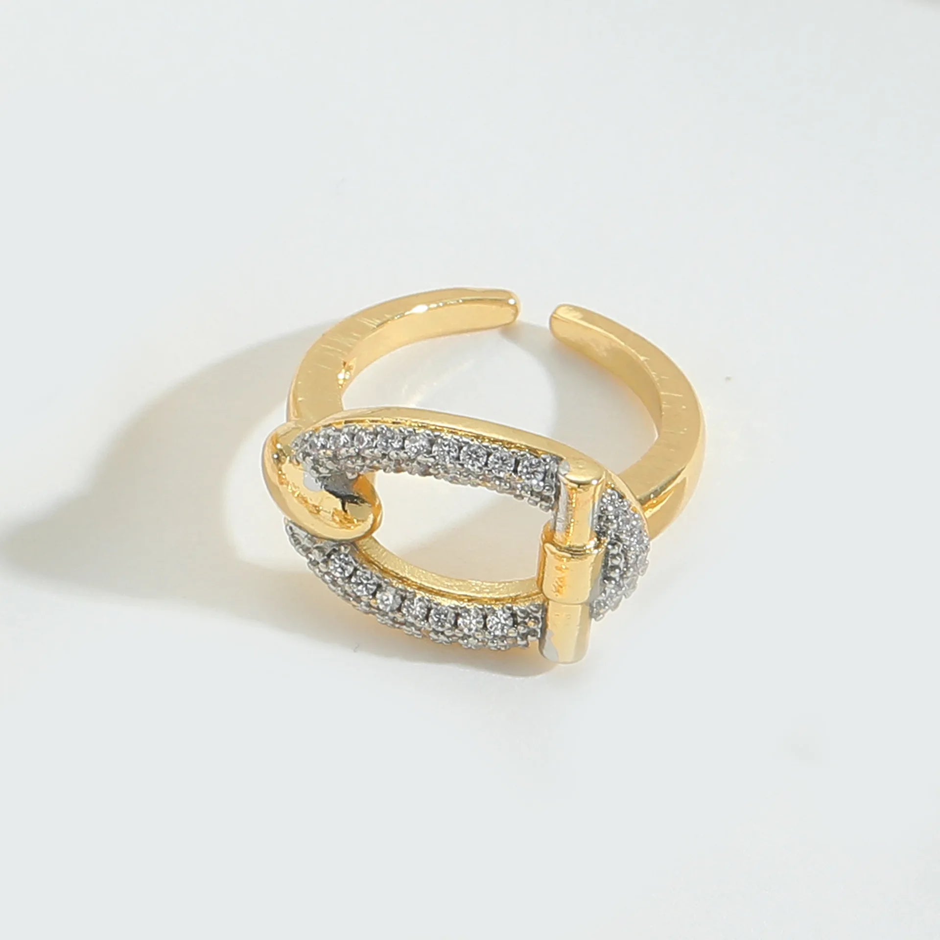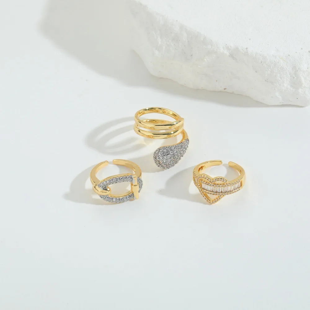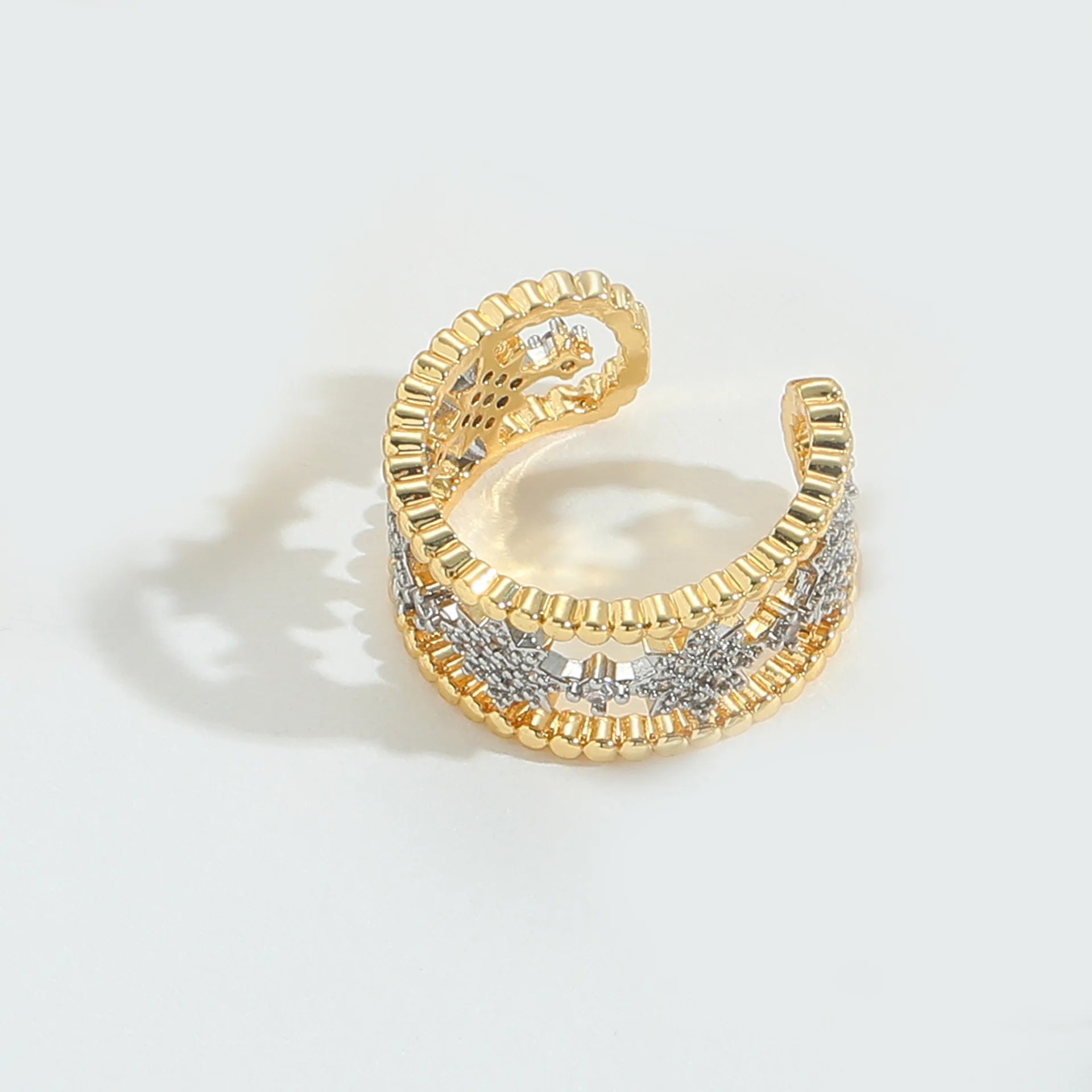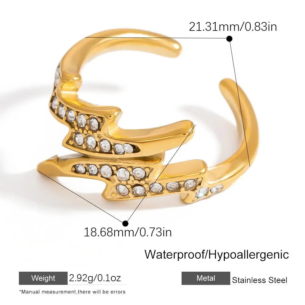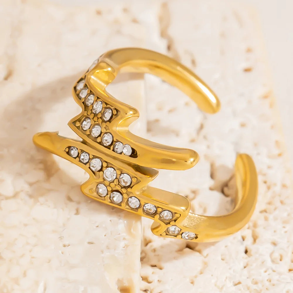 Fashion 18k Gold Plated Stainless Steel Ring Zircon Lightning Irregular Open Rings for Women
