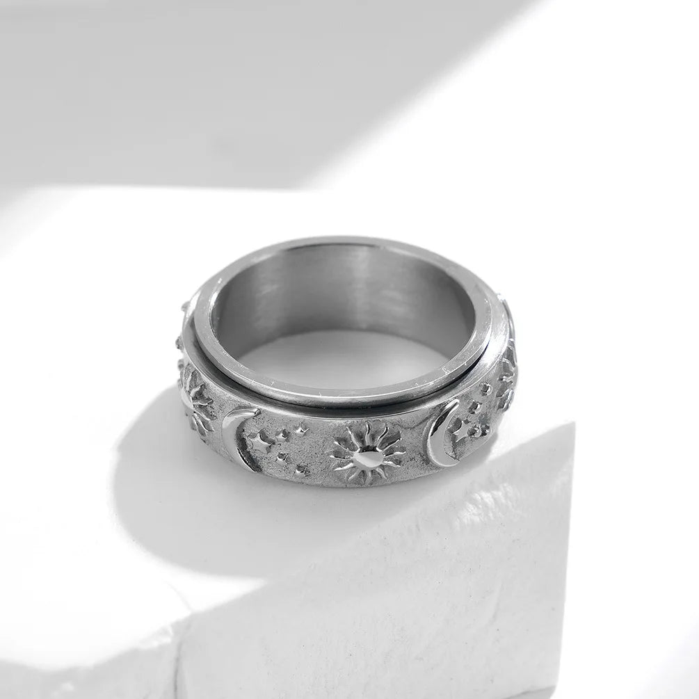Hypoallergenic 18k Gold Plated Moon Star Spinner Ring Stainless Steel Rotating Anxiety Relief Rings Jewelry for Women