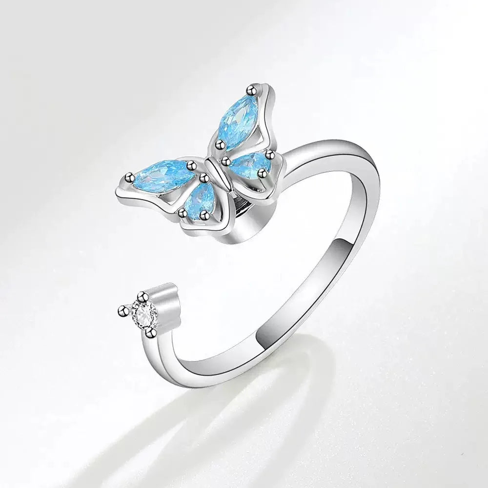 Butterfly Spinner Ring for Anxiety Relief Rotatable Open Adjustable Statement Jewelry Stress Relief Gift for Women