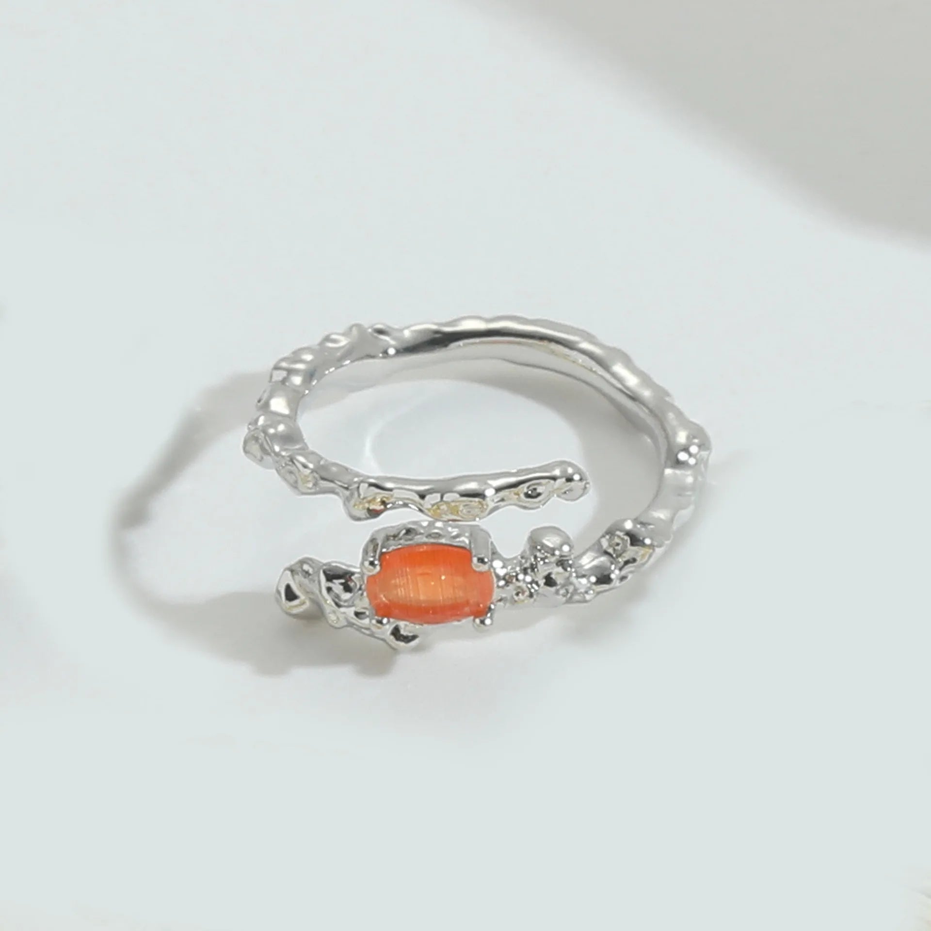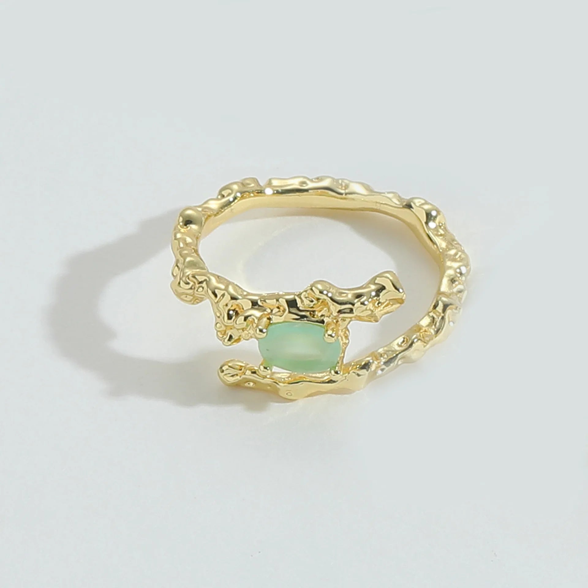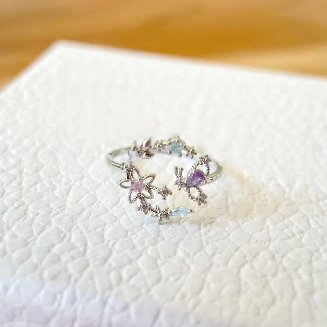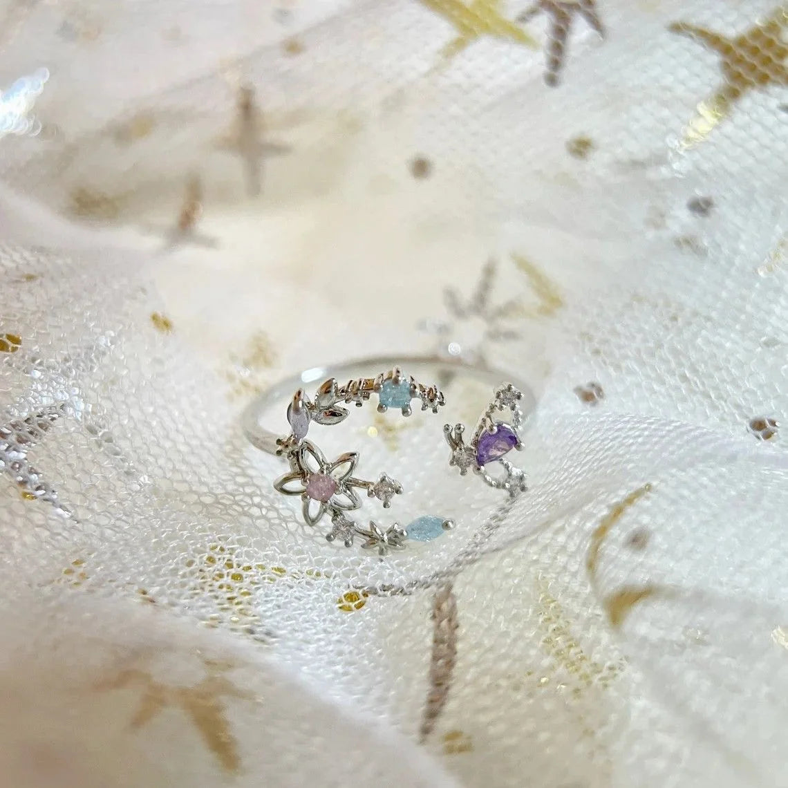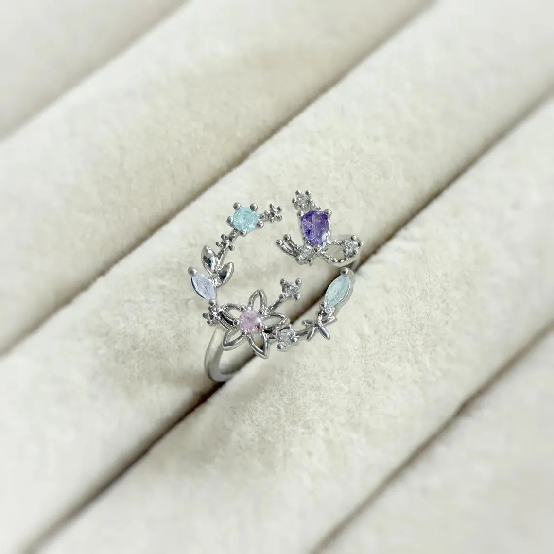 Dainty 18k Gold Plated Crescent Moon Ring Multi Colored Gemstone Floral Wreath & Butterfly Open Adjustable Rings Boho Jewelry