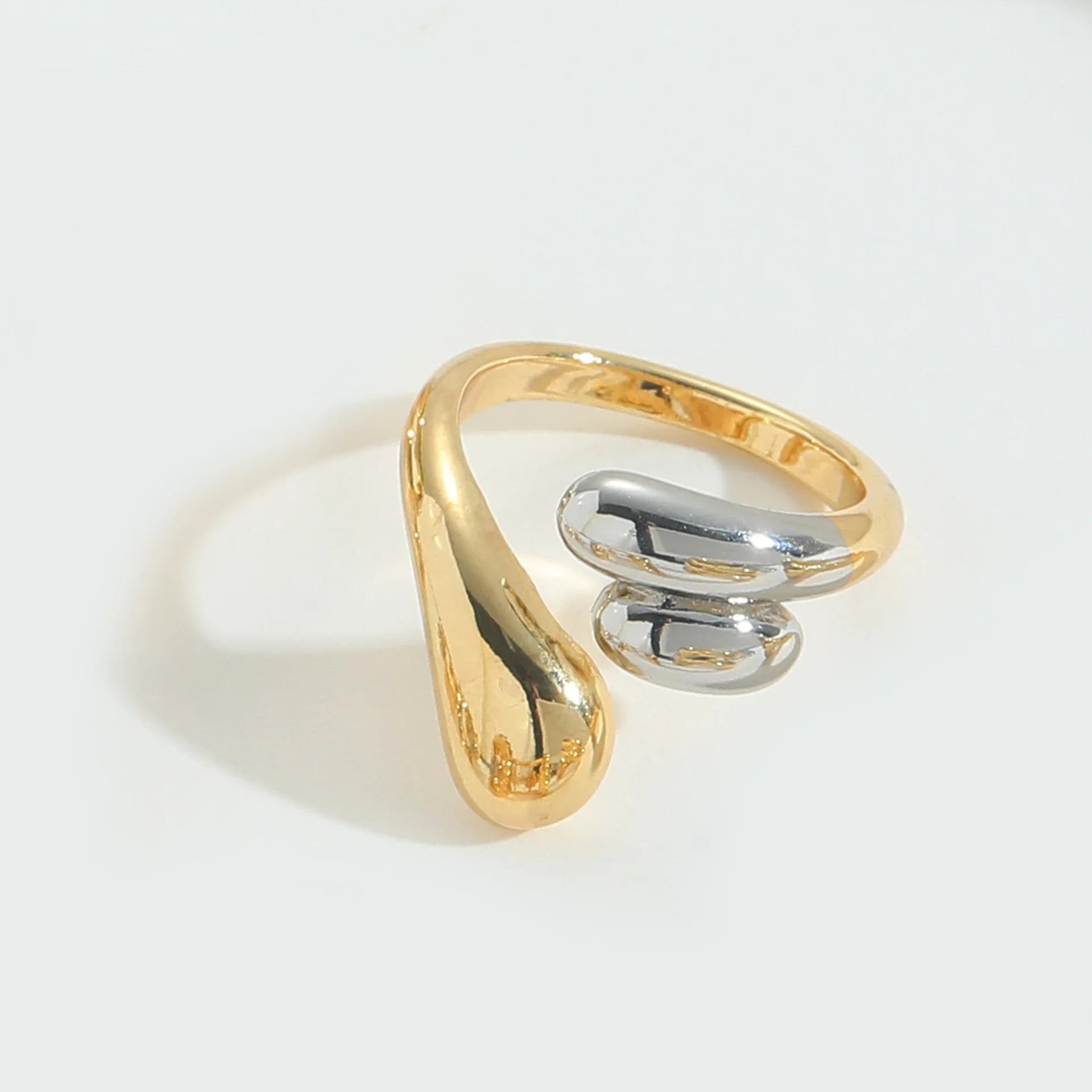 Wholesale 18k Gold Plated Water Drop Open Rings for Women Adjustable Minimalist Stainless Steel Jewelry