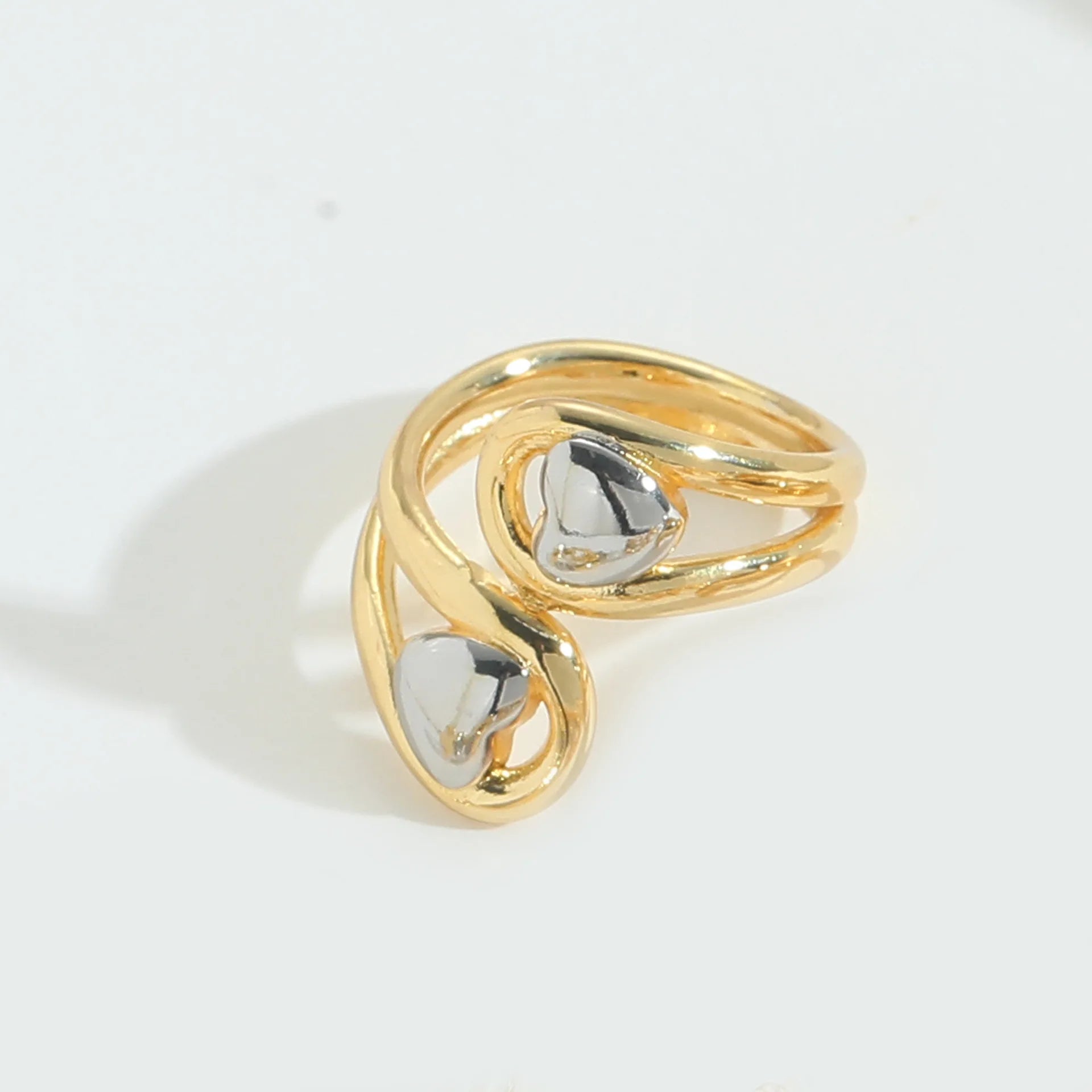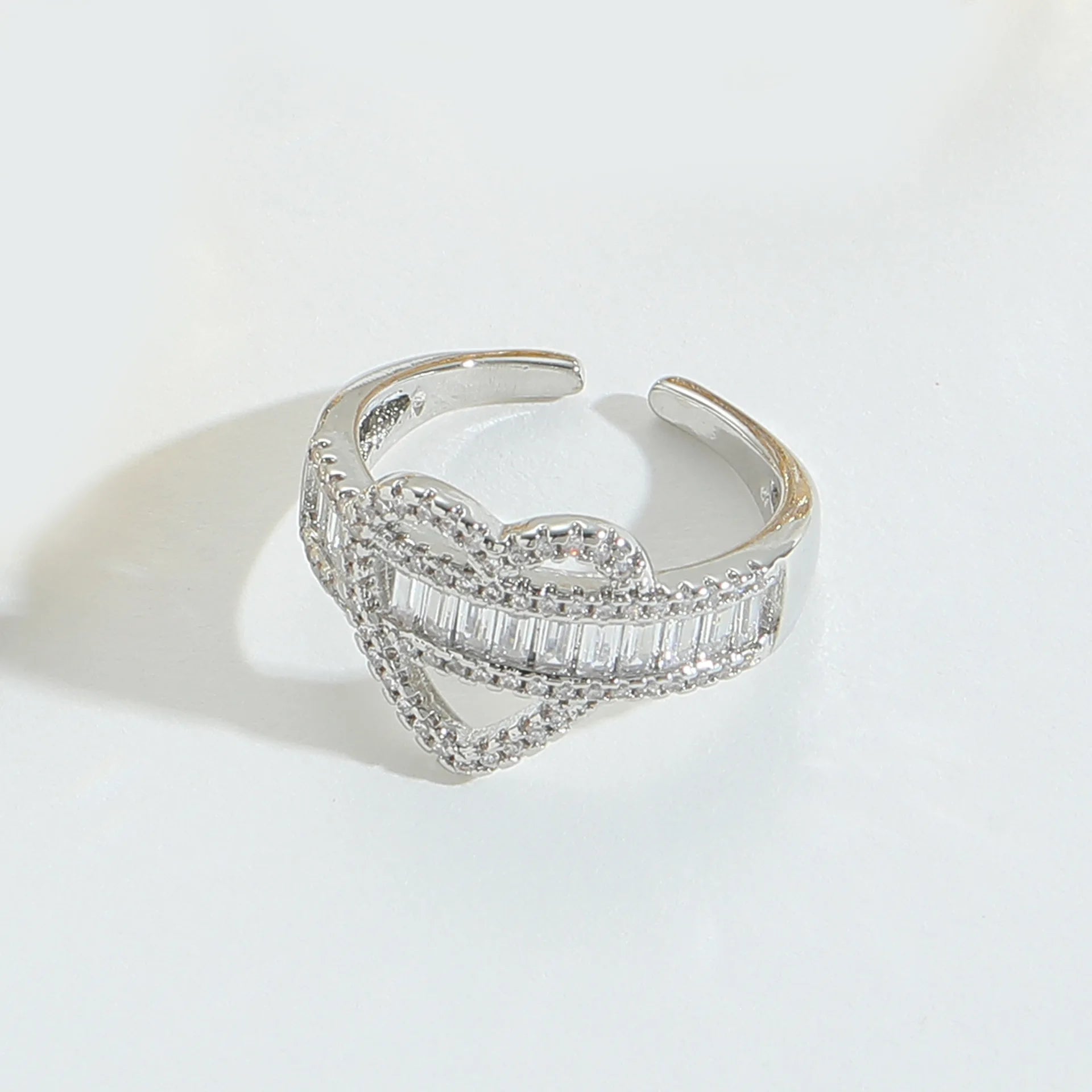 Trendy Classic Style Copper-Plated Heart-Shaped Ring with White Cubic Zirconia for Everyday Wear