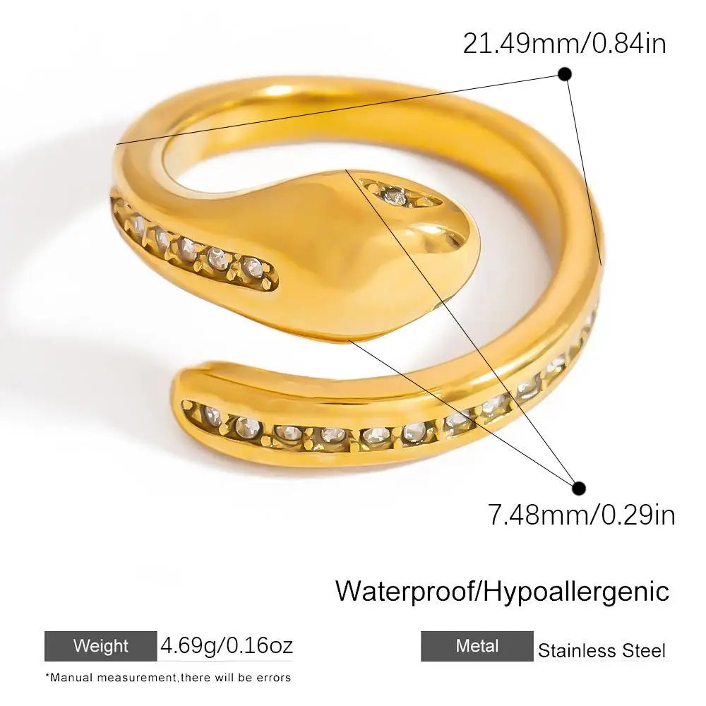 Fashion 18k Gold Plated Stainless Steel Ring Zircon Snake Open Ring Rings for Women