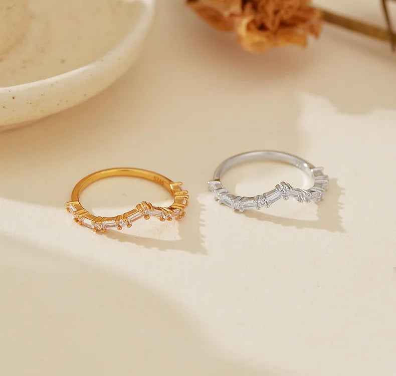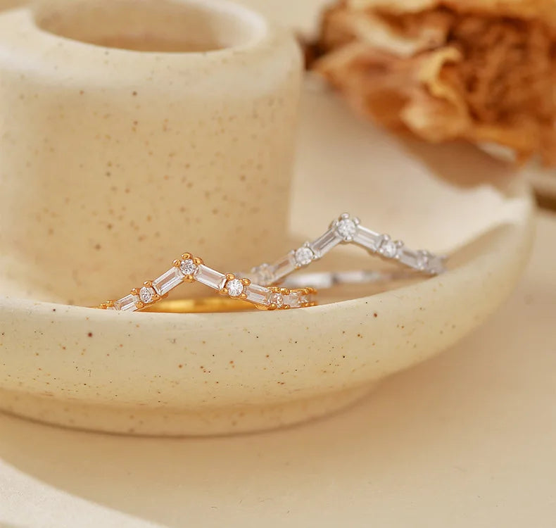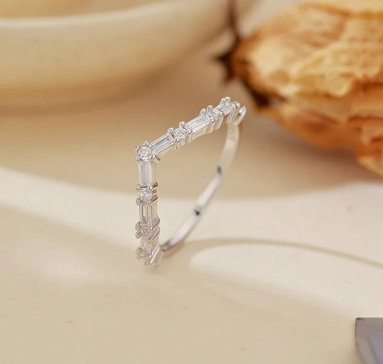 925 Sterling Silver Ring for Women Korean Style Irregular Geometric Micro Pave Zirconia Boho Minimalist Finger Ring Jewelry Gift