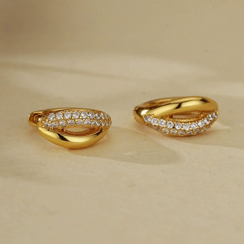 925 Silver Gold Plated Minimalist Hoop Earrings for Women Dainty Zircon Jewelry with Double-Line Design Everyday Earrings