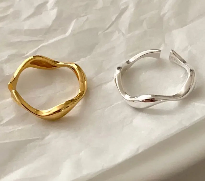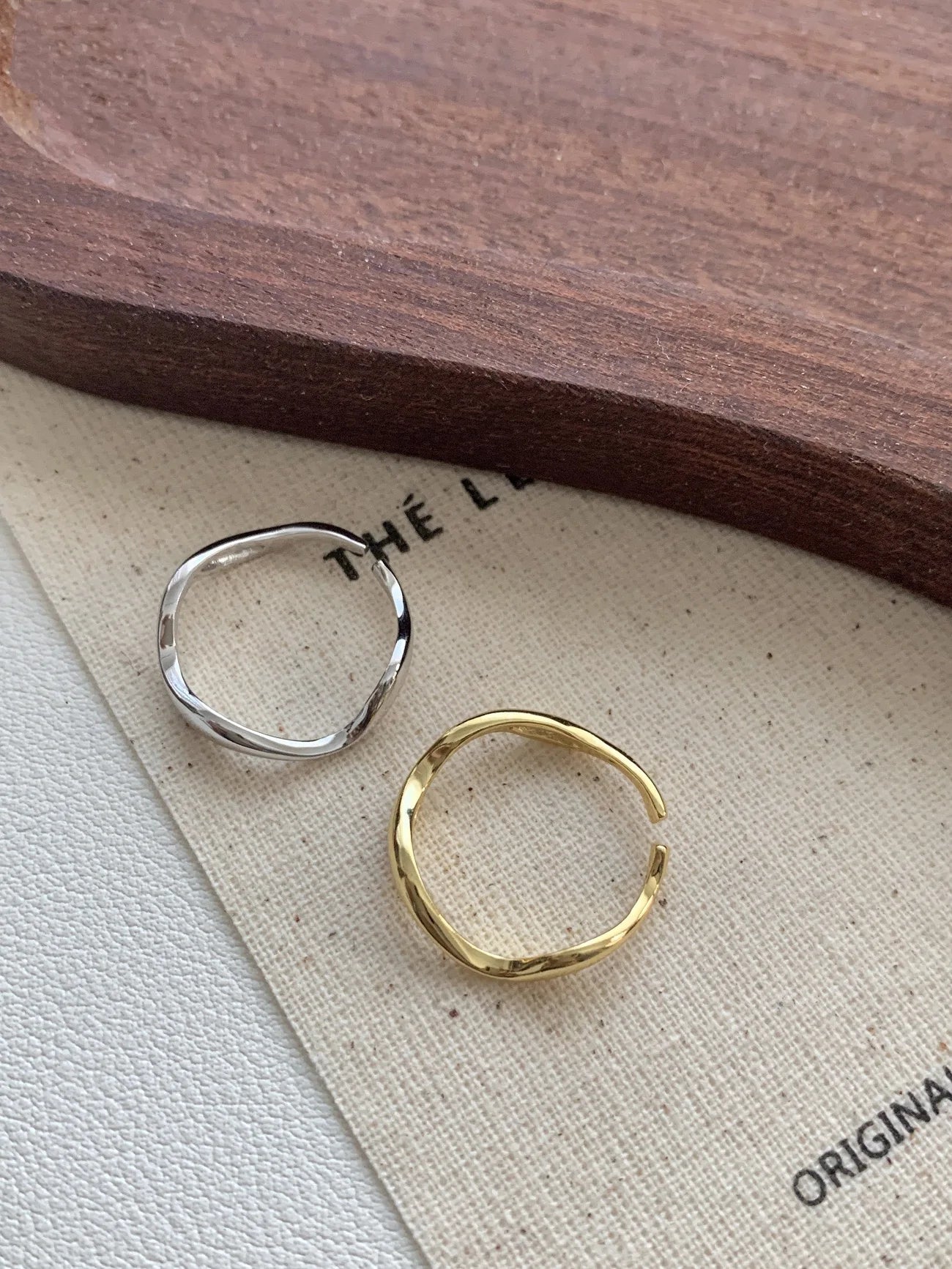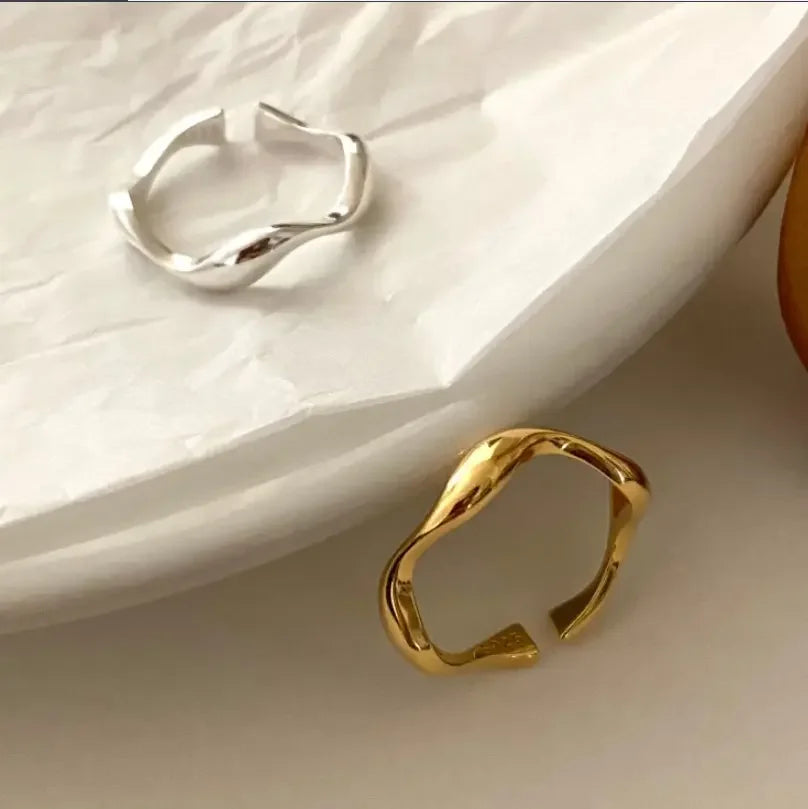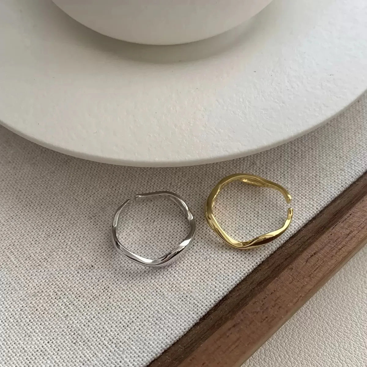 Unique 925 Sterling Silver Open Adjustable Ring for Women Irregular Geometric 18k Gold Plated Minimalist Jewelry