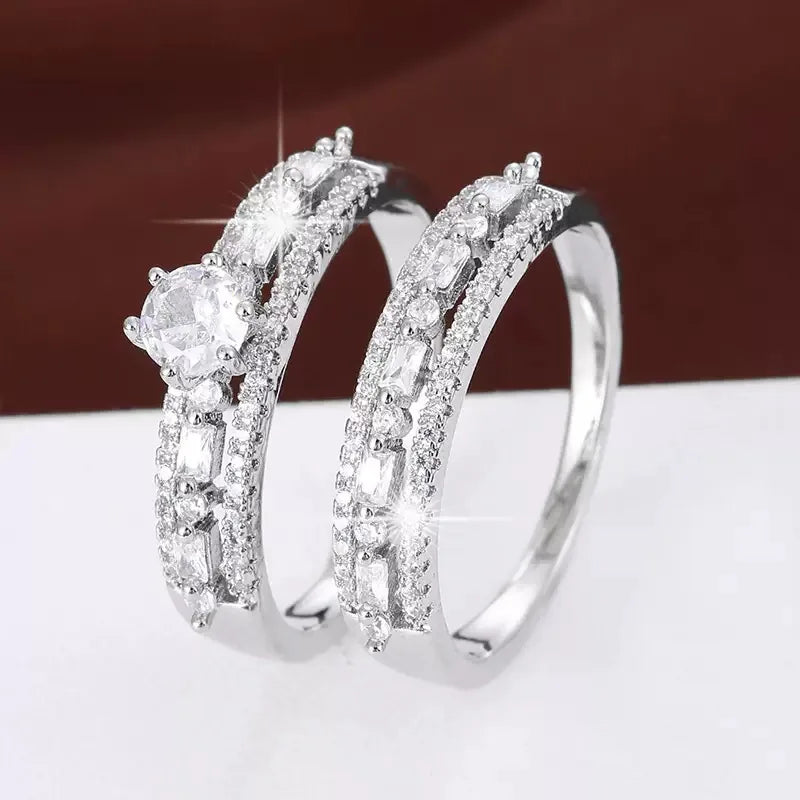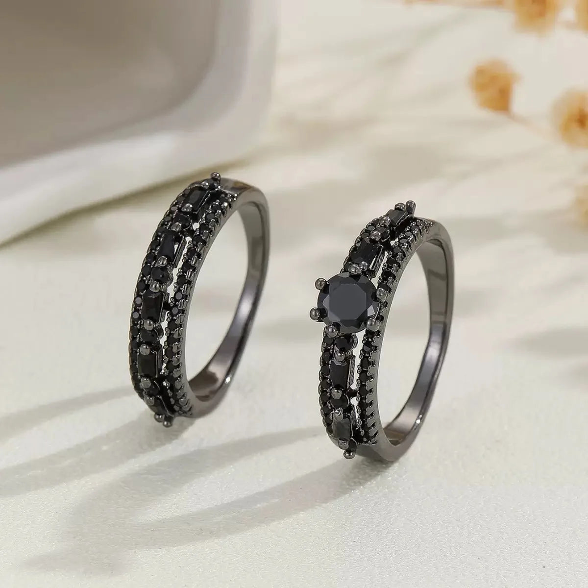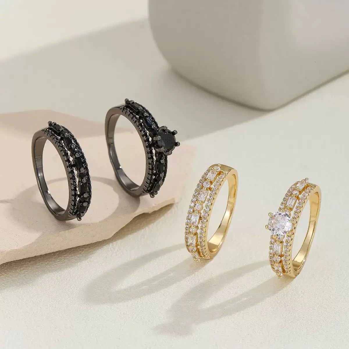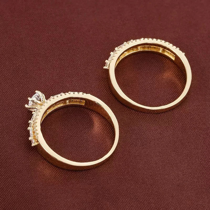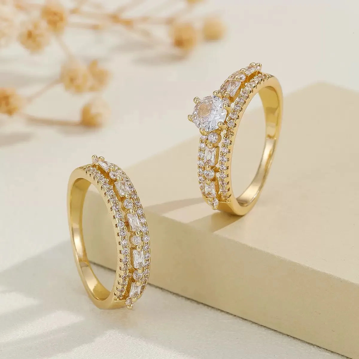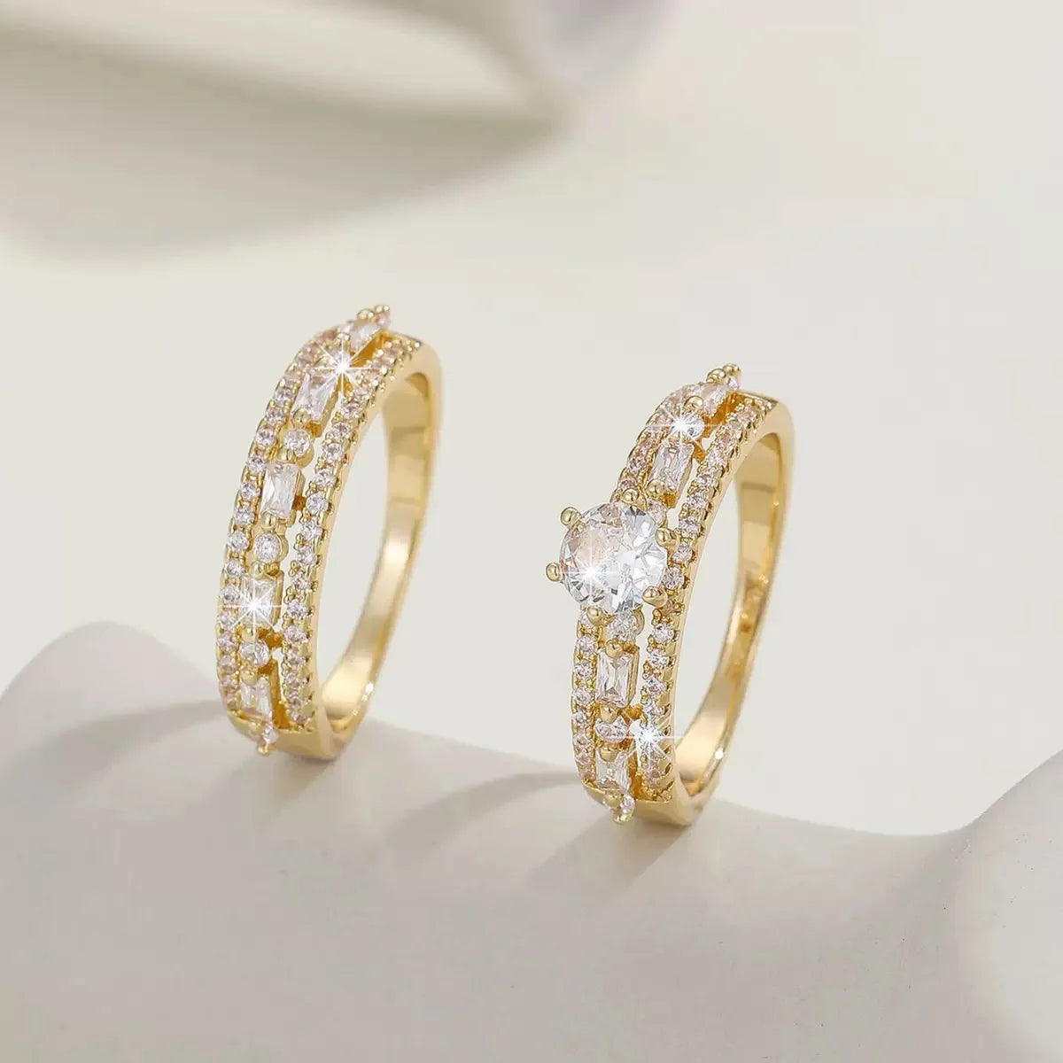 Vintage 14k Gold Plated Couple Rings Set for Women Men Cubic Zirconia Engagement Matching Rings Anniversary Gift Jewelry