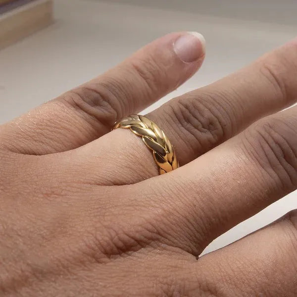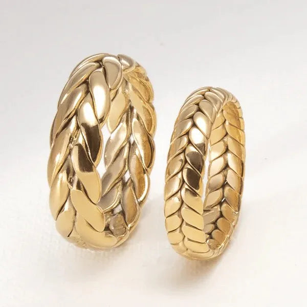 Vintage Stainless Steel Wheat Couple Rings Set Hypoallergenic 18K Gold Plated Matching Wedding Bands for Him Her