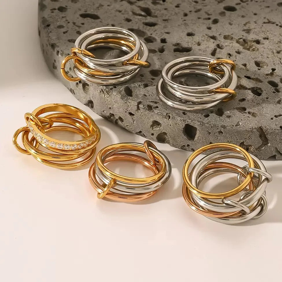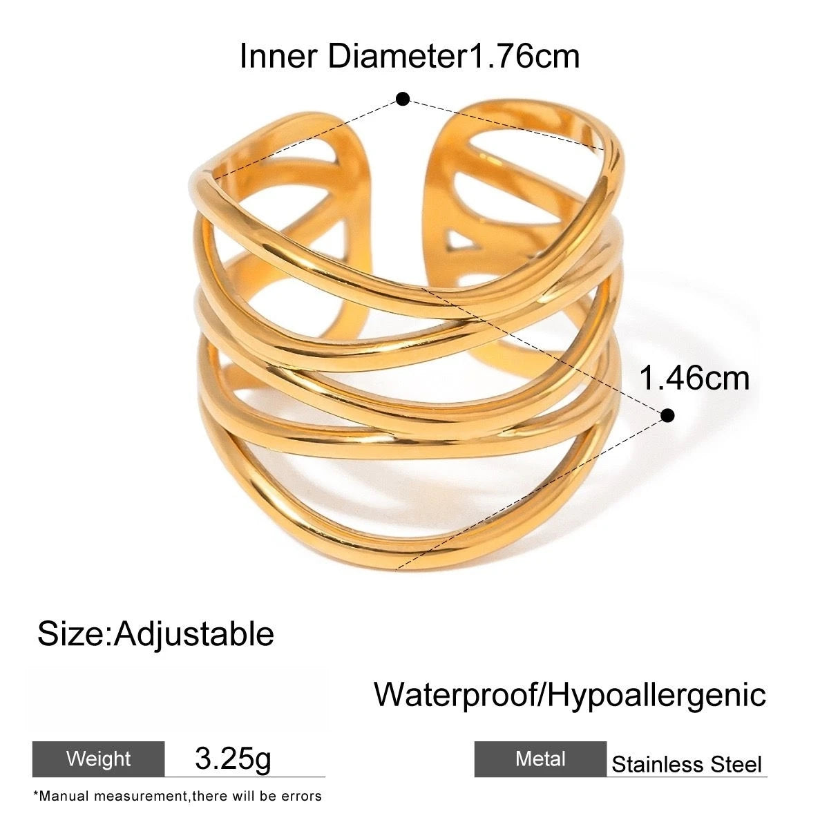 Adjustable Fashion Rings Women Waterproof & Non-Tarnish PVD 18K Gold Plated Stainless Steel Statement Rings Boho Chunky Jewelry