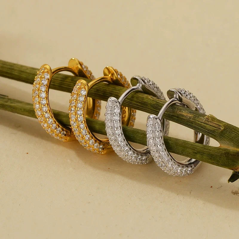 925 Sterling Silver Hoop Earrings Luxury Minimalist Sparkling Iced Design for Men Women Hypoallergenic Everyday Jewelry