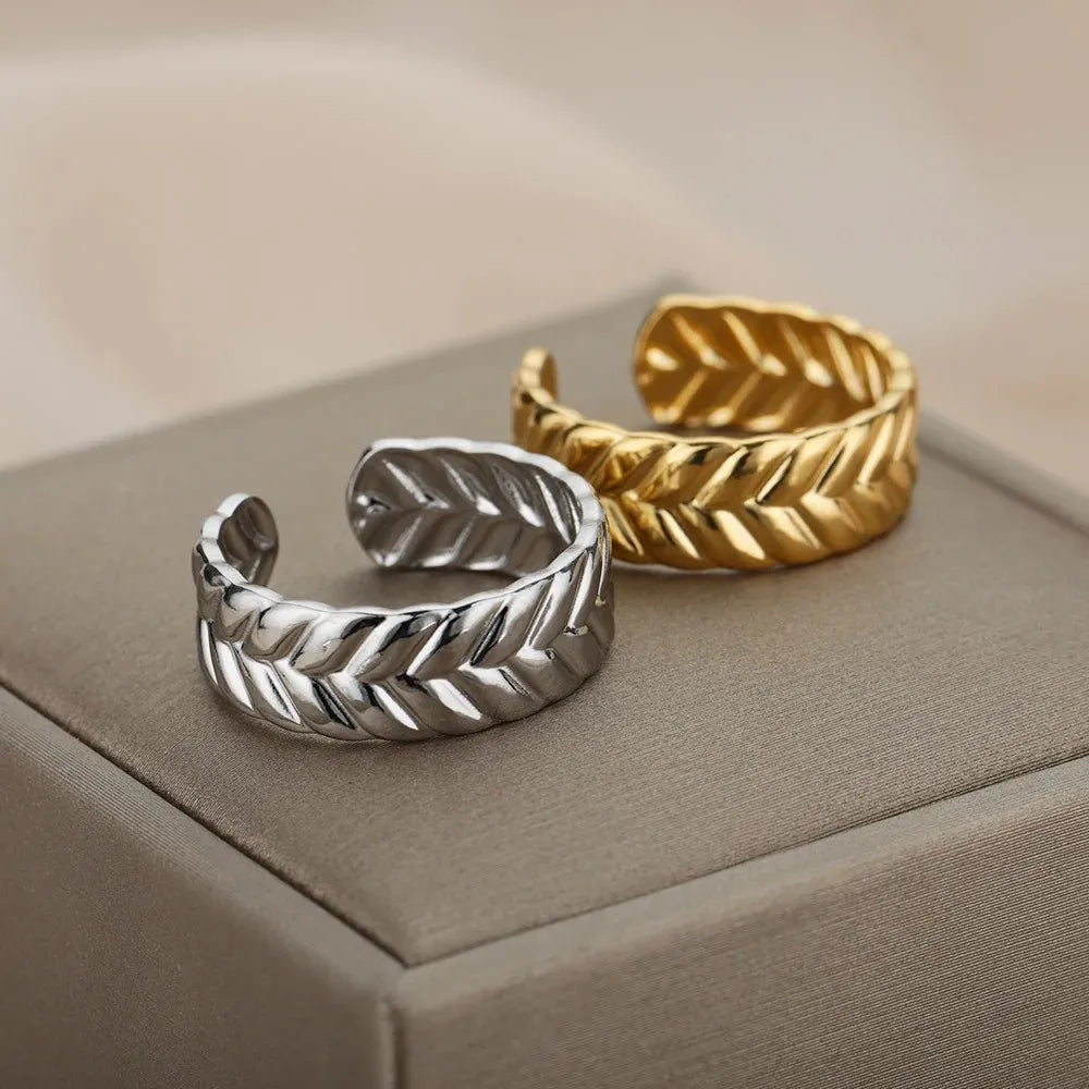 Classic Olive Leaf Adjustable Open Ring for Women Copper Boho Stackable Rings Jewelry Gifts for Her