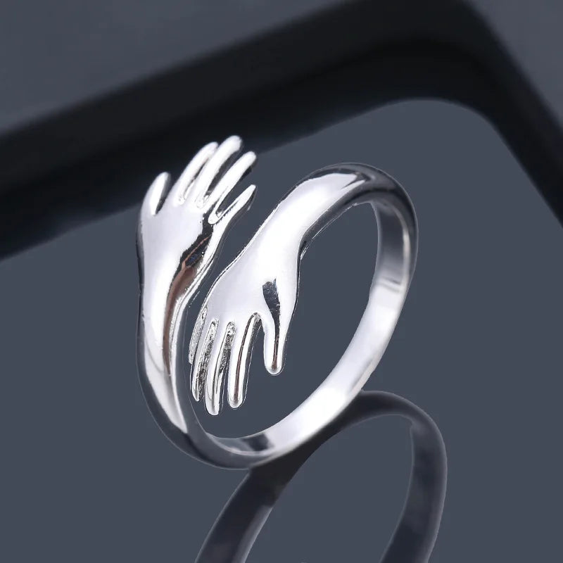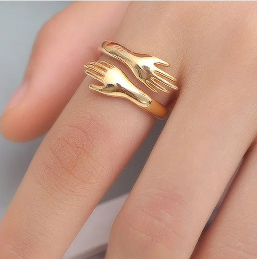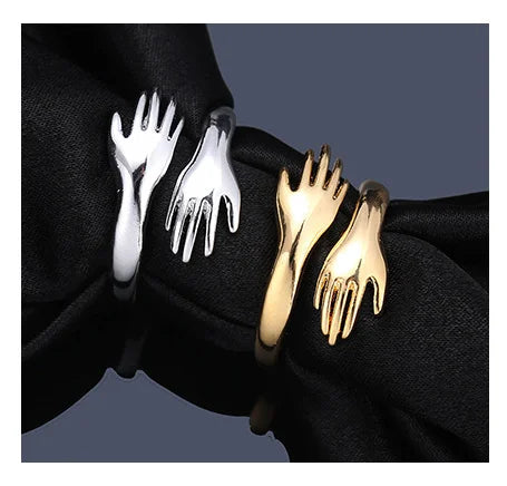 High Quality Adjustable Stainless Steel Gold Silver Hug Ring Engraved Hugging Hands Ring for Women