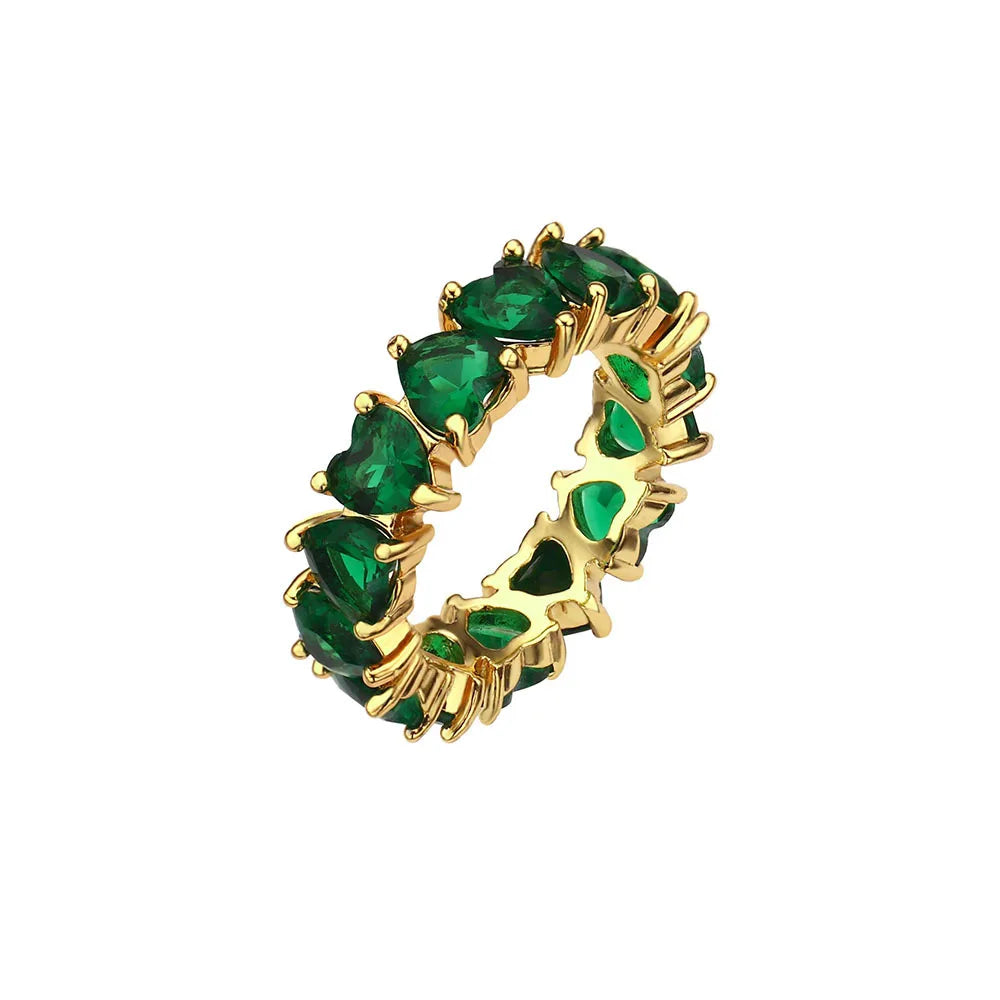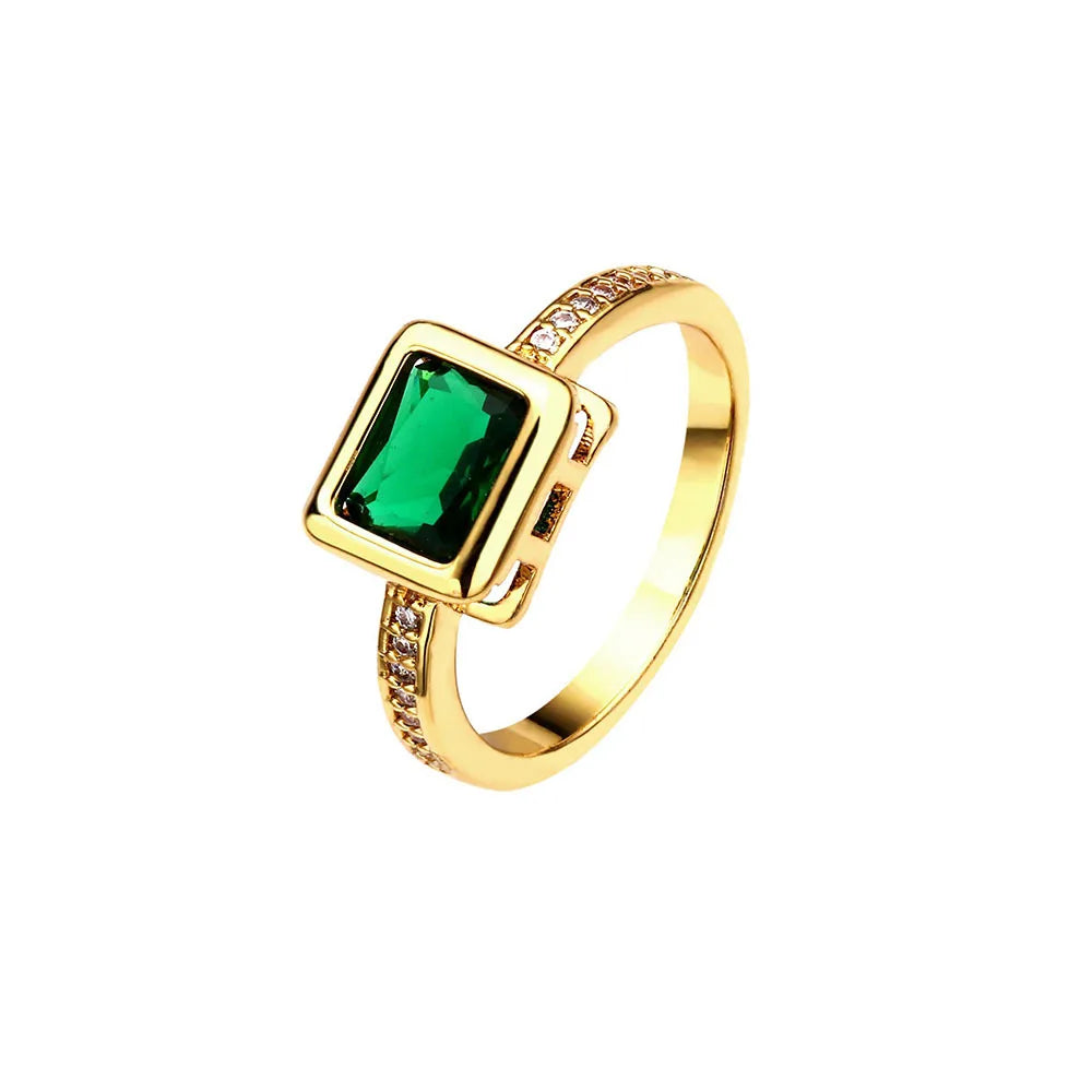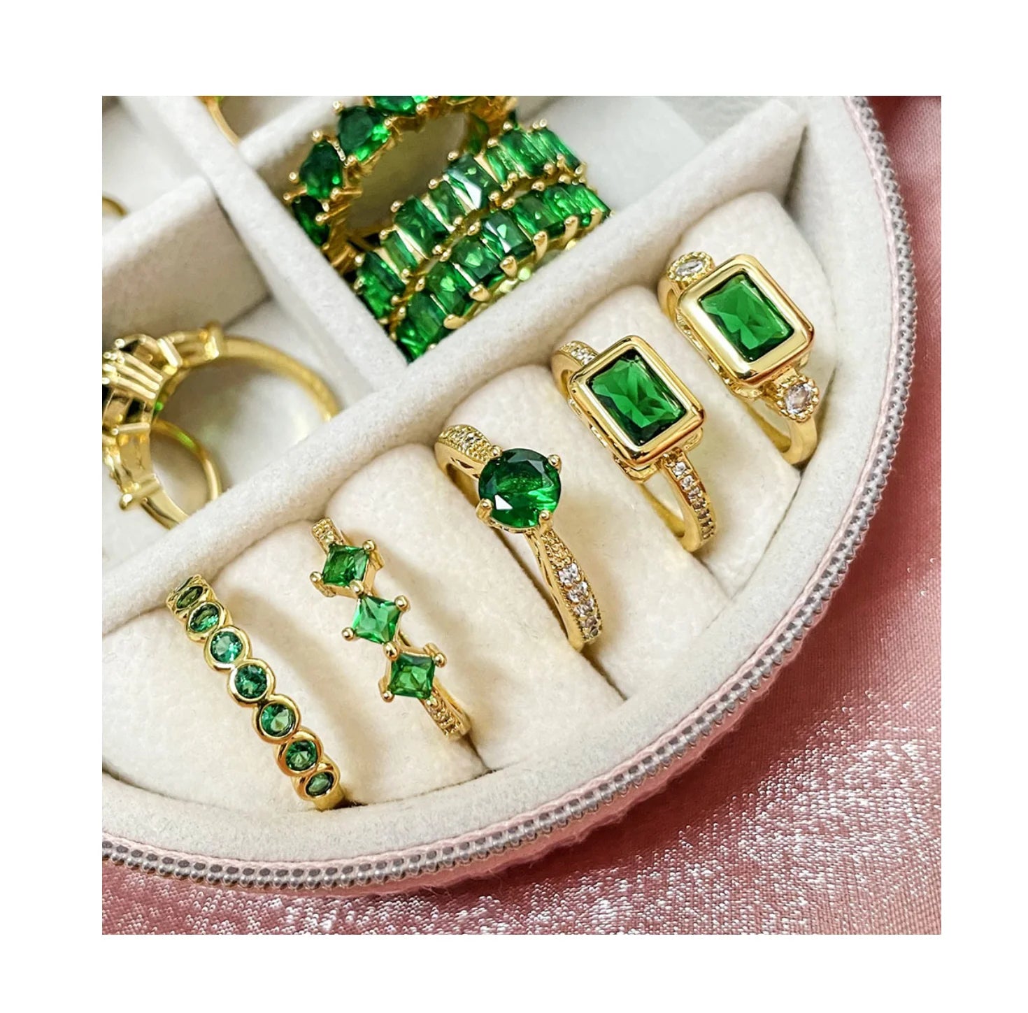 Fashionable Waterproof 18K Gold Plated Stainless Steel Green Cz Open Ring Elegant Accessory for Women