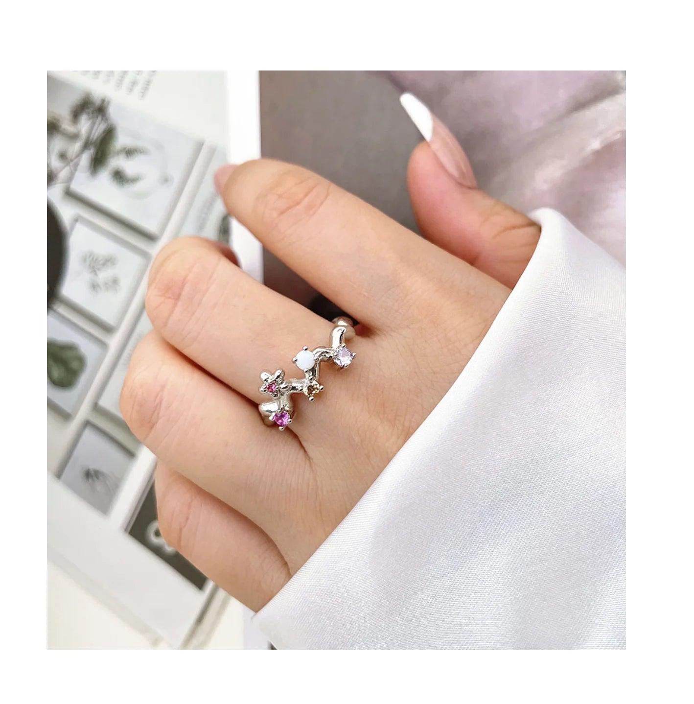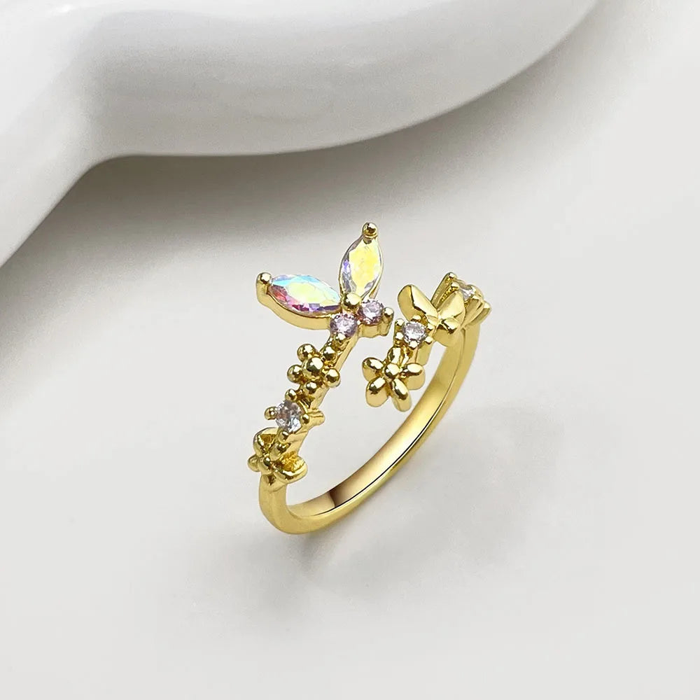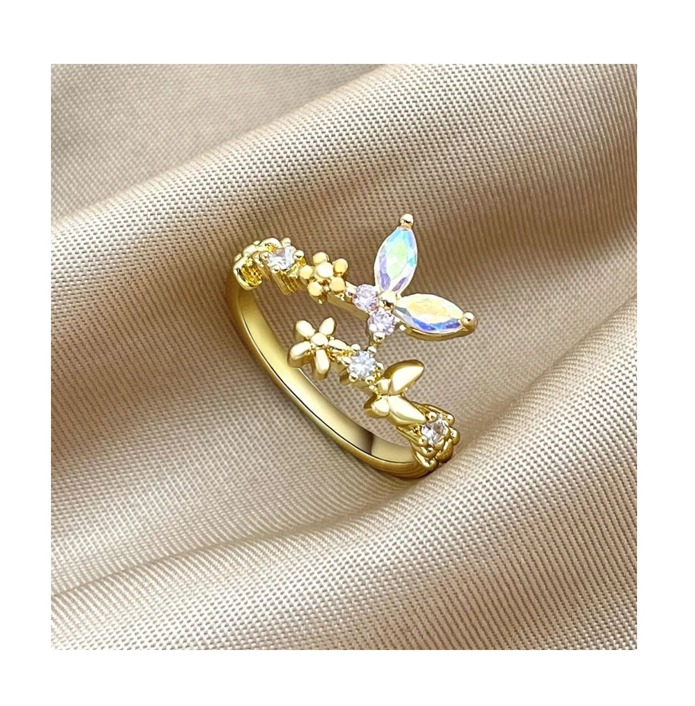 Fashionable 18K Gold Plated Butterfly Open Ring for Women Elegant Copper Zircon Butterfly Ring Jewelry