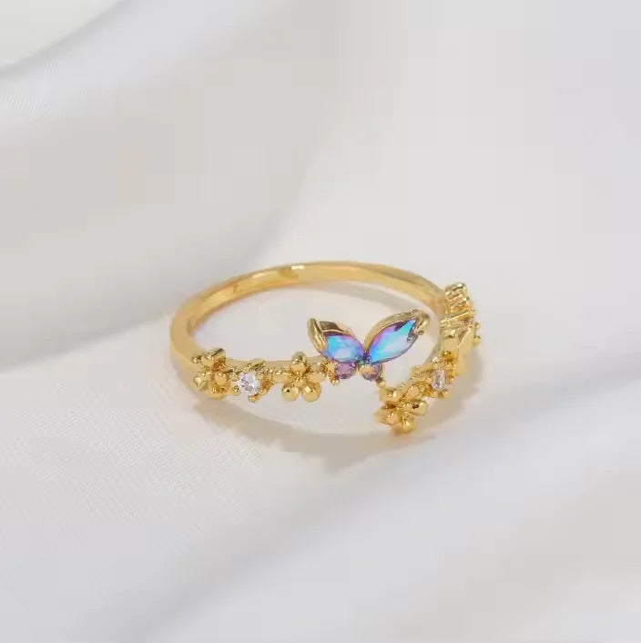 Fashionable Butterfly Ring 18K Gold Plated Adjustable Design Elegant Accessory for Women