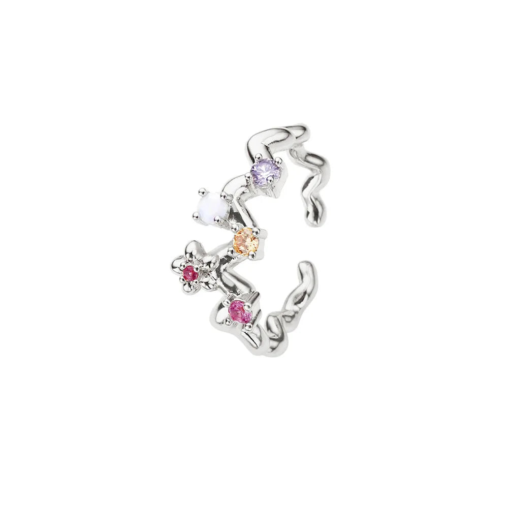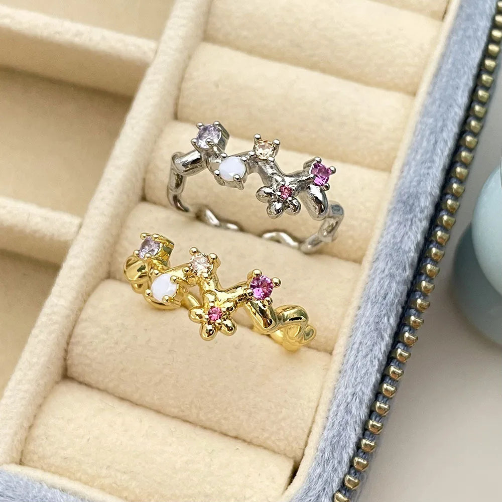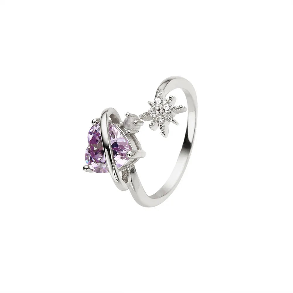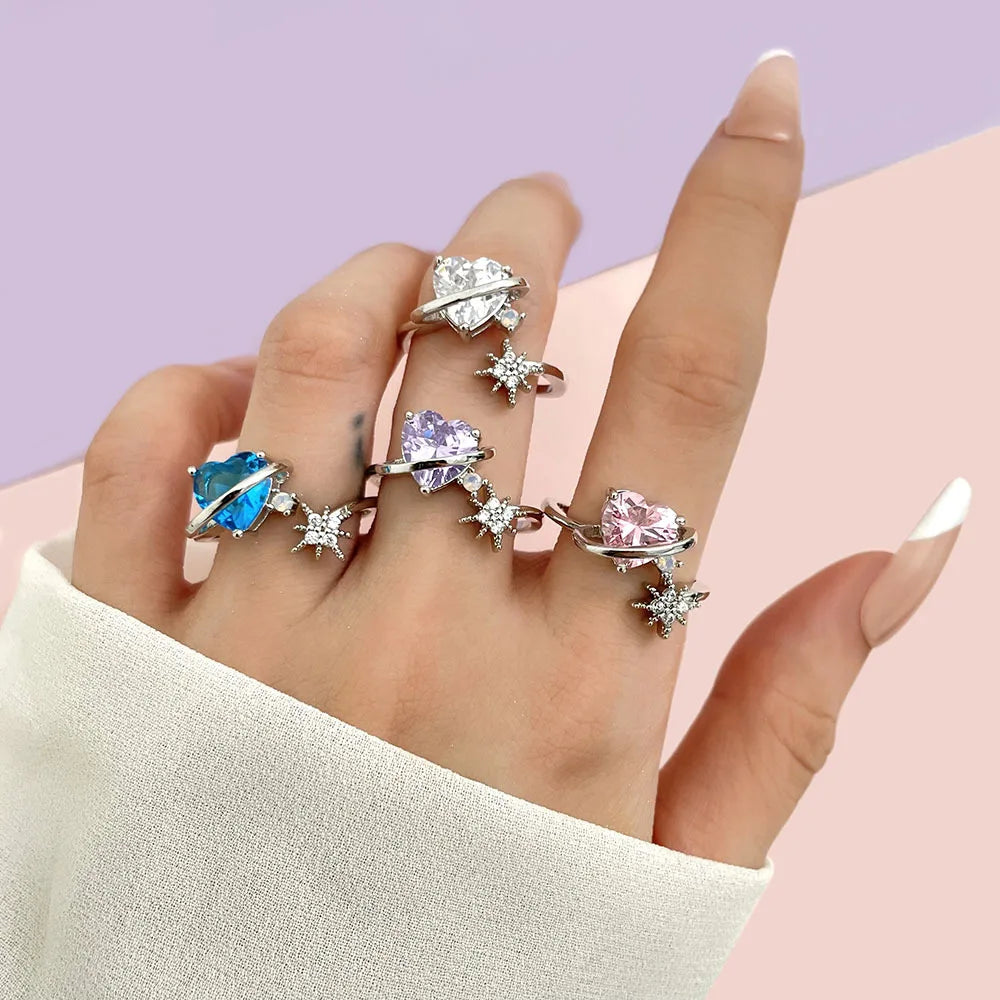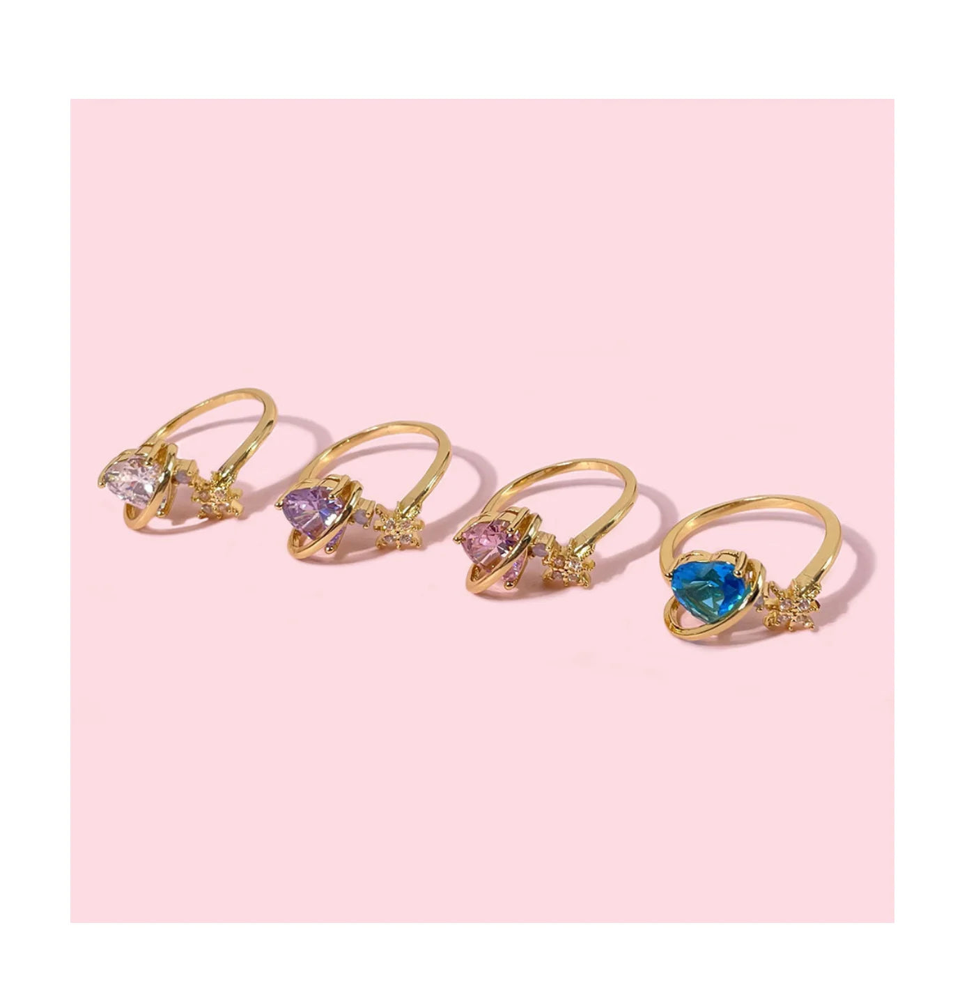Hot Selling Fashion Rings 18K Gold Plated Heart Shape Multicolored Cz Adjustable Ring Size Suitable for Various Occasions