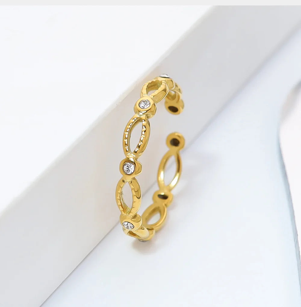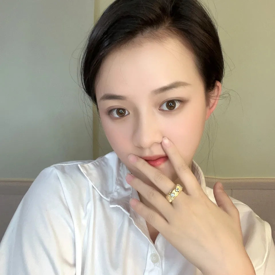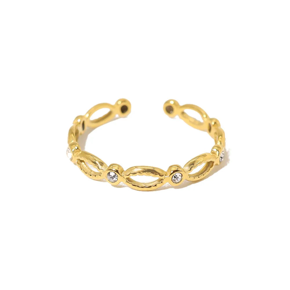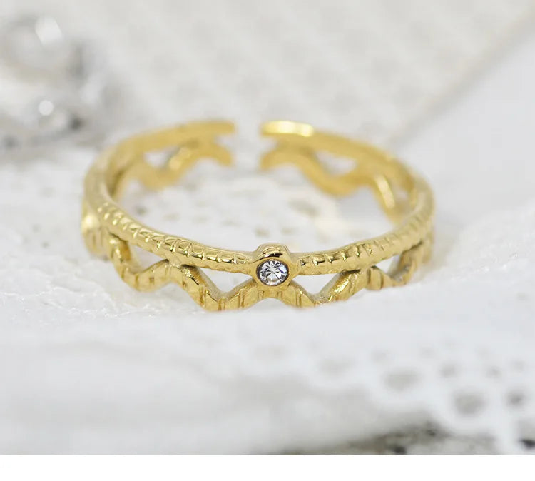 High Quality Gold Plated Open Adjustable Sample Engagement Rings Stainless Steel Zircon Ring for Girl Valentine'S Day Gifts