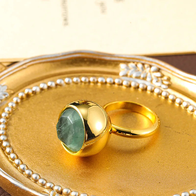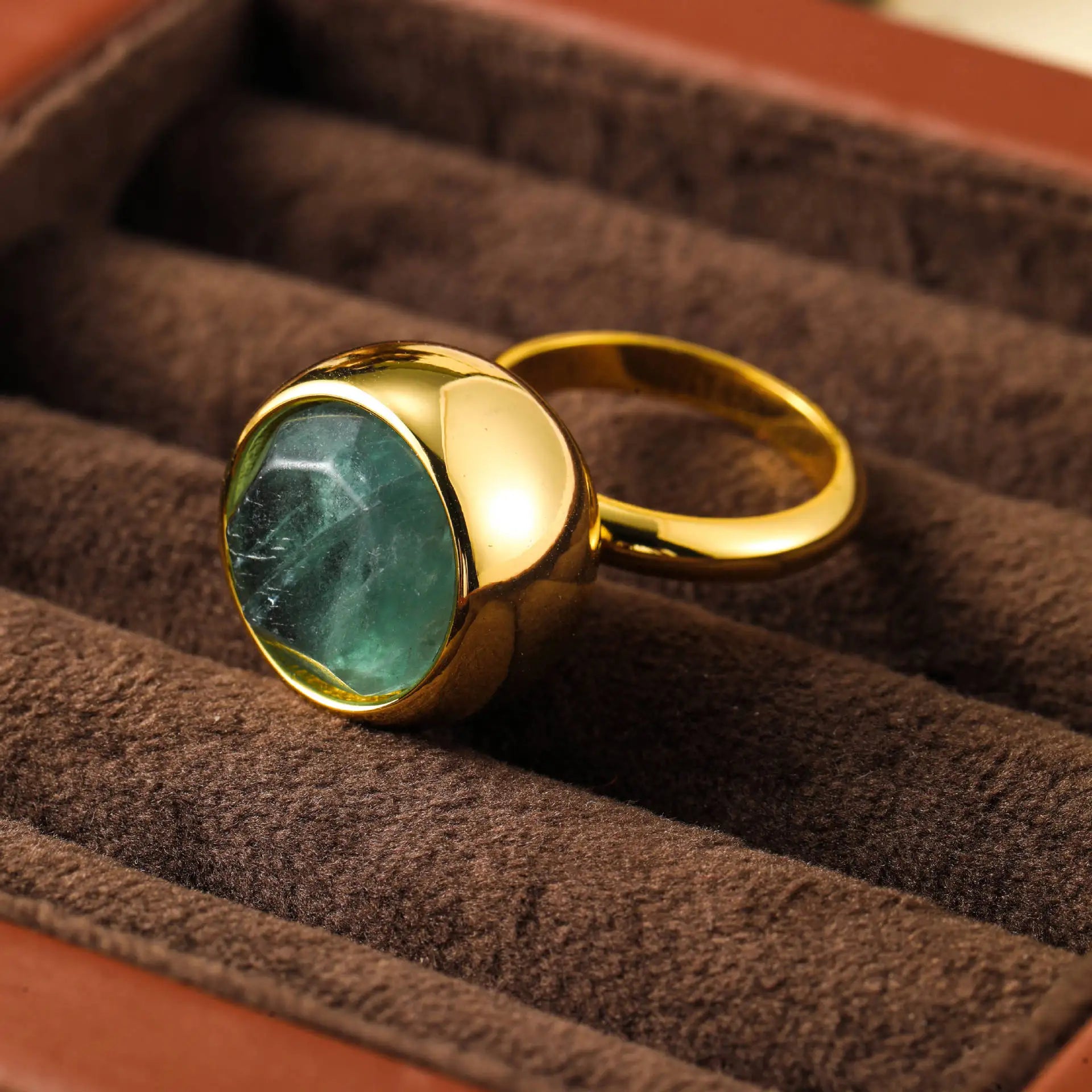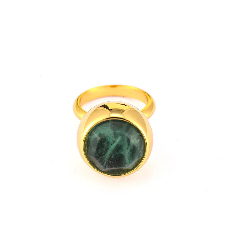 Fashion Copper 18K Gold Plated Natural Stone Ring Green Round Stone Rings for Women