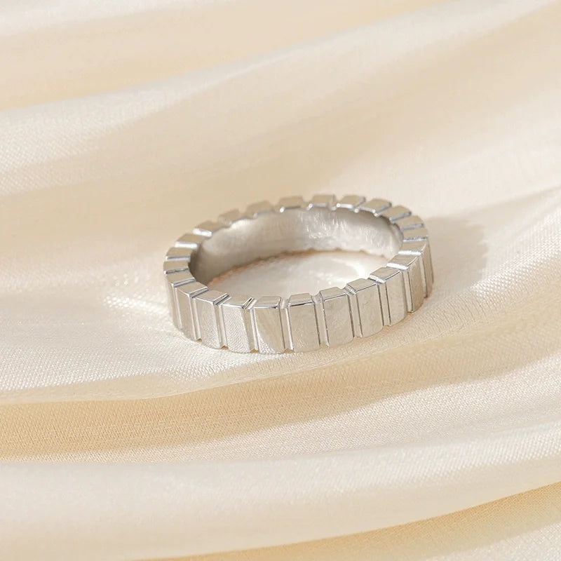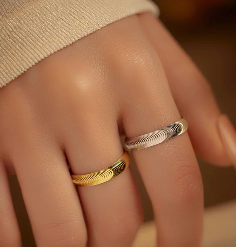 Stylish 925 Silver Hammered Cat Eye Ripple Ring Colorful and Shiny for Daily and Dinner Wear Classic Style