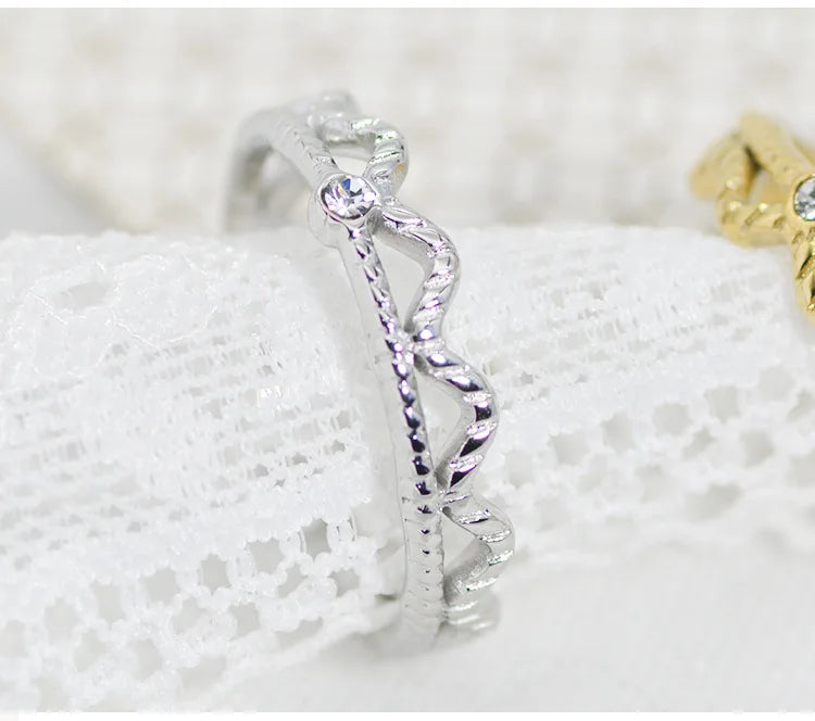 Gold Plated Open Adjustable Cute Princess Crown Rings Stainless Steel Zircon Ring for Girl Valentine'S Day Gifts