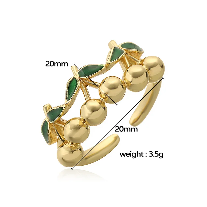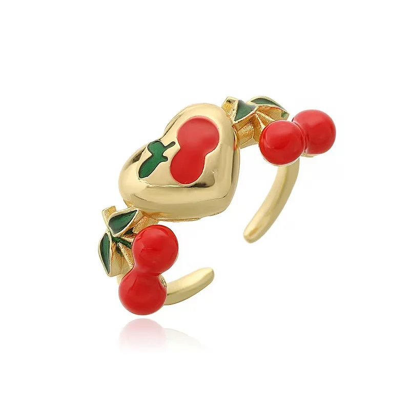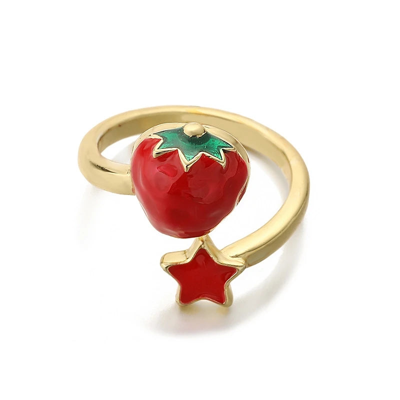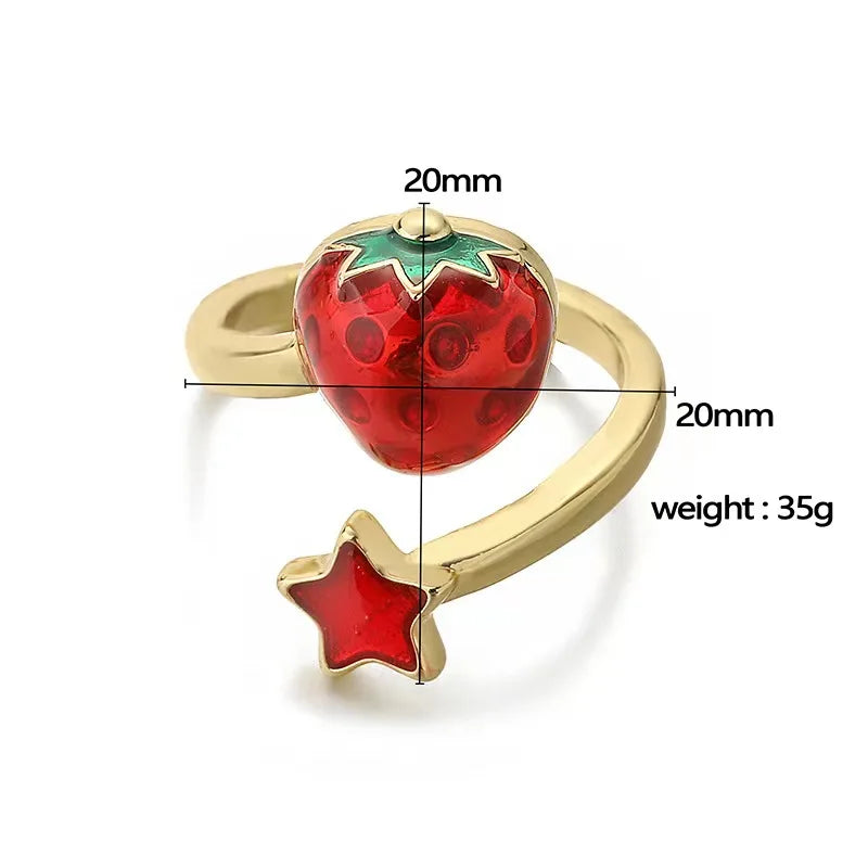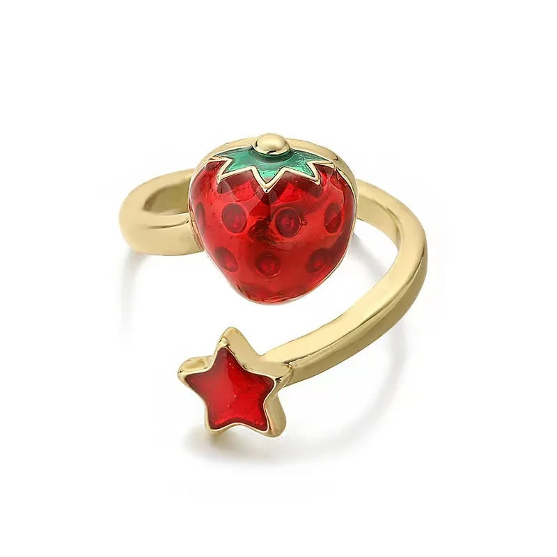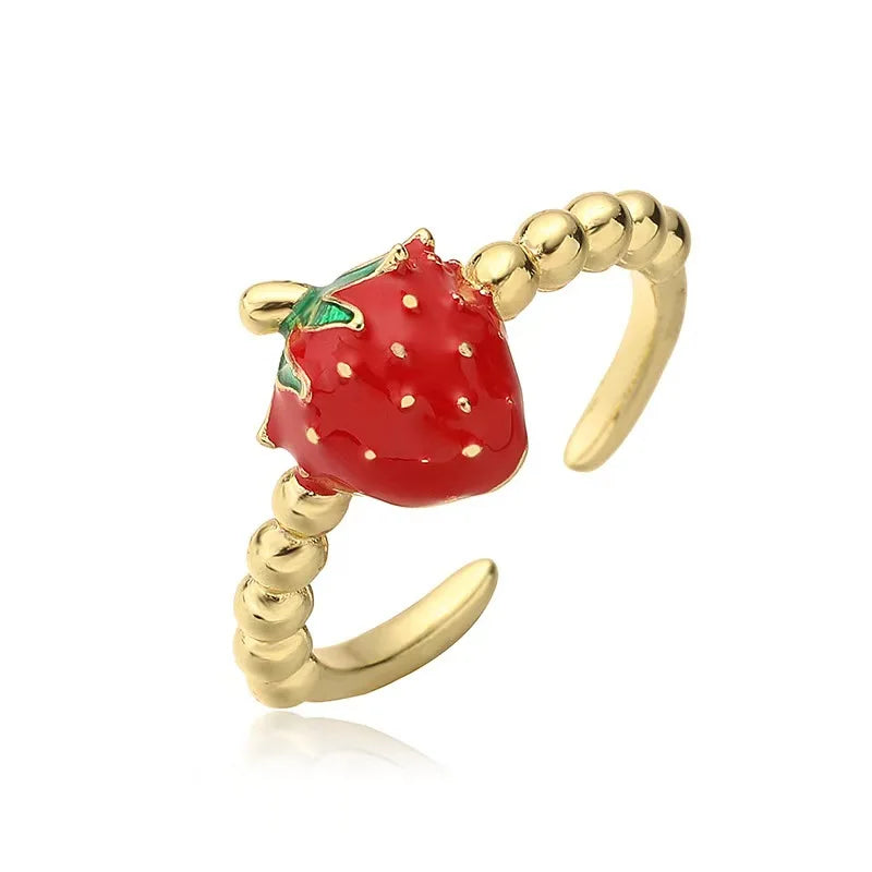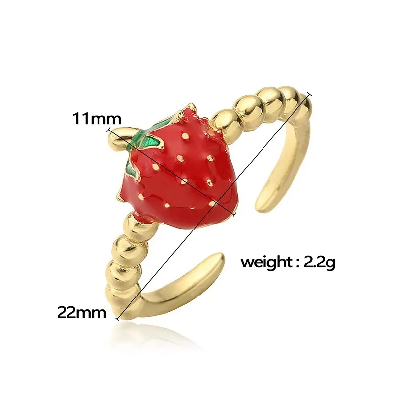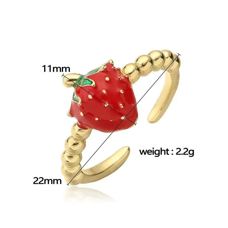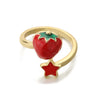 Luxury 18k Gold Plated Cherry Strawberry Ring Adjustable Fruit Drop Charm Jewelry for Women Dainty Boho Stackable Rings
