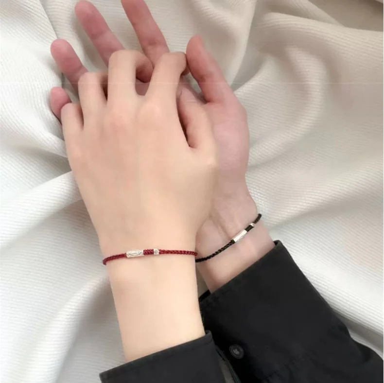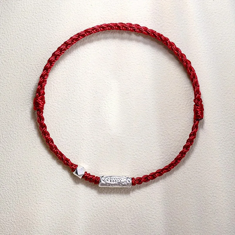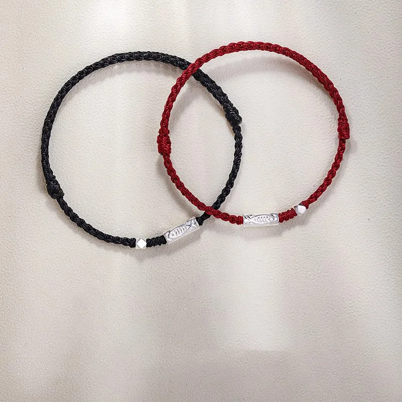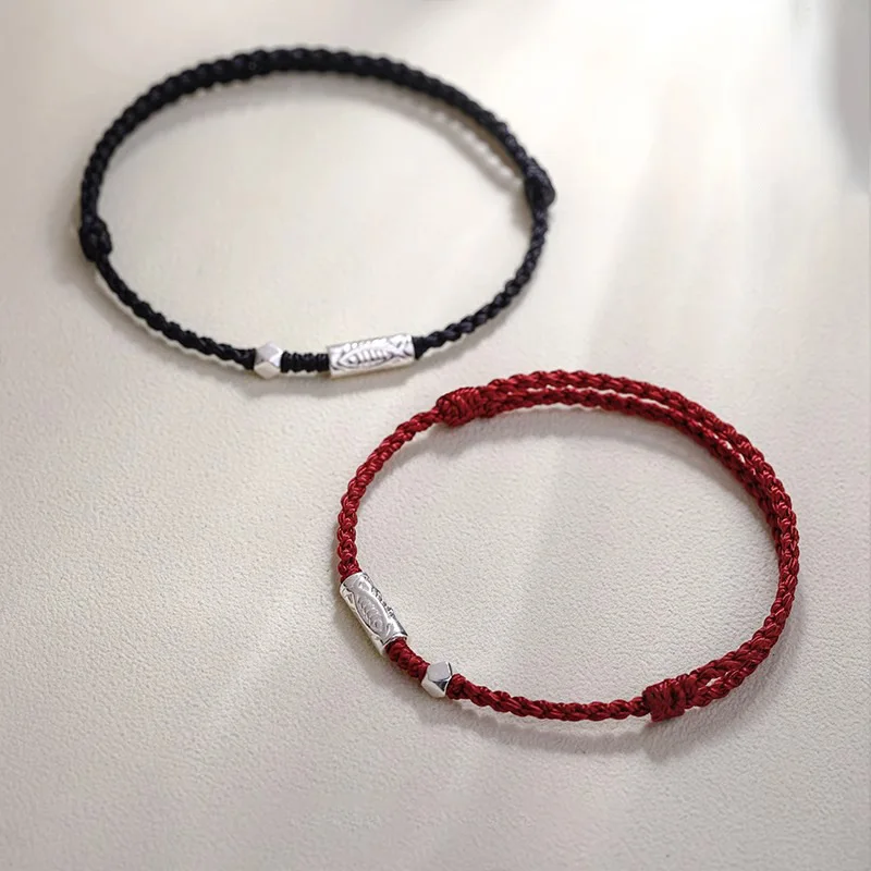 S925 Sterling Silver Handmade Braided Rope Charm Bracelet for Men Women Adjustable Koi Fish Lucky Couple Bracelet