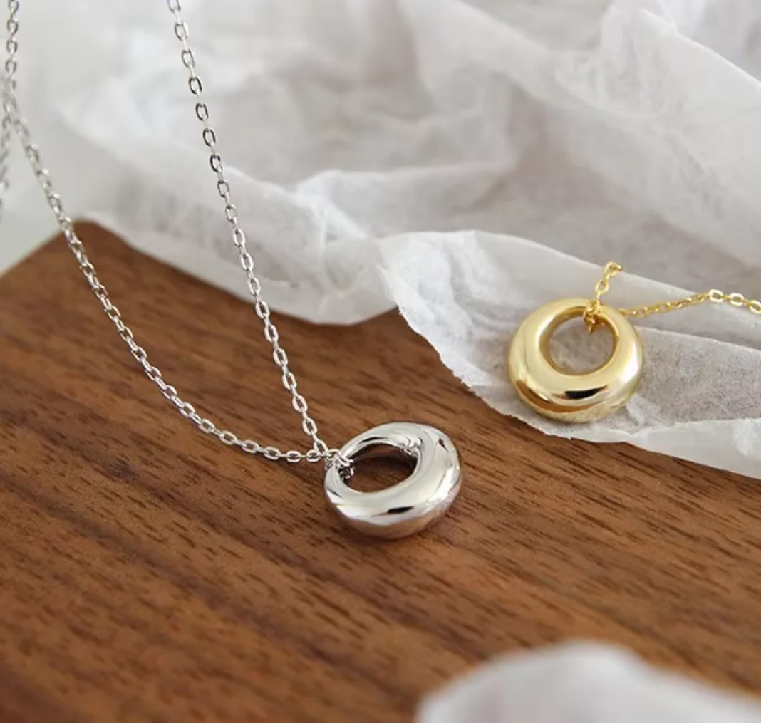 Stylish Elegant Stainless Steel 925 Sterling Silver Circle Pendant Necklace Jewelry for Party Wear