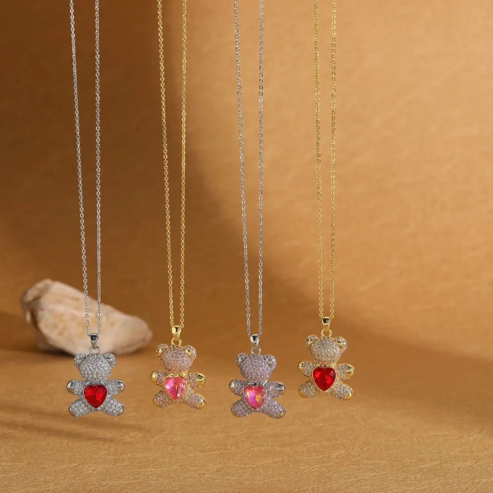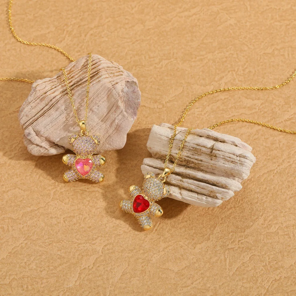 New Arrival 18K Gold Plated Women's Necklace with Vintage Style Bear Pendant Cute Zircon and Copper for Parties