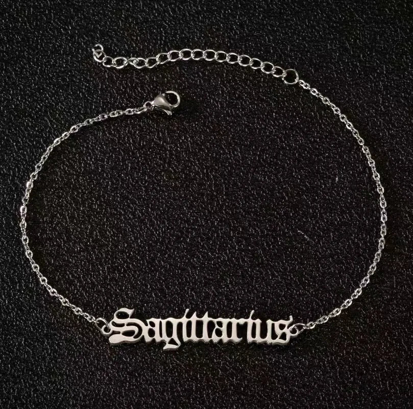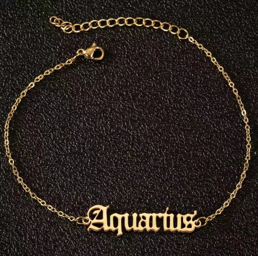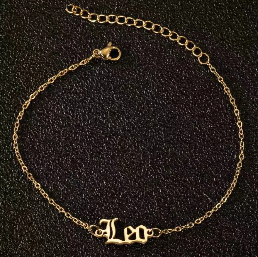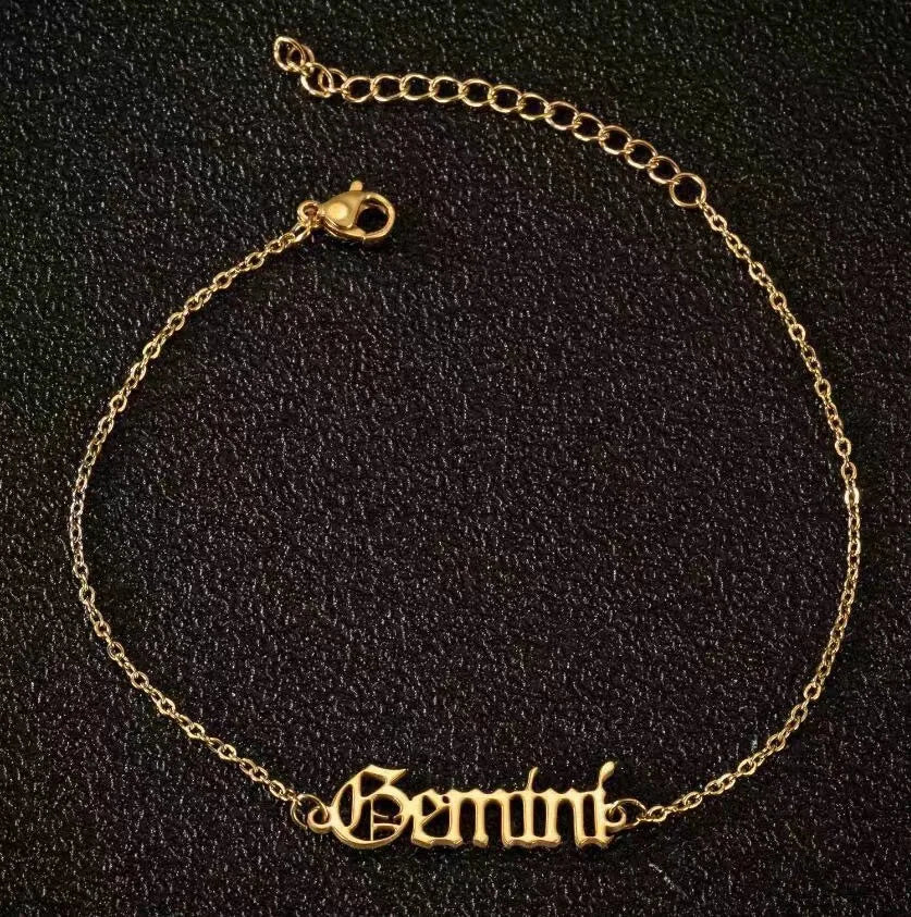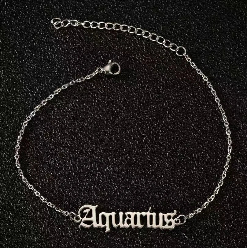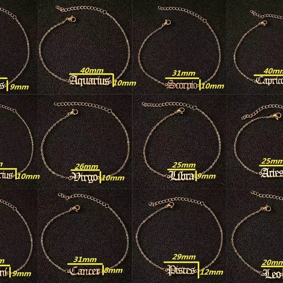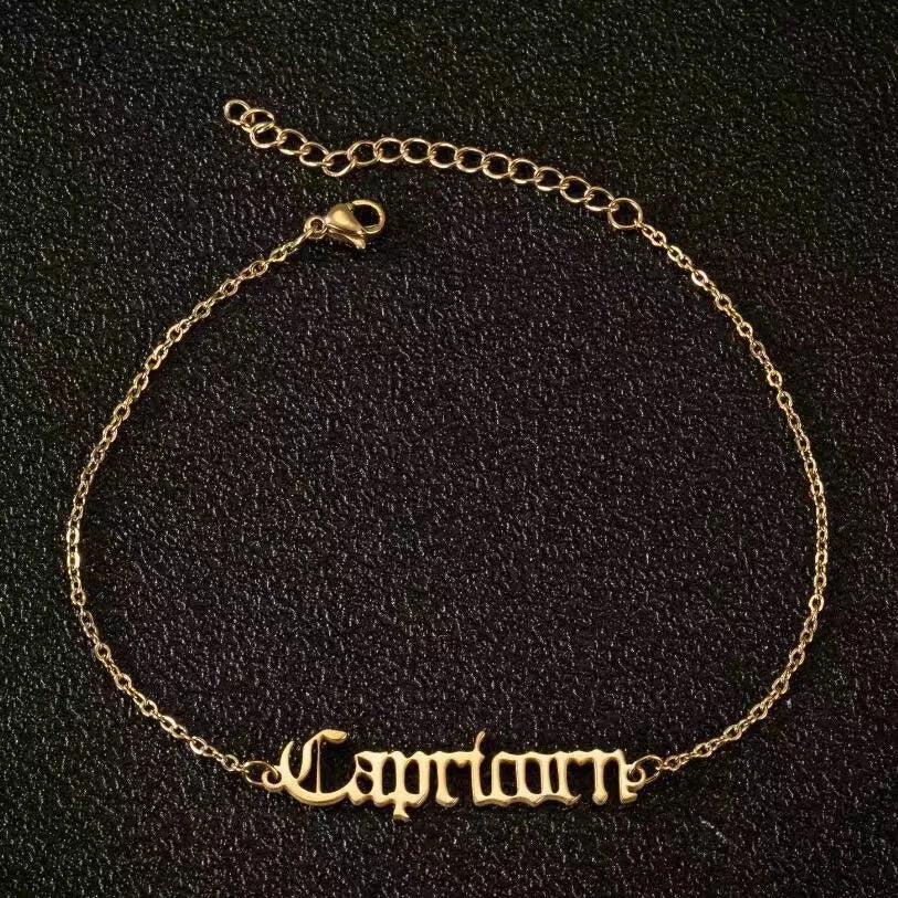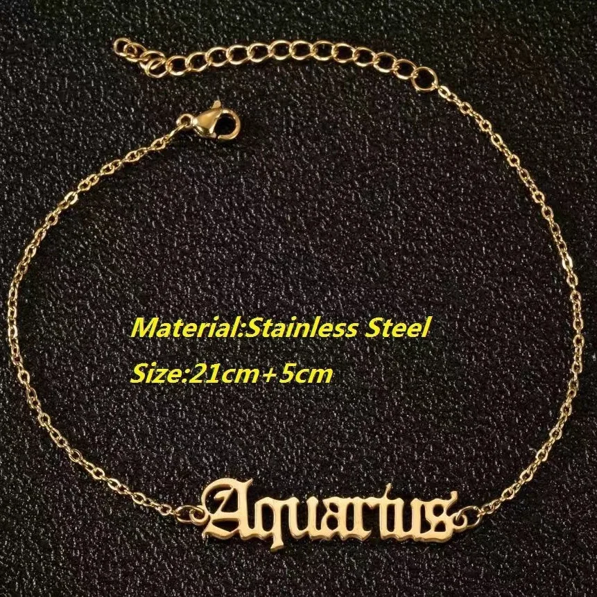 Vintage Zodiac Ankle Bracelets for Women and Men Personalized 316L Stainless Steel Name Anklets Boho Beach Jewelry Gift