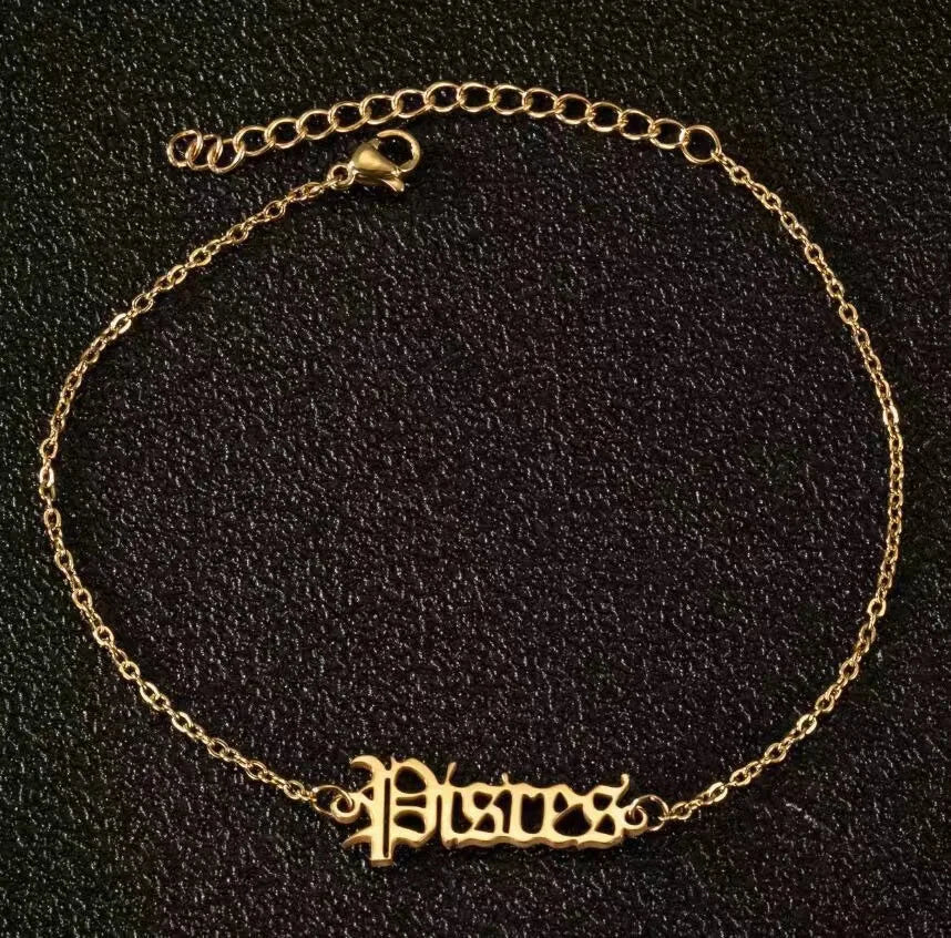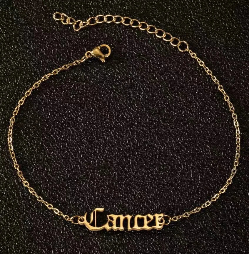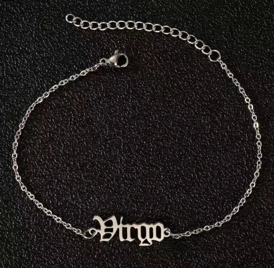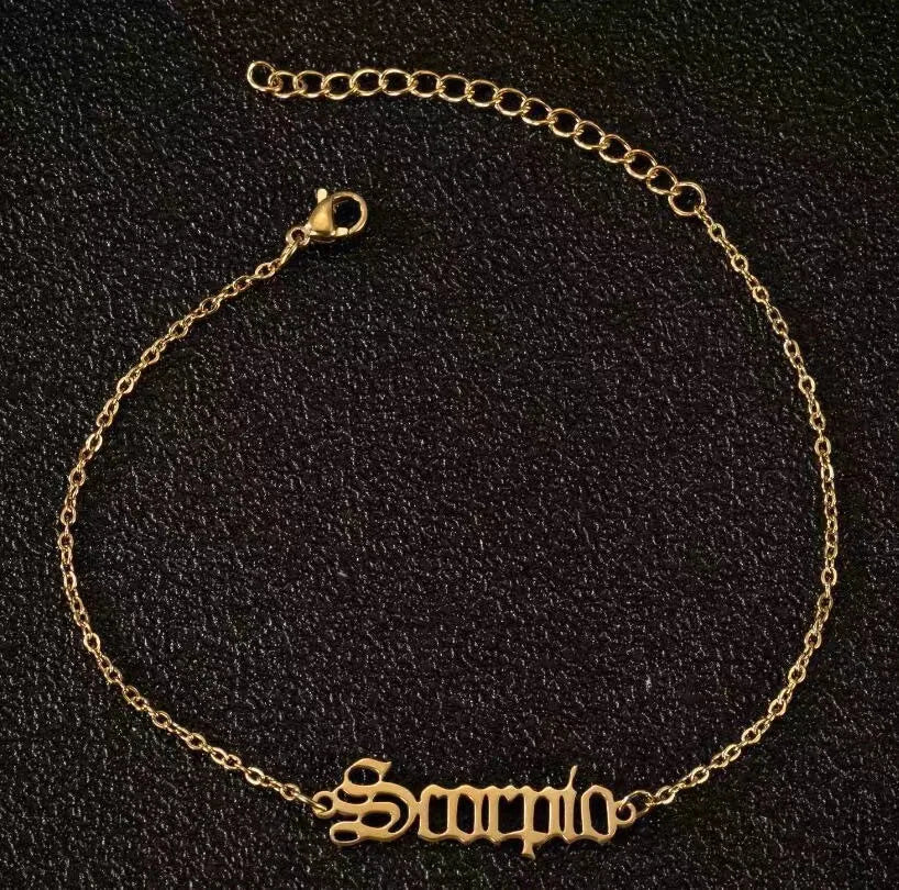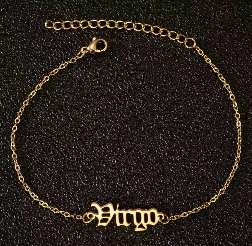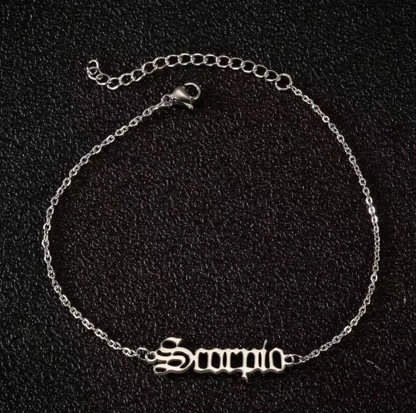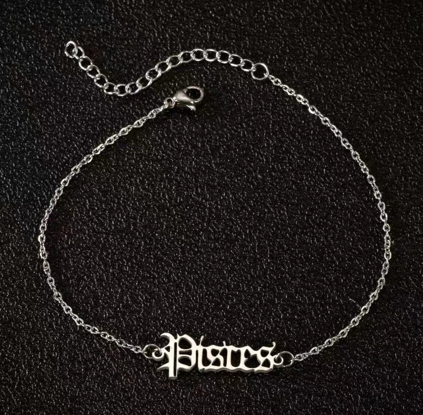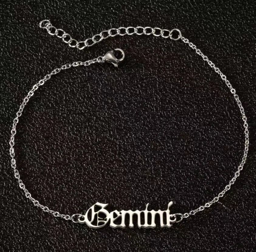 Vintage Zodiac Ankle Bracelets for Women and Men Personalized 316L Stainless Steel Name Anklets Boho Beach Jewelry Gift
