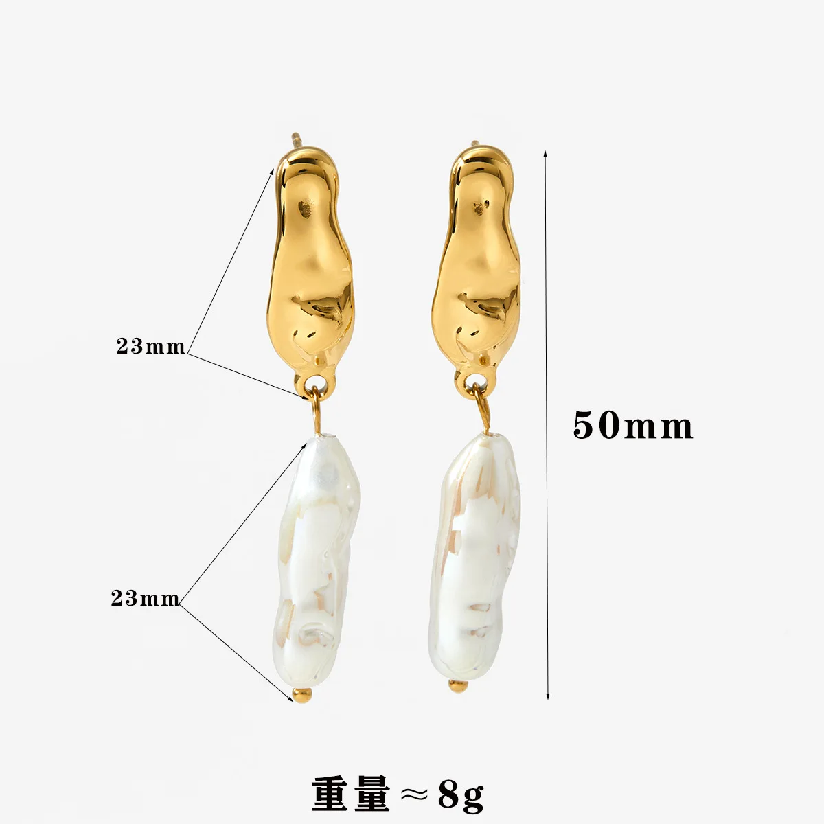 High Quality Stainless Steel 18k Gold Plated Earring Baroque Pearl Drop Earrings for Women