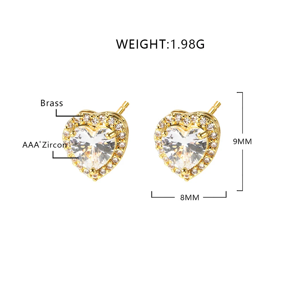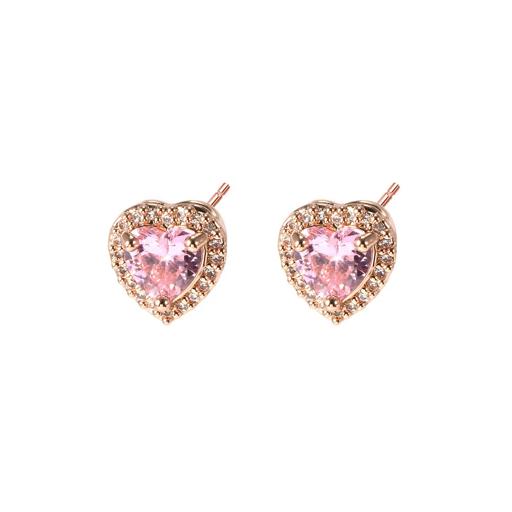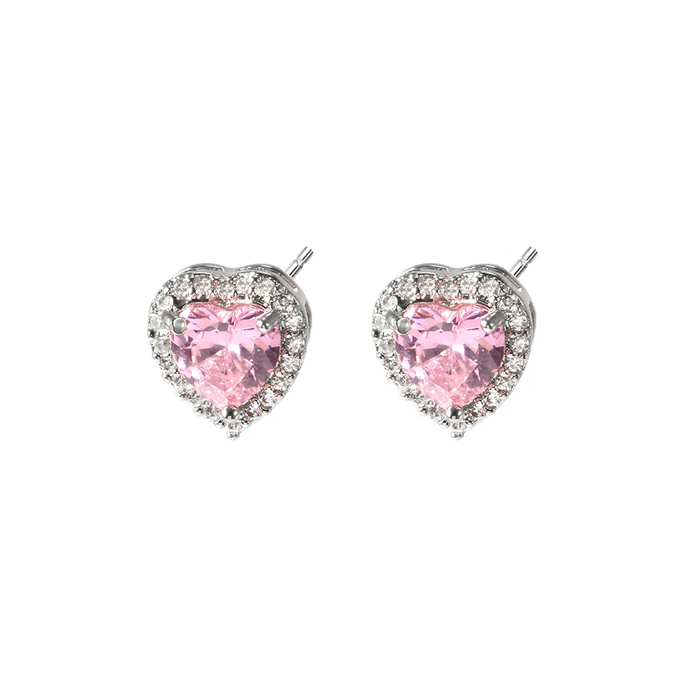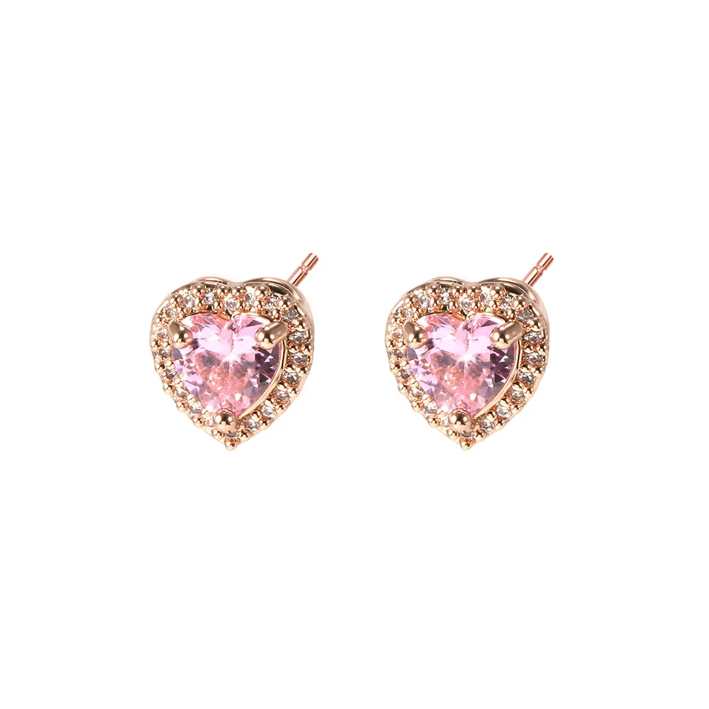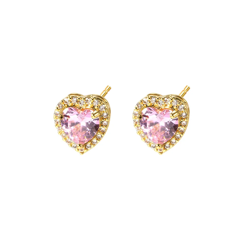 Latest Fashion Gold Plated Heart Shaped Pink Zirconia Diamond Stud Earring for Women Wholesale Fashion Heart Earrings