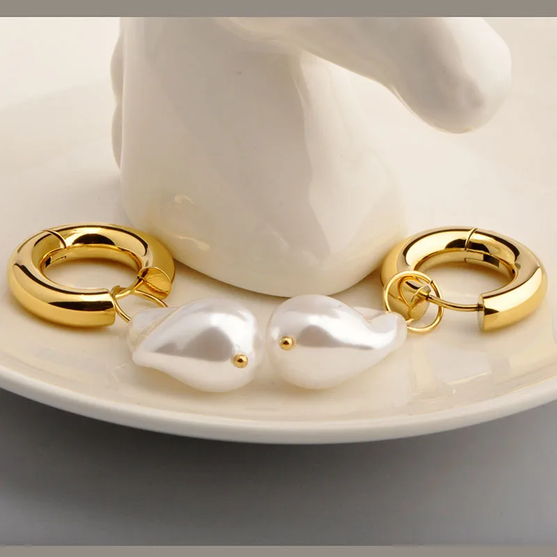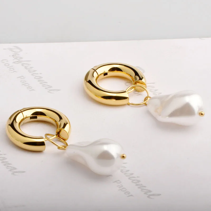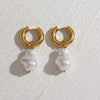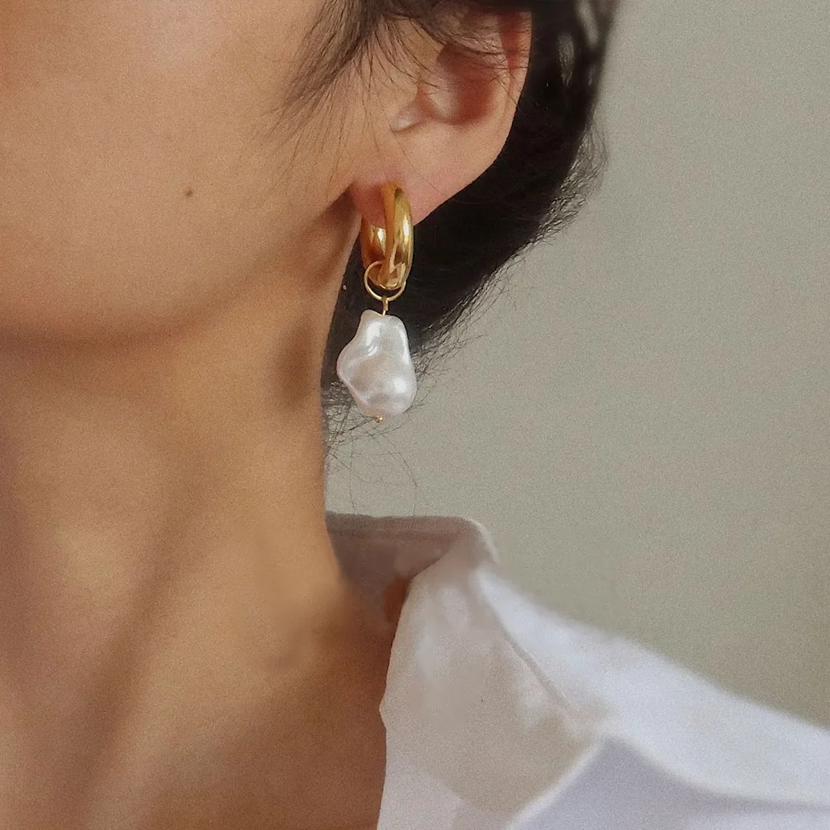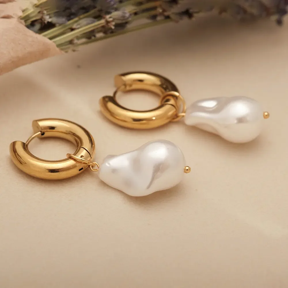 INS Style Designer Baroque Pearl Earrings 18K Gold Plated Stainless Steel Irregular Hoop Freshwater Pearl Earring for Women