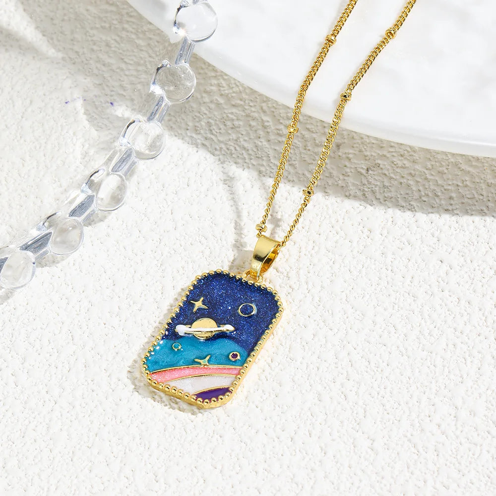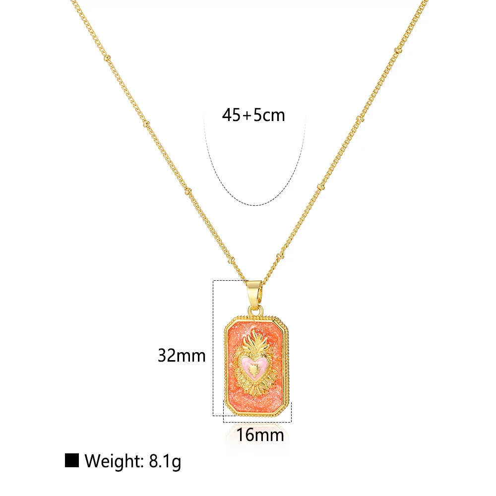Wholesale Gold Charms Cosmic Heart Pendant Necklace Fashion Geometry Enamel Tarot Cards Necklace for Women