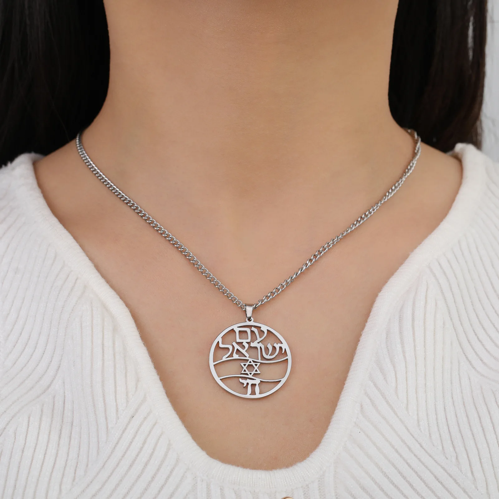 New Retro Titanium Steel Hollow Pendant Hebrew Star of David Necklace Hanukkah Israel Amulets Gold Plated Fashion Jewelry