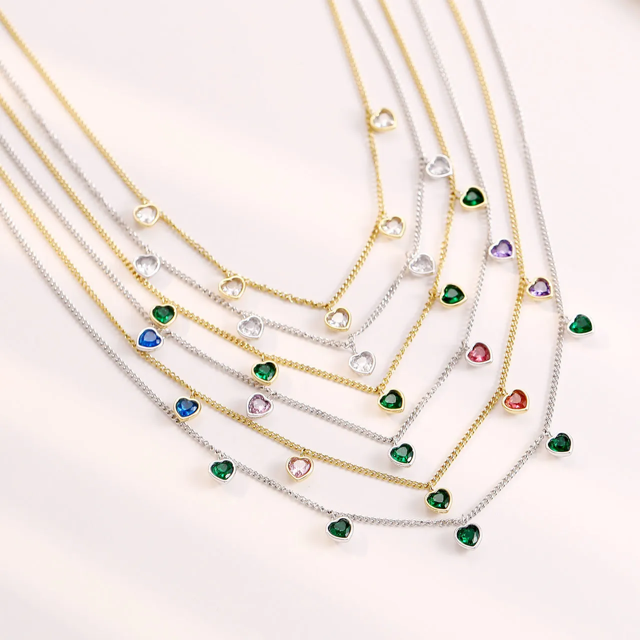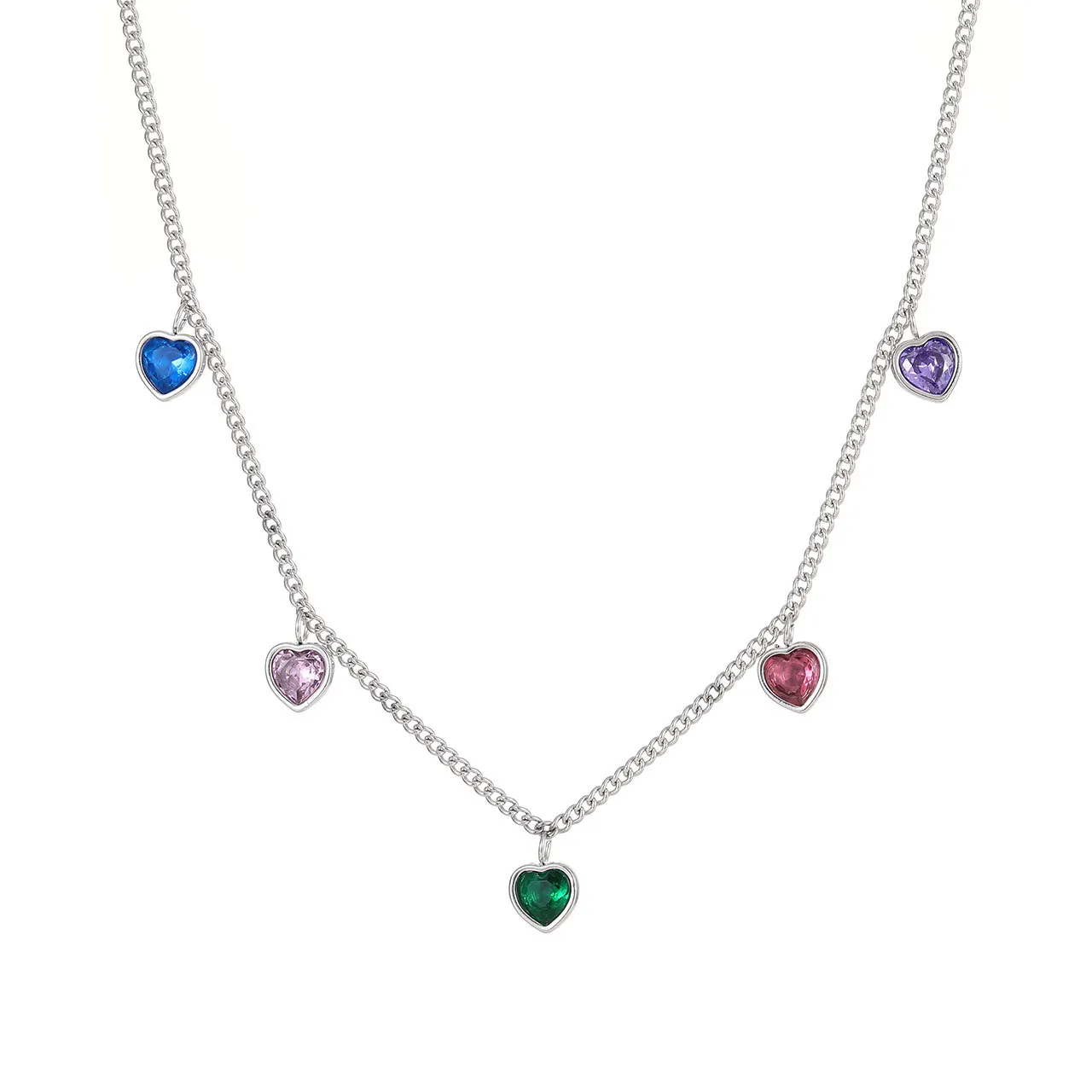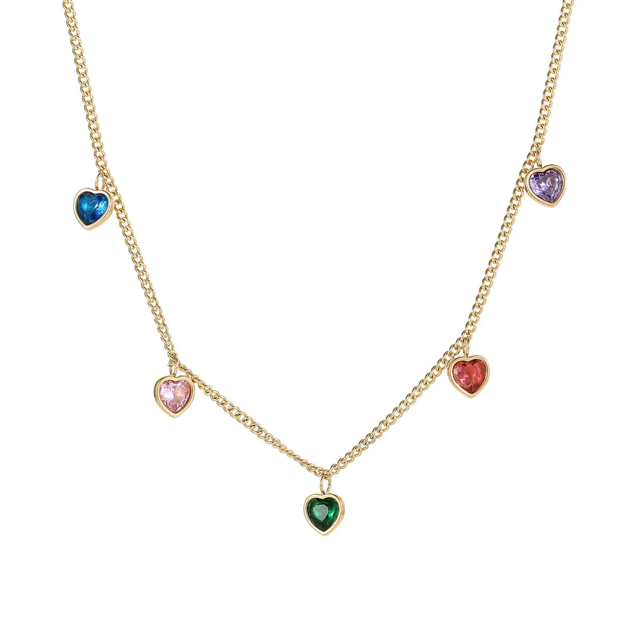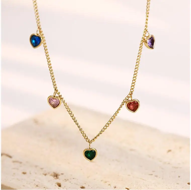 Fashion Gold Plated Heart Colored Stones Chain Necklace Heart Locket Stainless Steel Necklace for Women