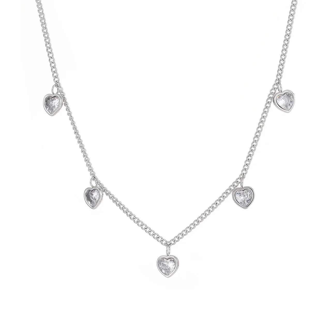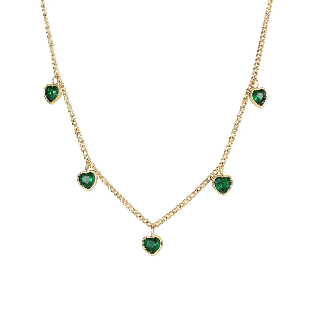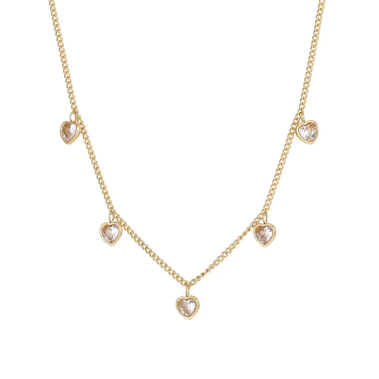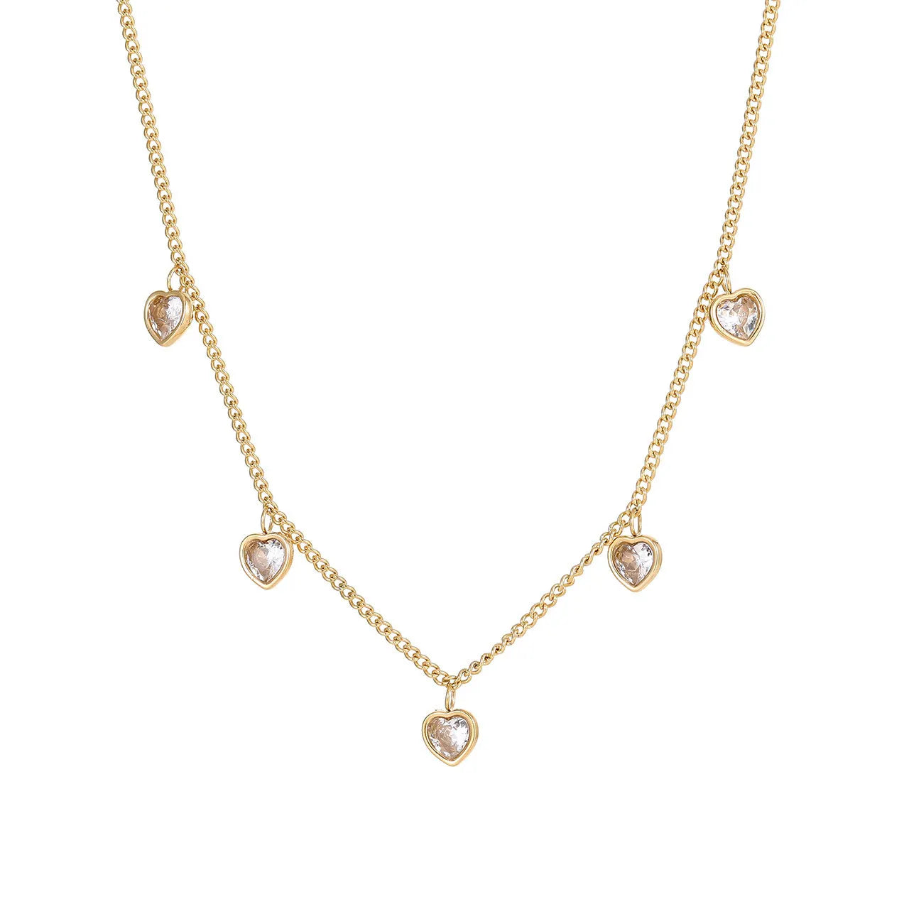 Fashion Gold Plated Heart Colored Stones Chain Necklace Heart Locket Stainless Steel Necklace for Women