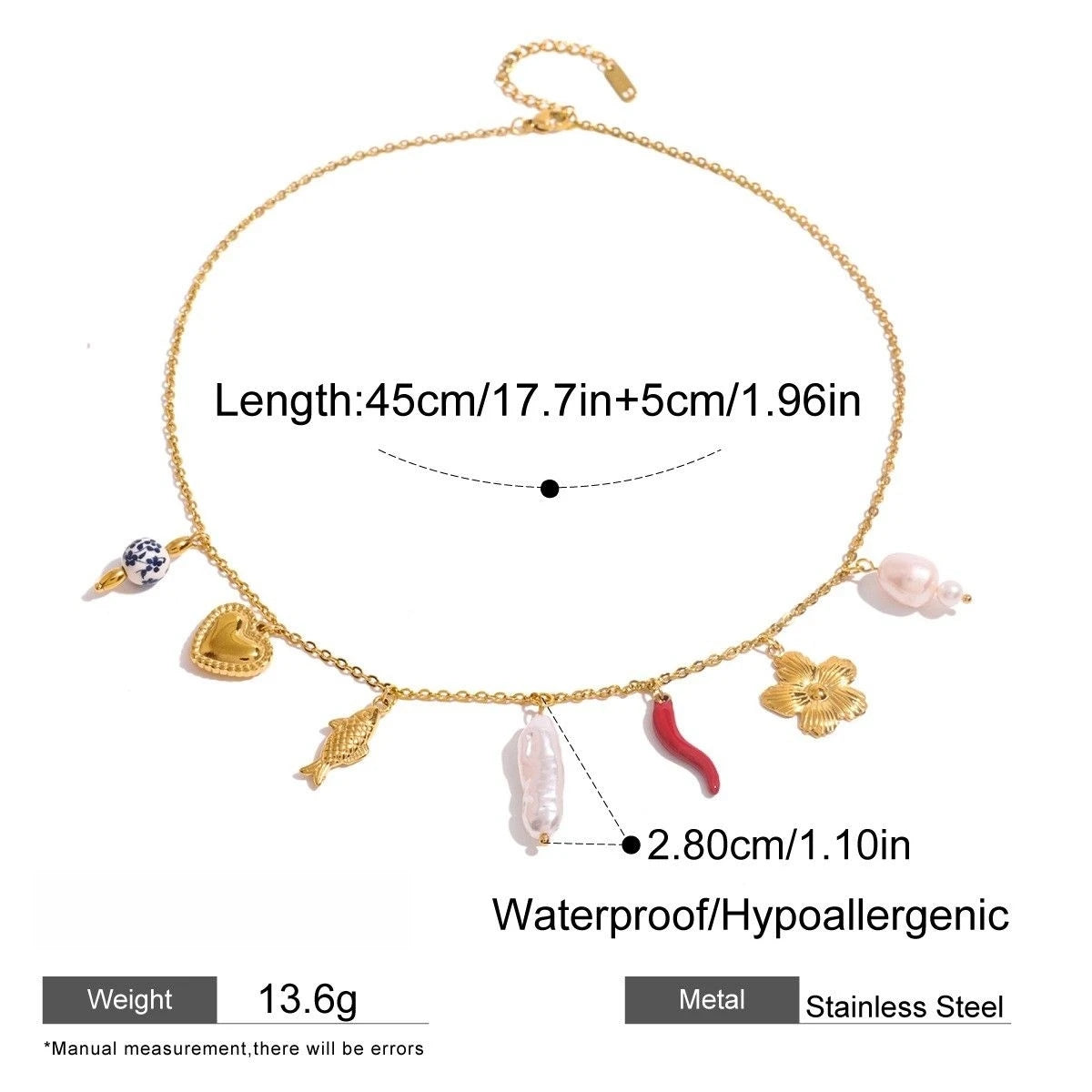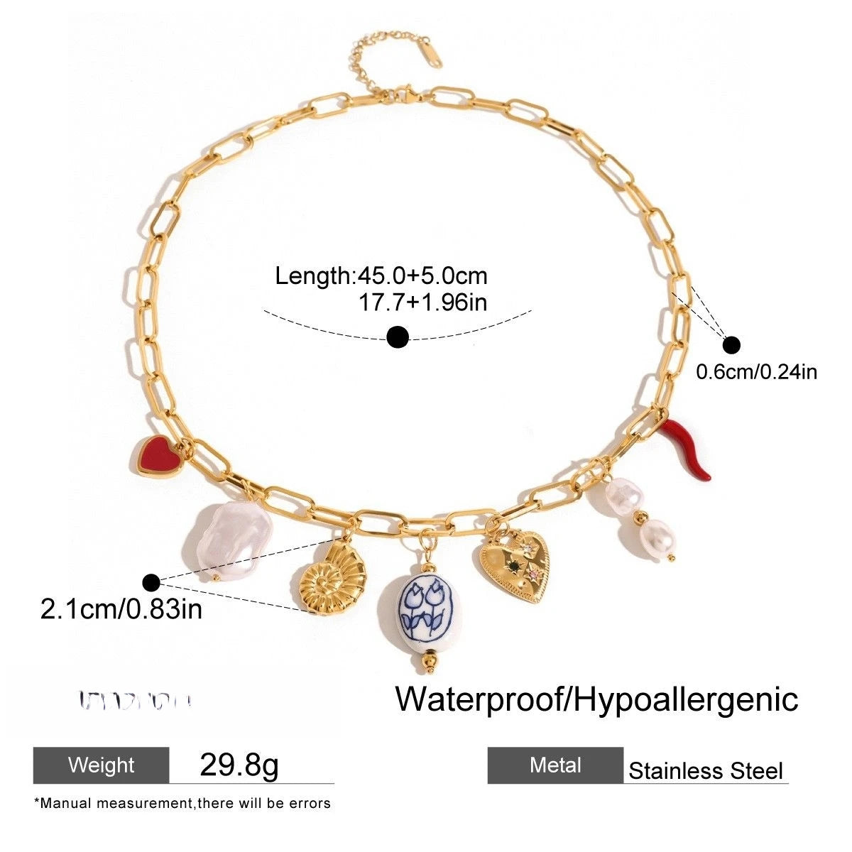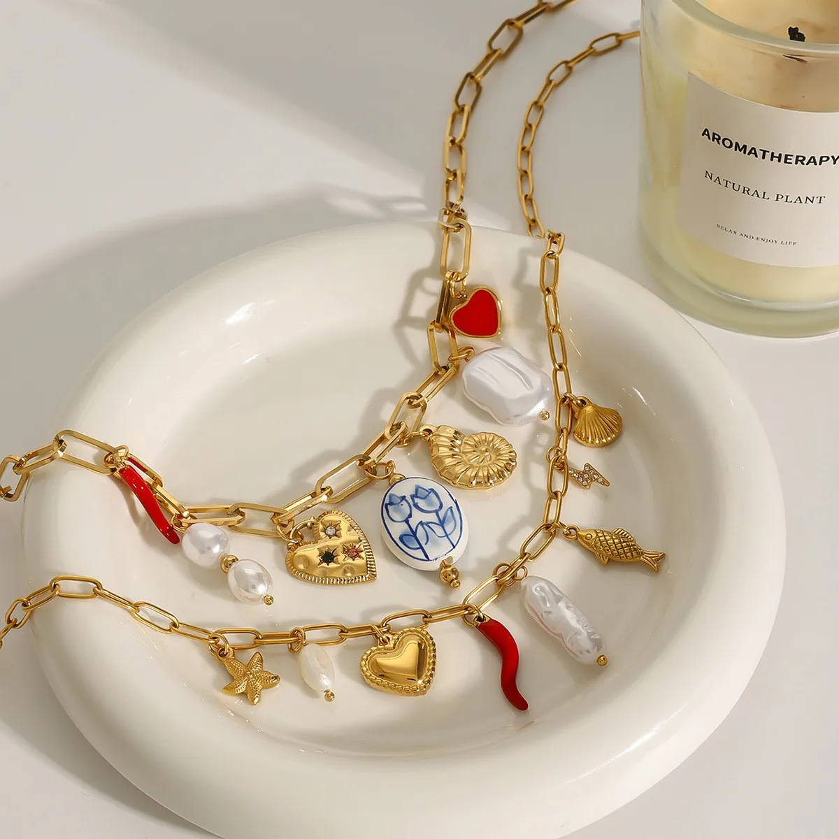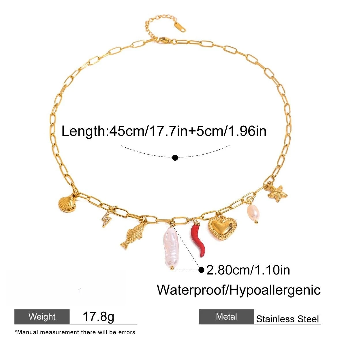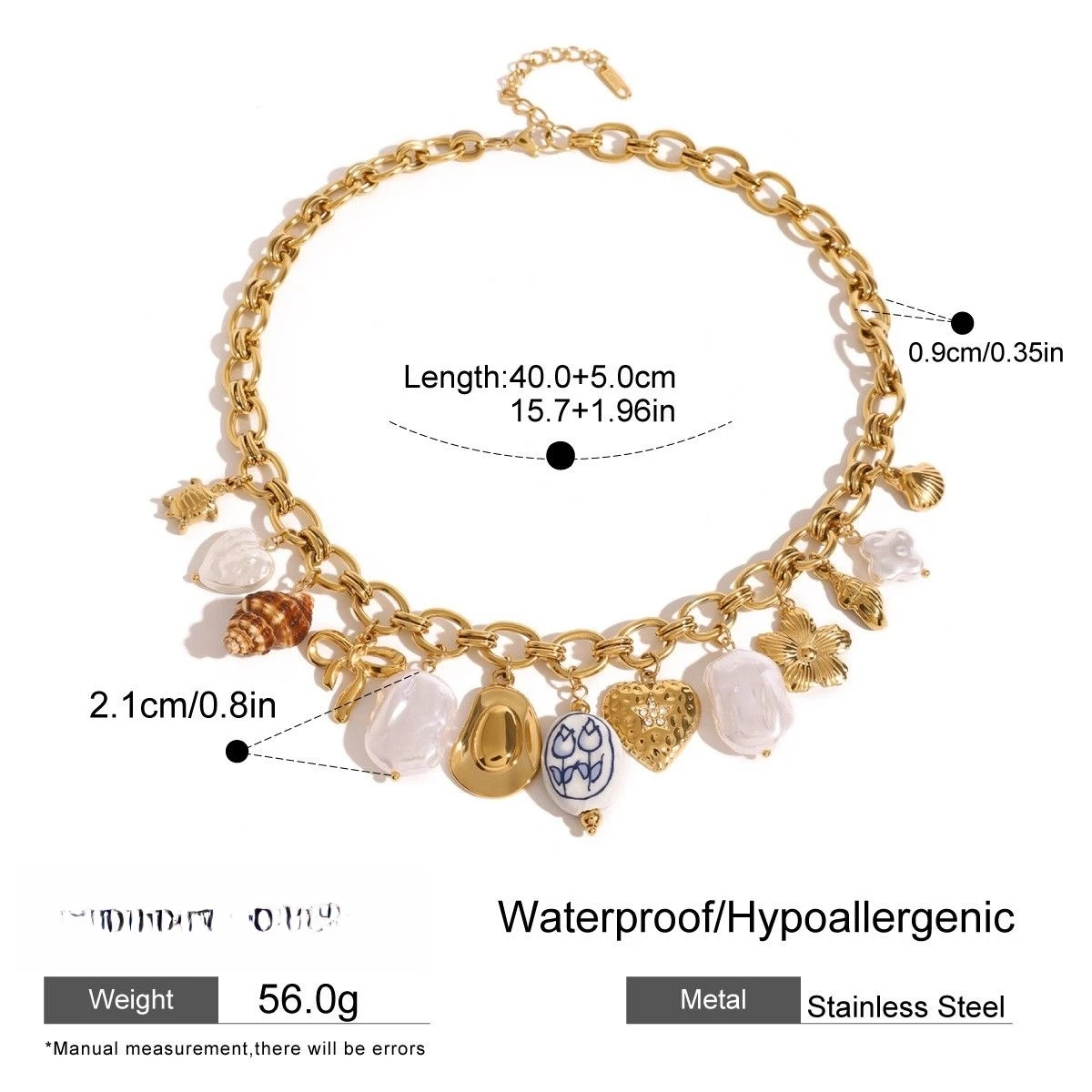 Summer Ocean Style Necklace 18K Gold Plated Stainless Steel DIY Jewelry Kit with Shell Starfish Ceramic & Pearl Charms Necklace
