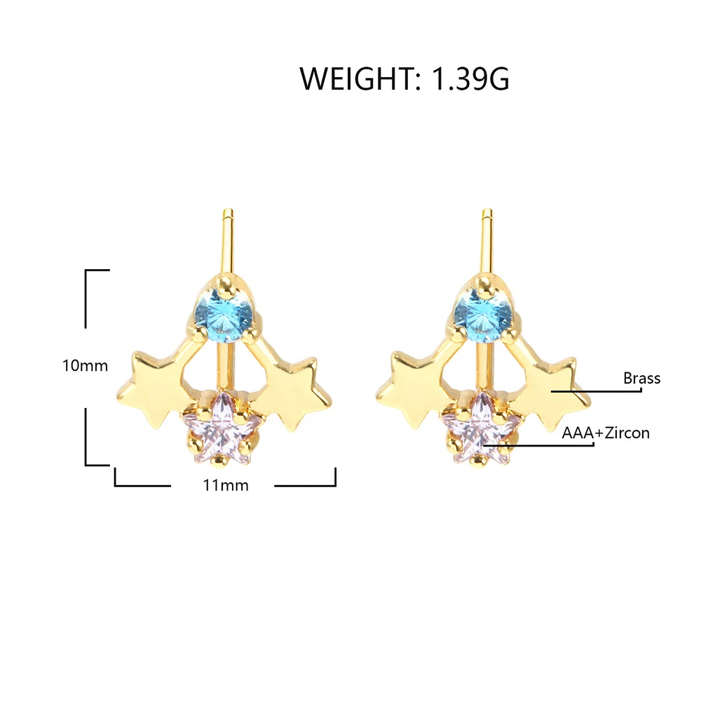 Fashionable 18K Gold Plated and Zirconia Stud Earrings Minimalist and Elegant Daily Wear for Women