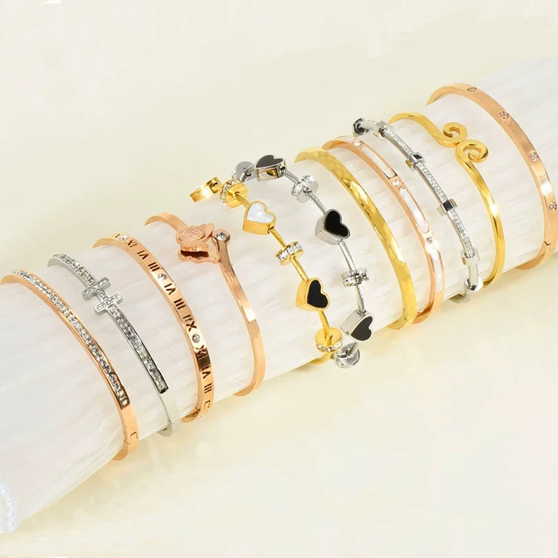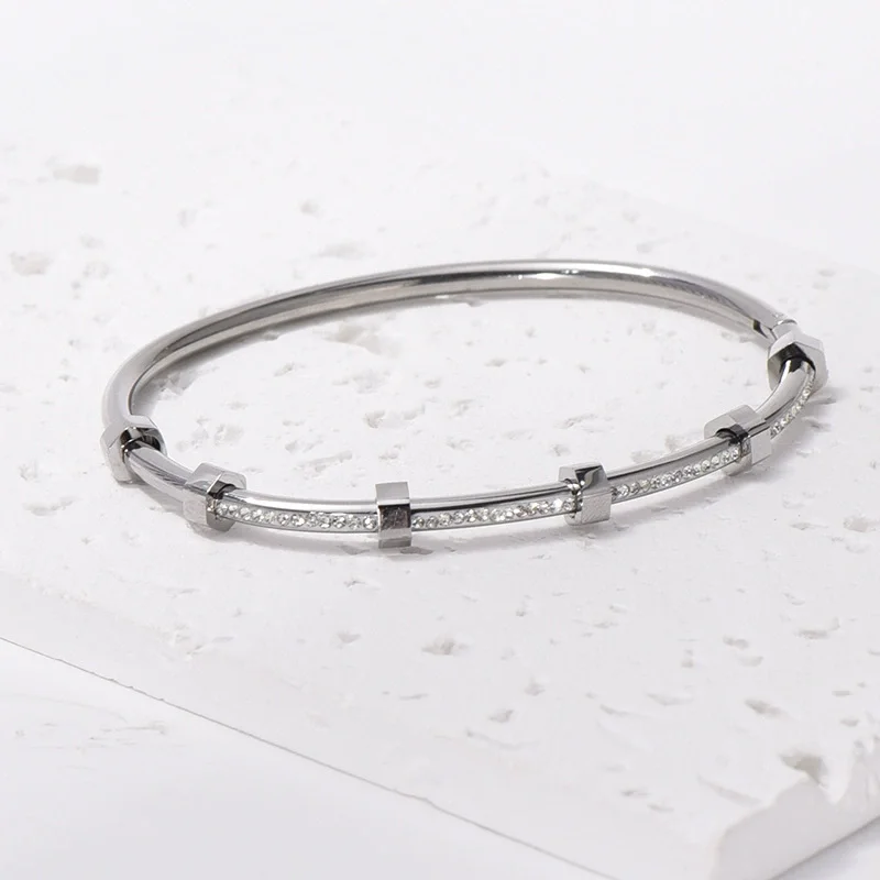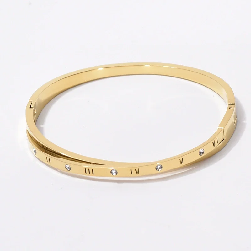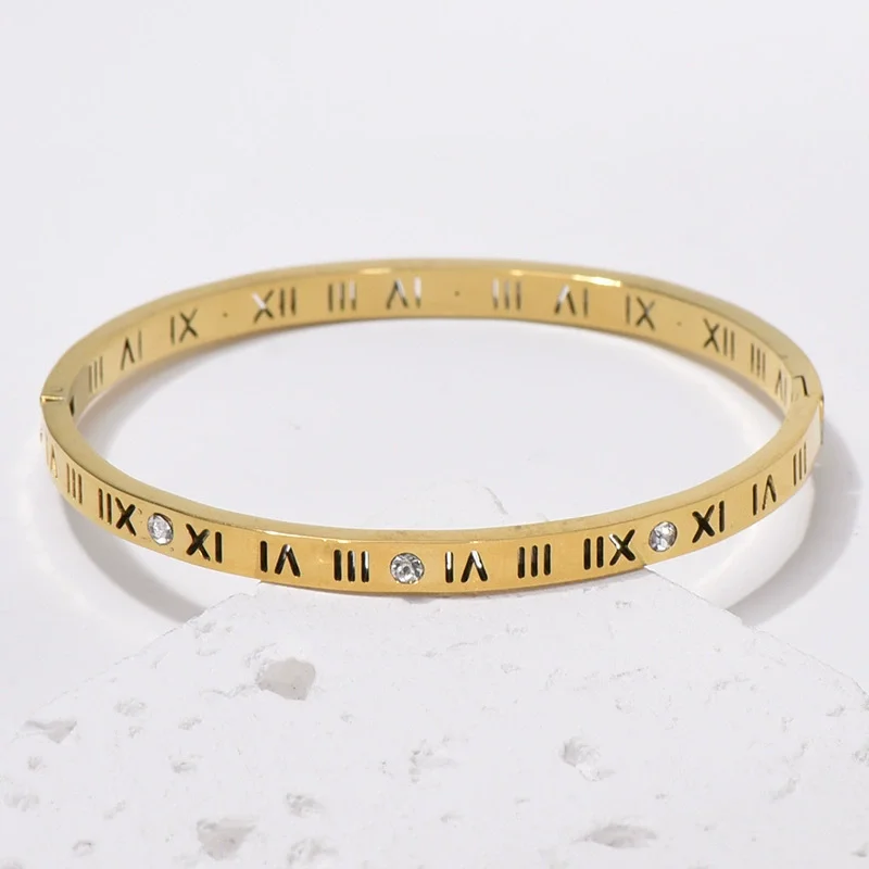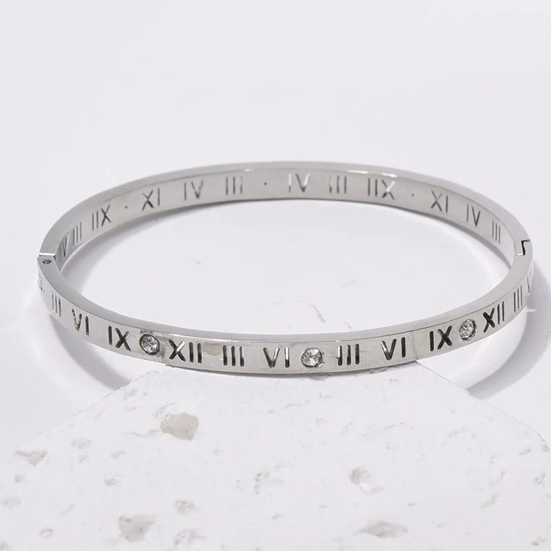 Roman Bracelet Titanium Steel Diamond Hollow Geometric Spring Fashion Jewelry for Girls Style