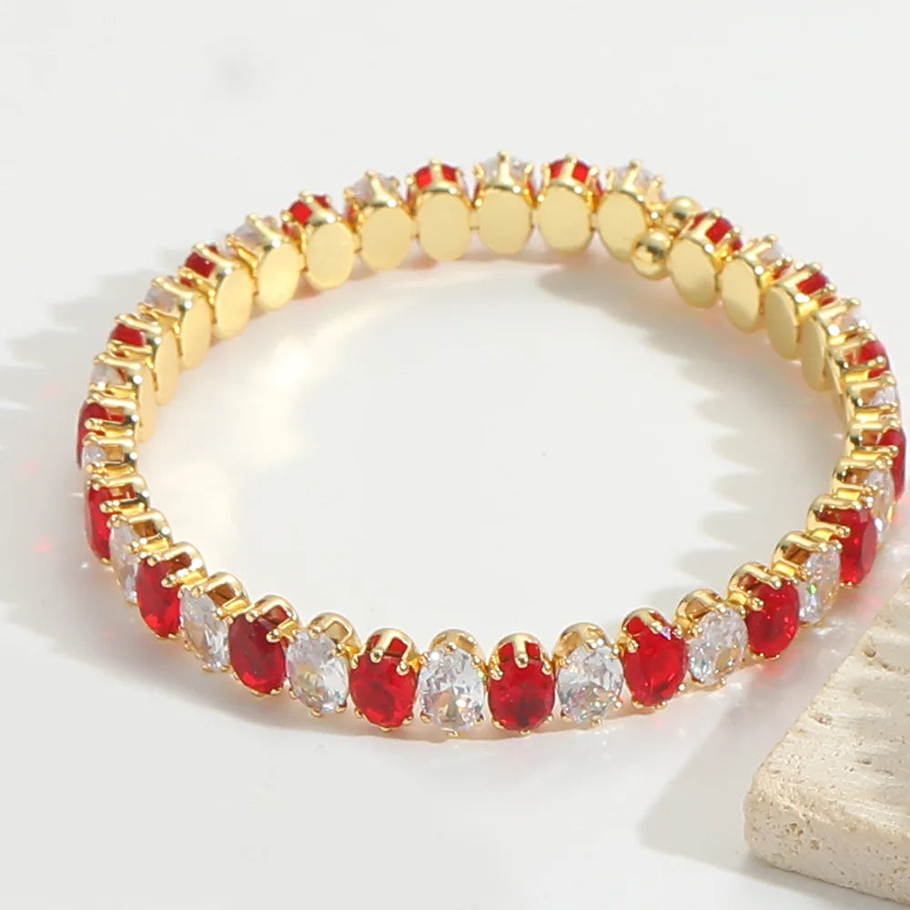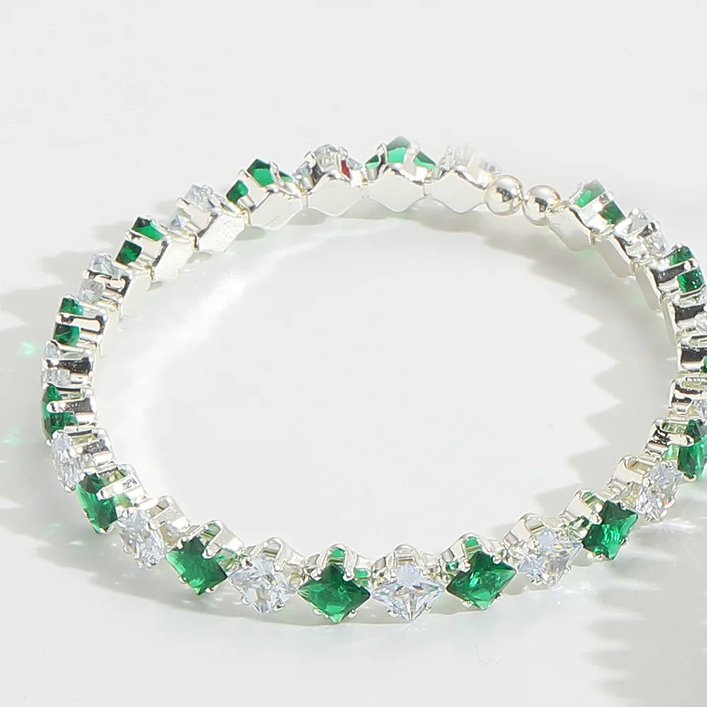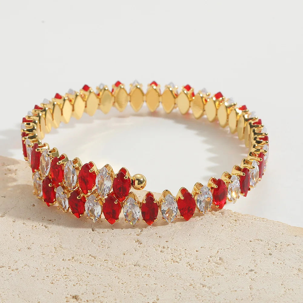 Copper Gold Plated Zircon Bracelet for Women Personalized Inlaid Glass Bracelet with Adjustable Chain Vintage Boho Jewelry