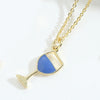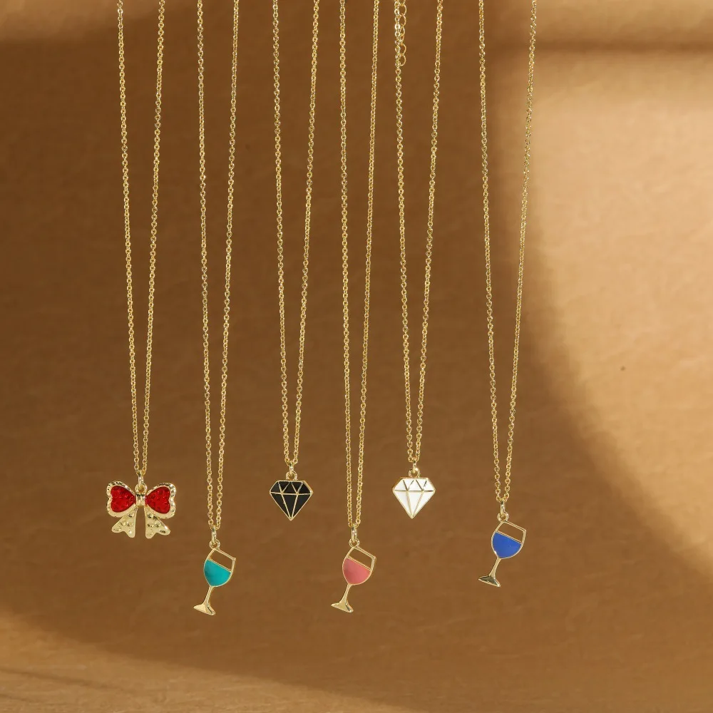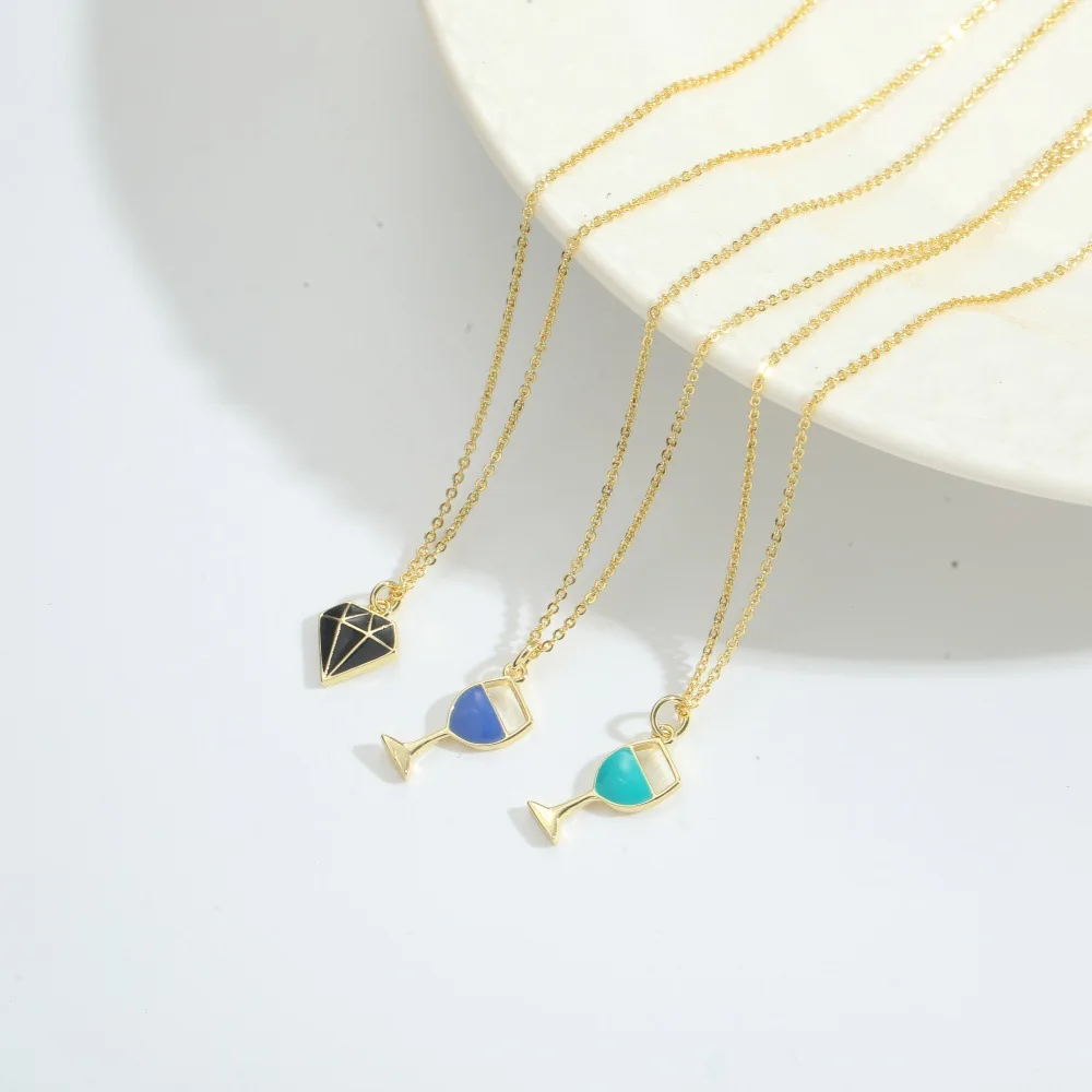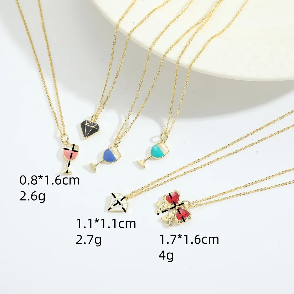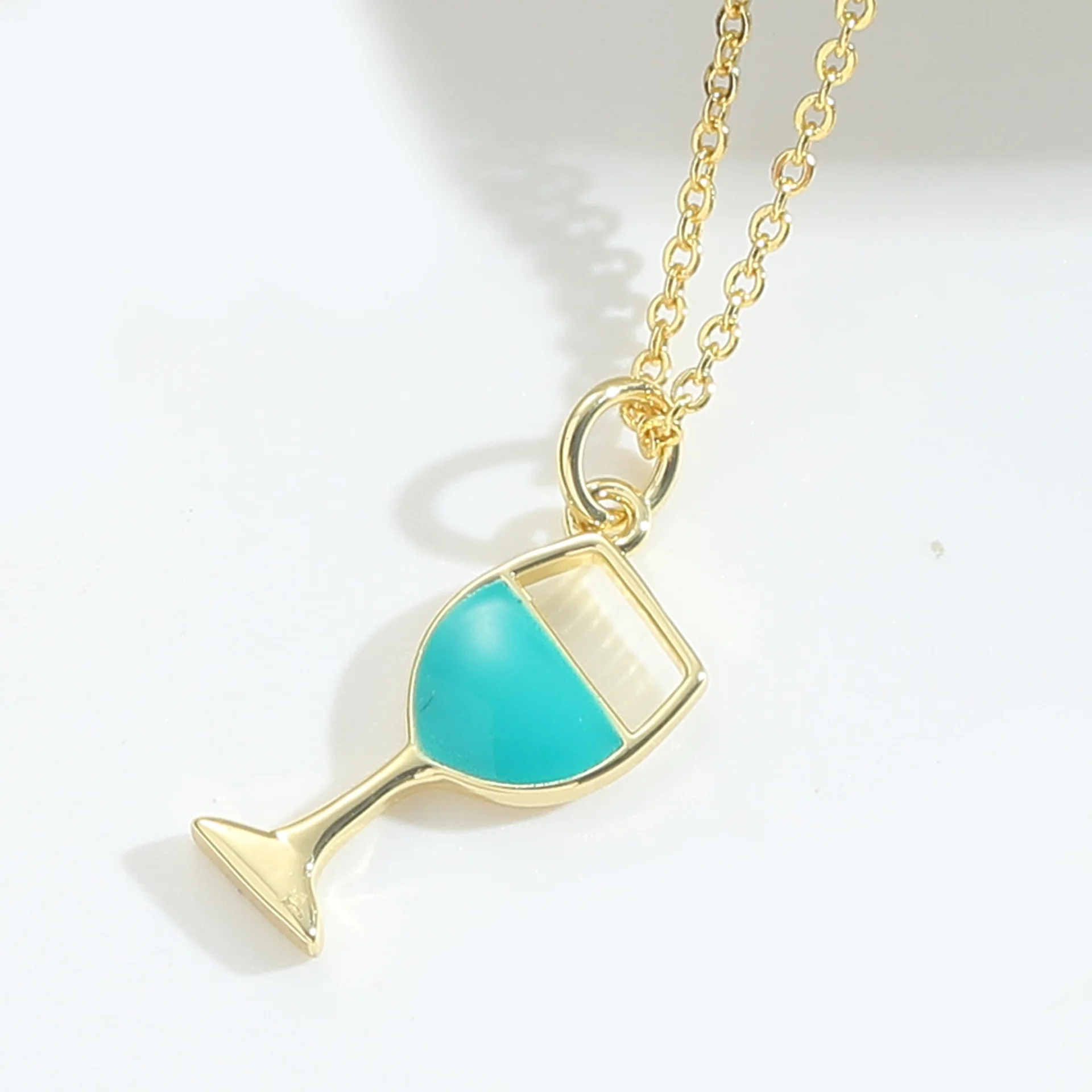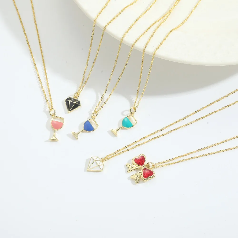 Copper Oil-Dripping Wine Glass Bow Pendant Collarbone Chain Necklace - Versatile Diamond Accent Jewelry for Women Minimalist