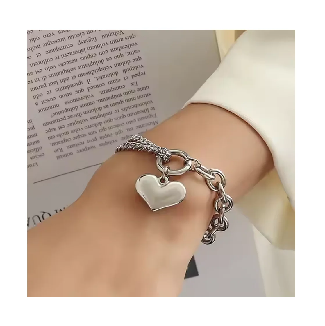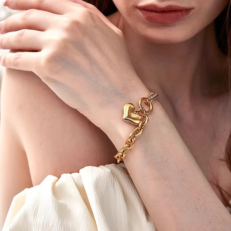 Summer 2025 Jewelry Stainless Steel Chunky Heart Pendant Bracelet for Women Trendy Statement Love Heart Adjustable Link Chain