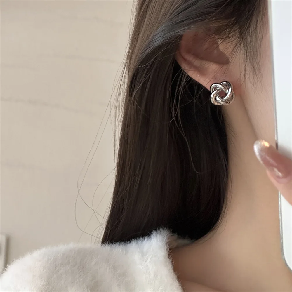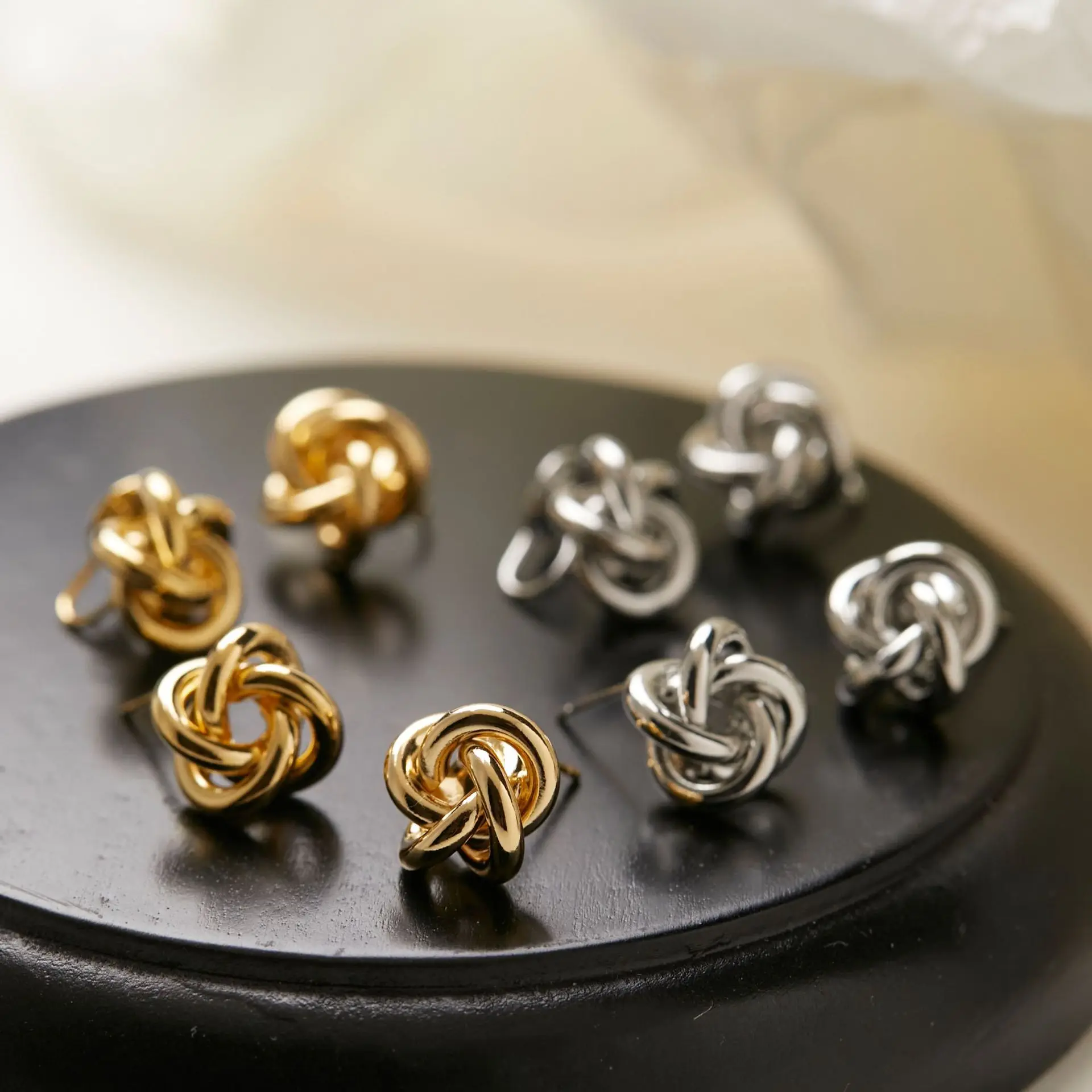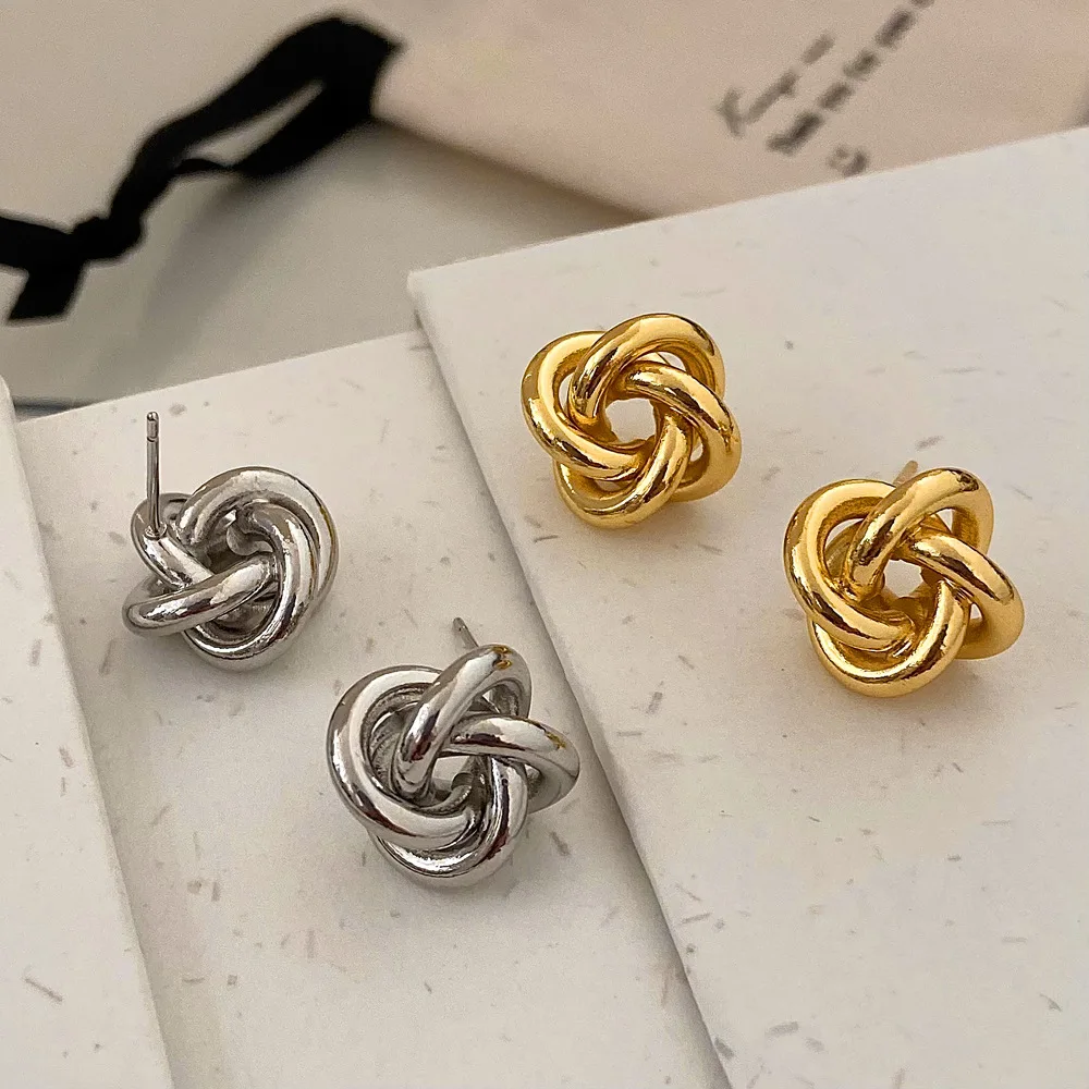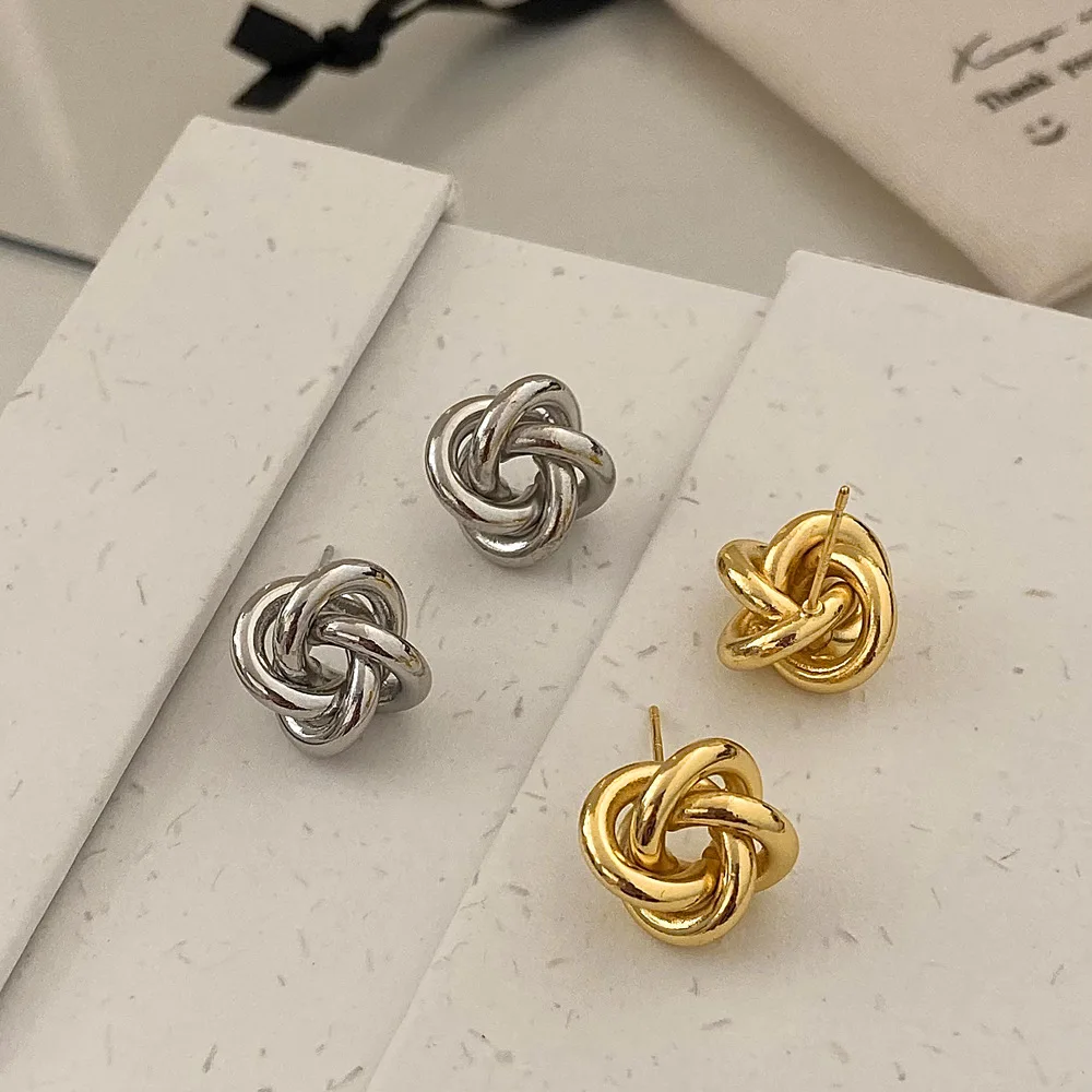 High Quality Metal Fashion Elegant Minimalist Knot Chain Twisted Ear Studs Silver Gold Earings for Women Gift