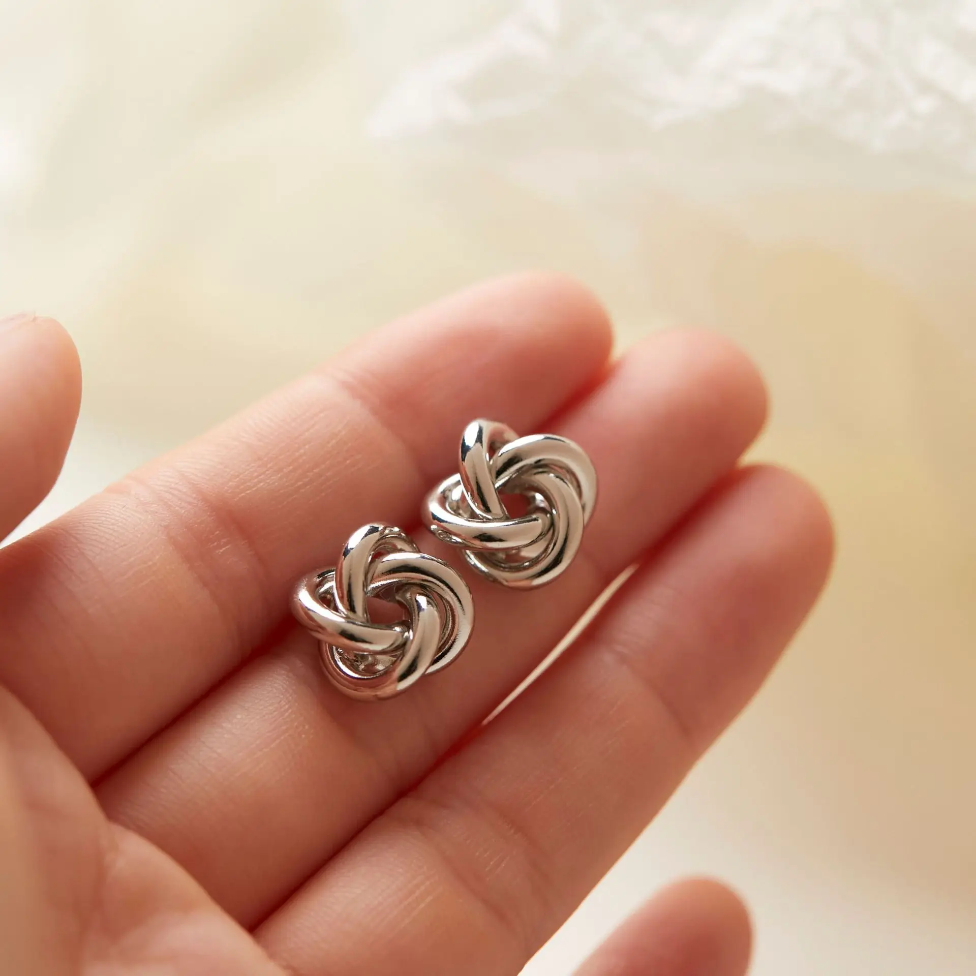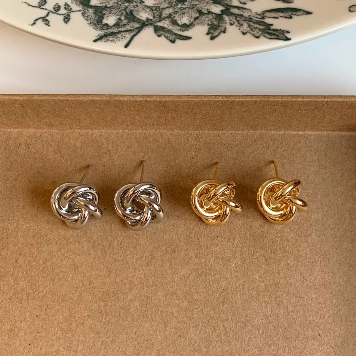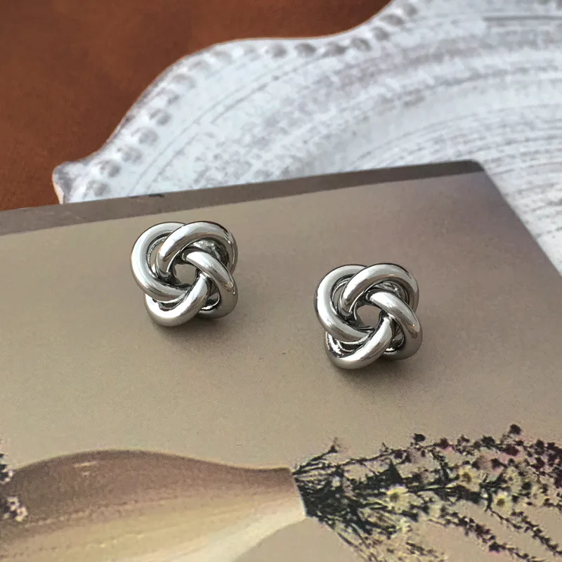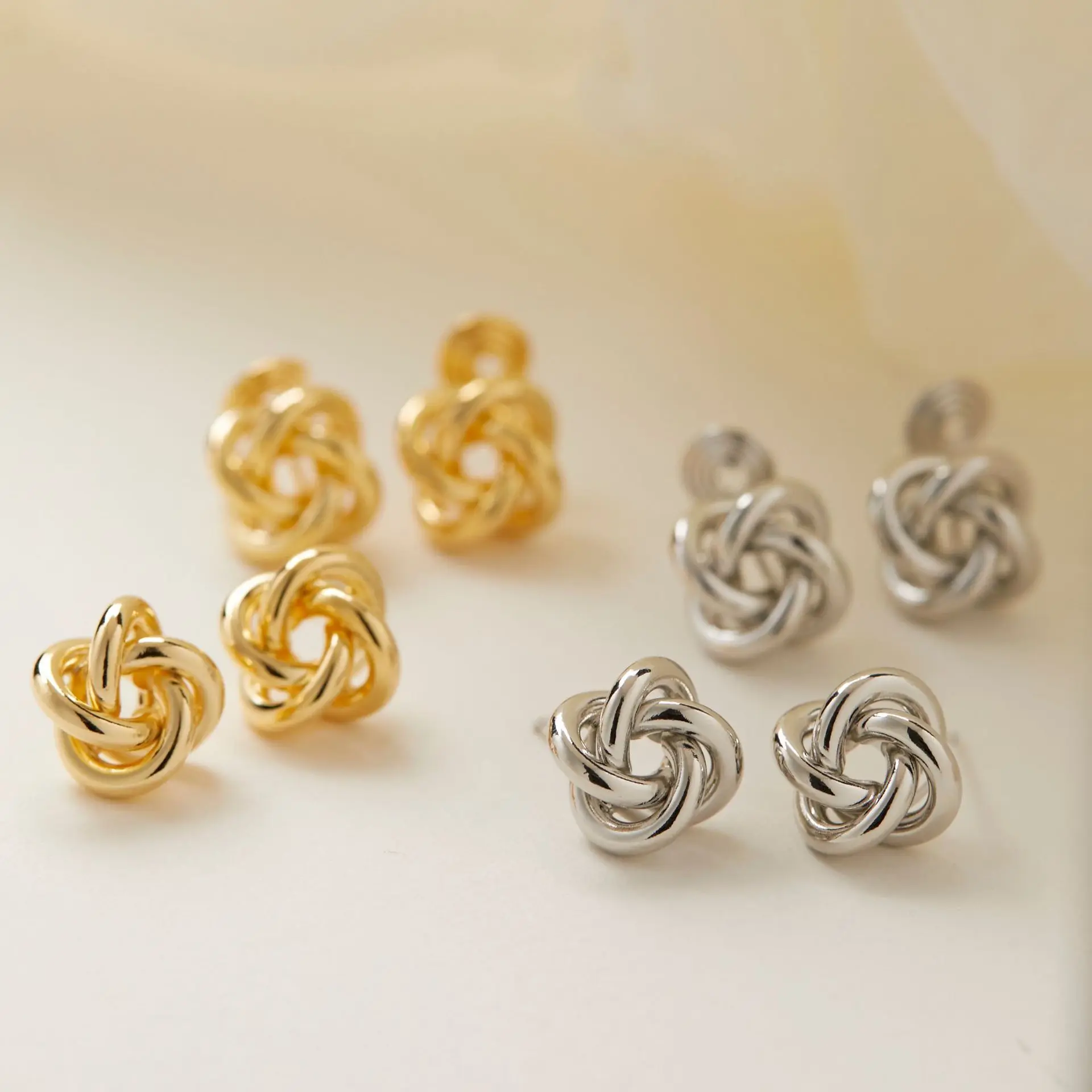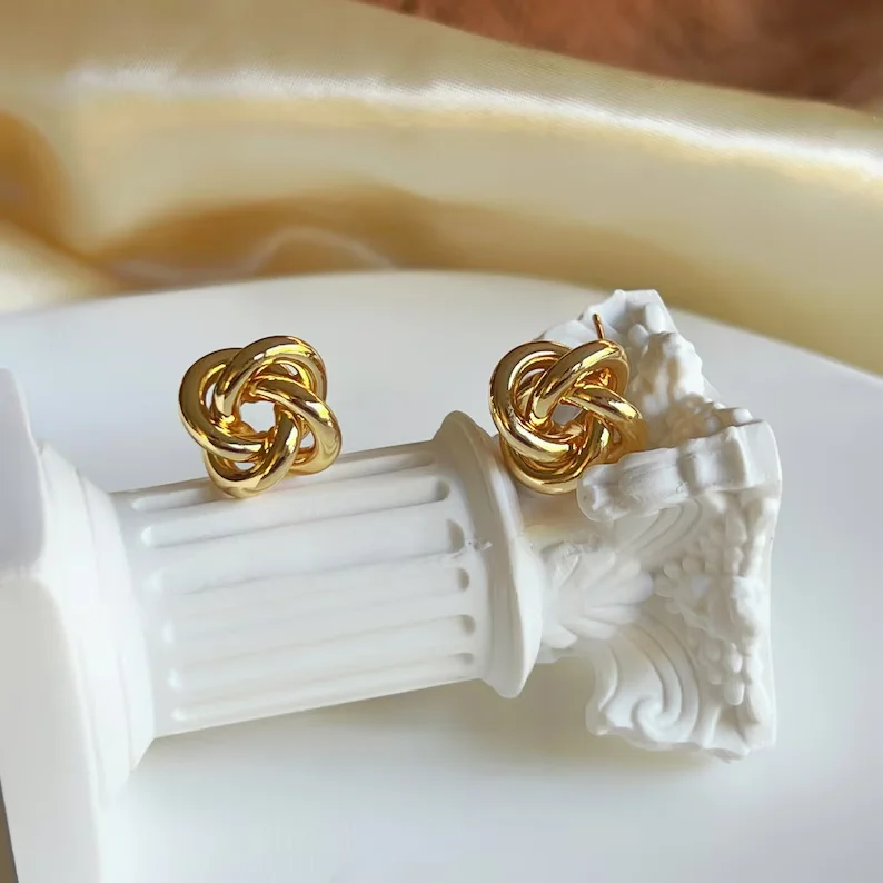 High Quality Metal Fashion Elegant Minimalist Knot Chain Twisted Ear Studs Silver Gold Earings for Women Gift