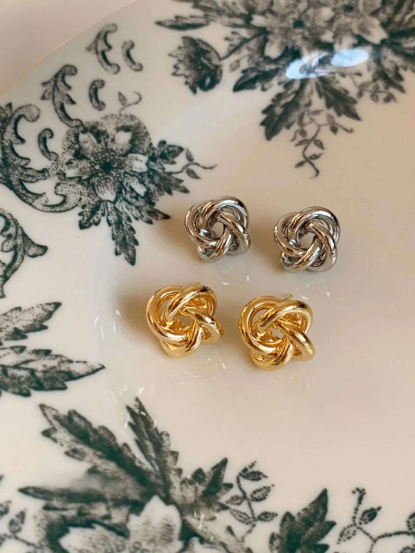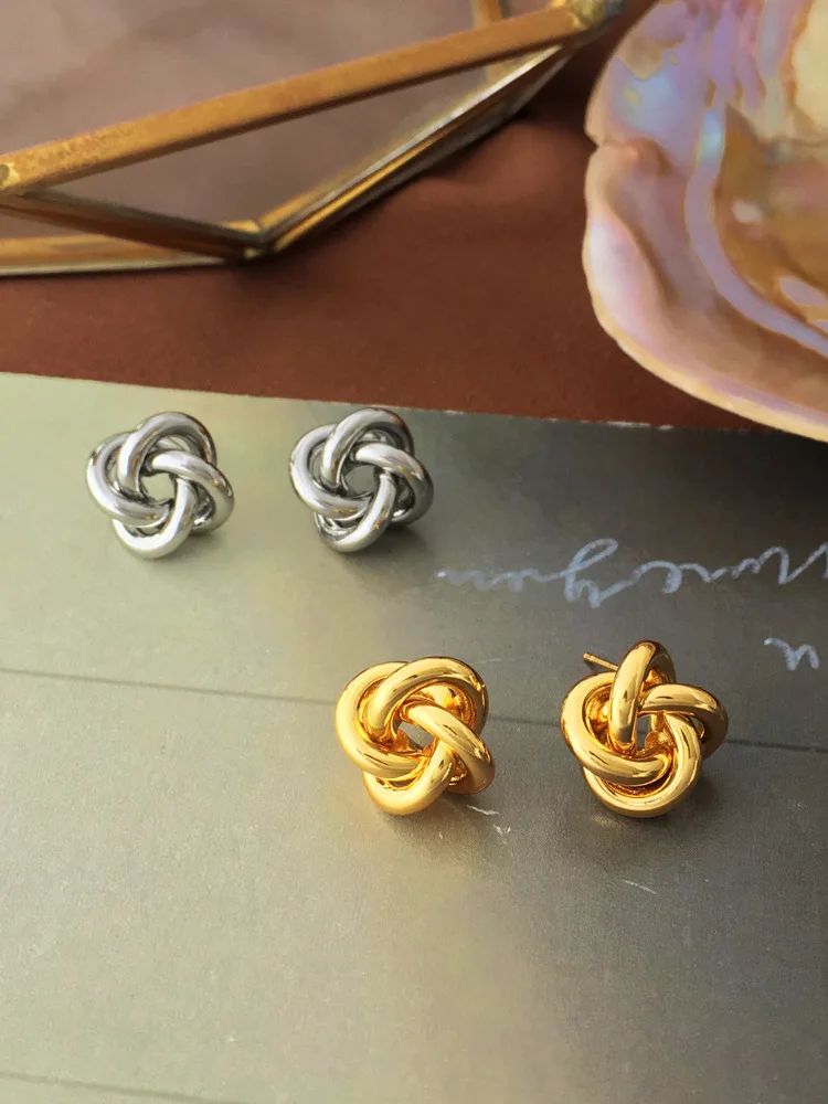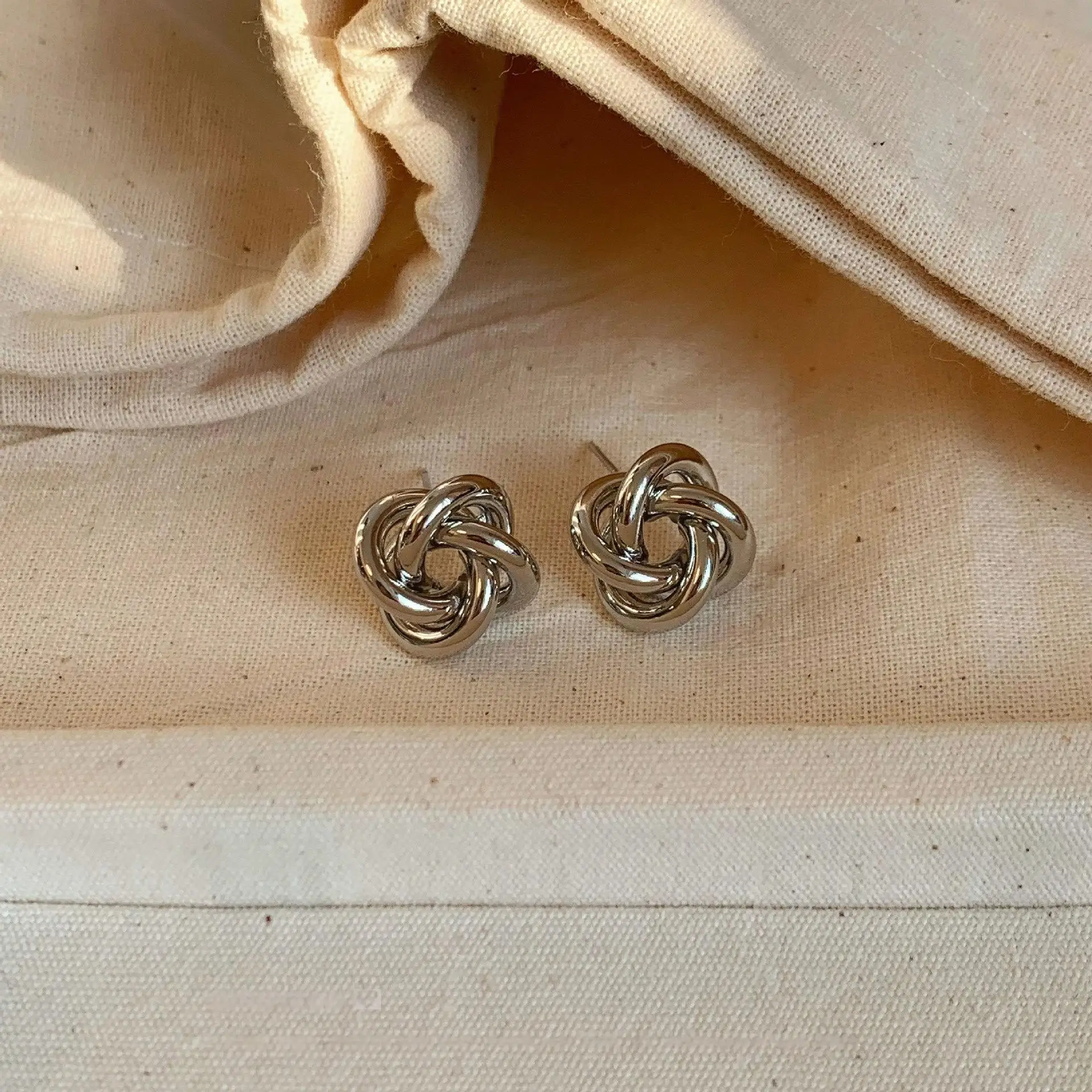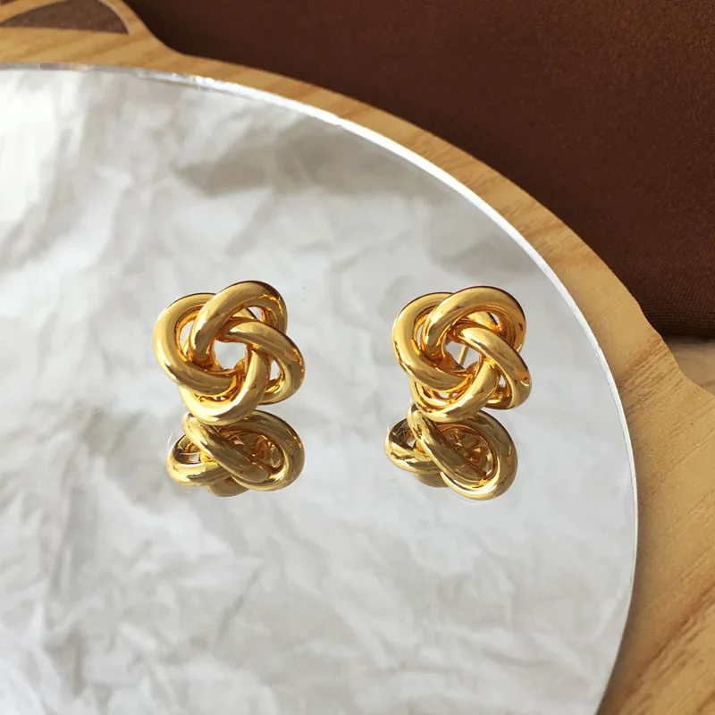 High Quality Metal Fashion Elegant Minimalist Knot Chain Twisted Ear Studs Silver Gold Earings for Women Gift