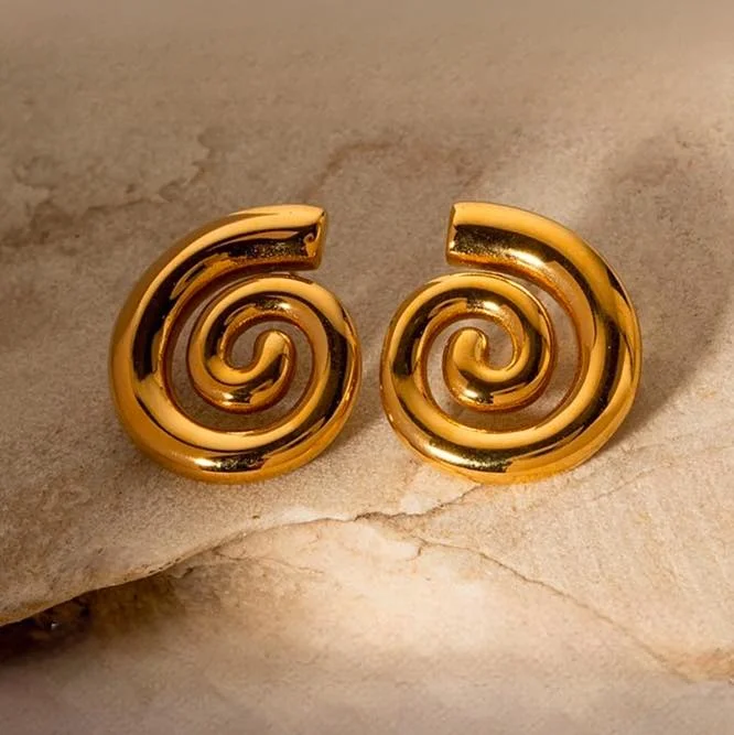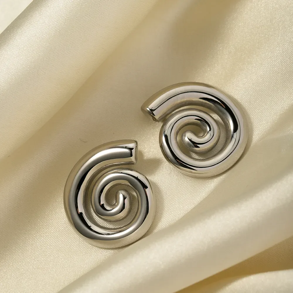 Wholesale Women's Spiral Earrings Exaggerate Stainless Steel Jewelry Fashion 18K Gold Plated Thread Drop Ear Studs Earring